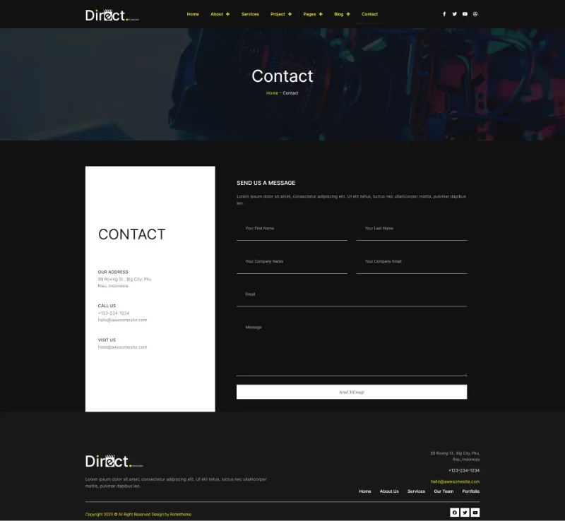 صفحه اصلی، درباره ما، تیم ما، خدمات، پروژه، پروژه تکی، گالری، پرسشهای متداول، صفحه خطای 404، بایگانی وبلاگ، پست تکی، تماس با ما، هدر، فوتر