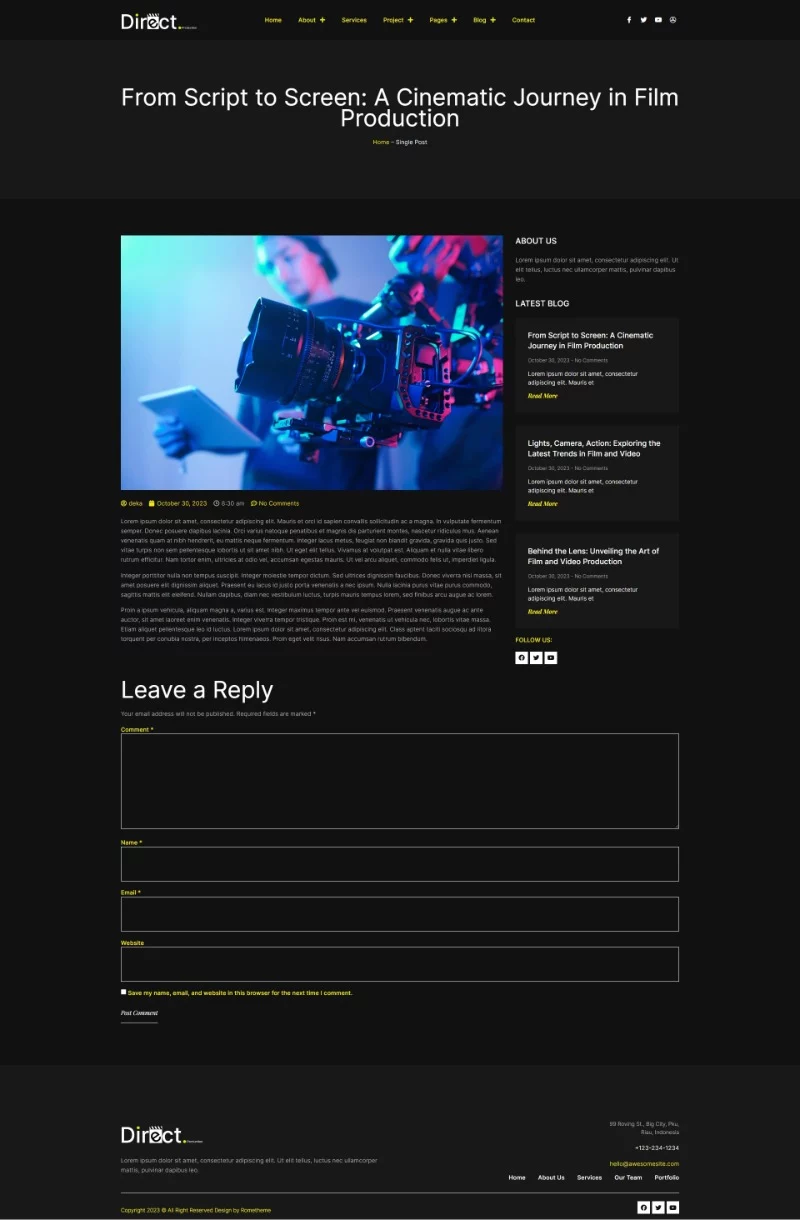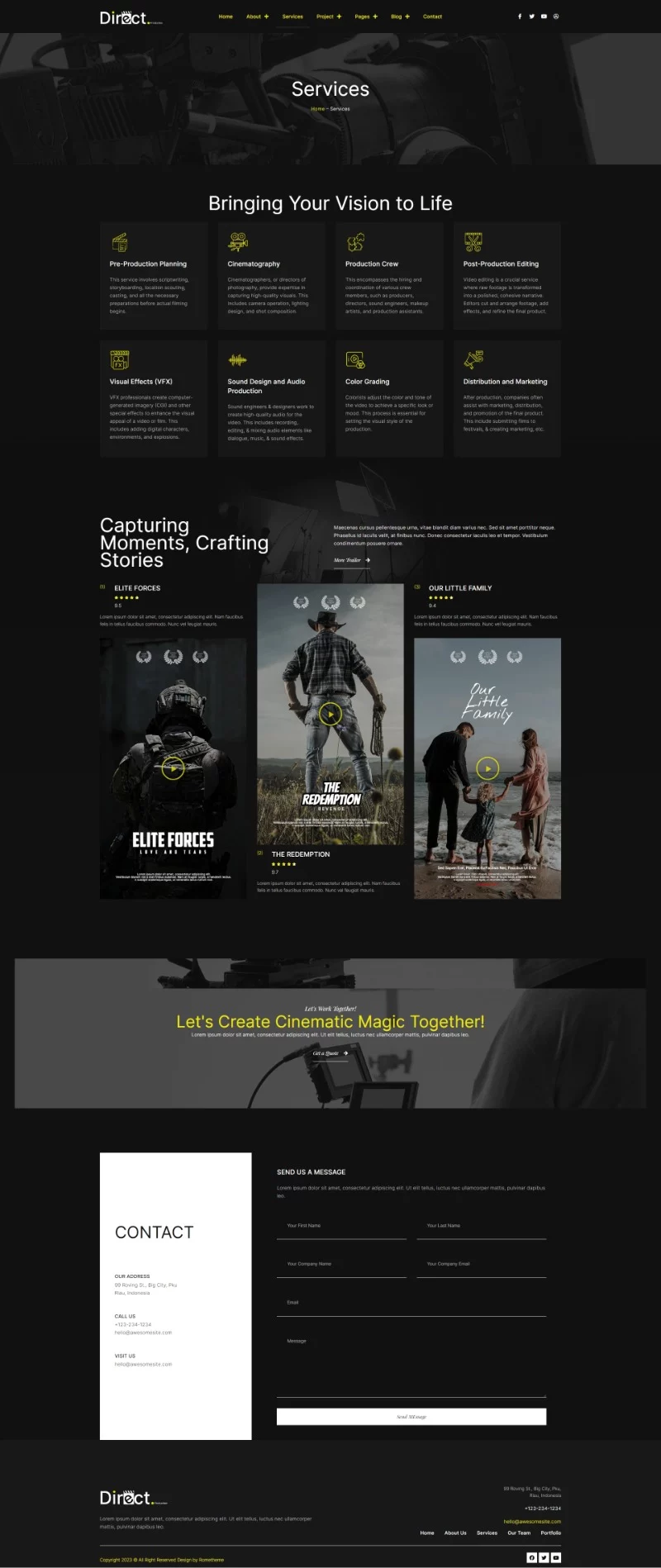 کیت قالب المنتور تولید فیلم و ویدئو Direct با انتخاب ایدهآل از قالبها برای وبسایت کسبوکار فیلم و ویدئویی شما ارائه میشود. این قالب المنتور مدرن و بسیار آسان برای سفارشیسازی است. این کیت دارای طراحی مدرن و منحصر به فرد با یک چیدمان 100٪ واکنشگرا، نصب آسان و بسیار راحت برای سفارشیسازی است زیرا با المنتور ساخته شده است و نیازی به نوشتن حتی یک خط کد ندارد!