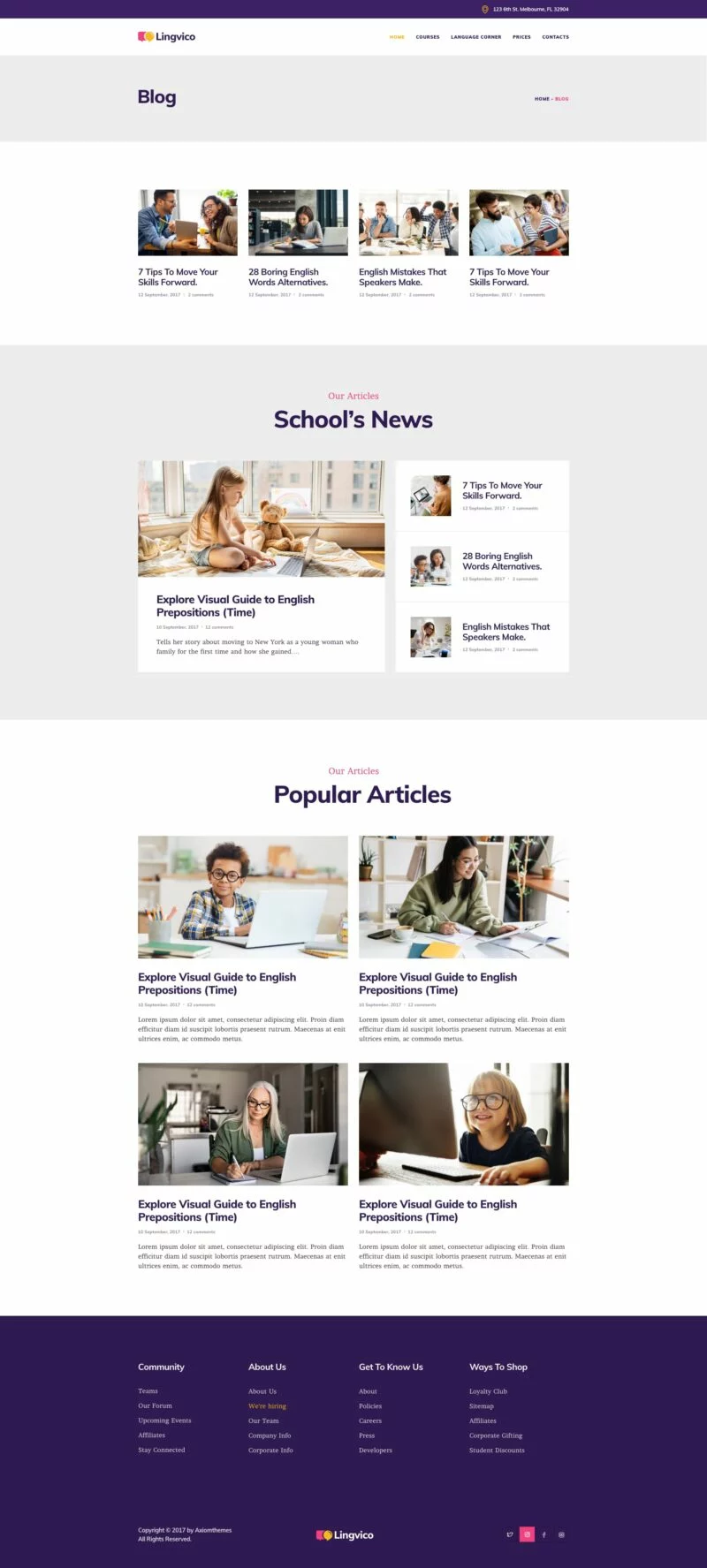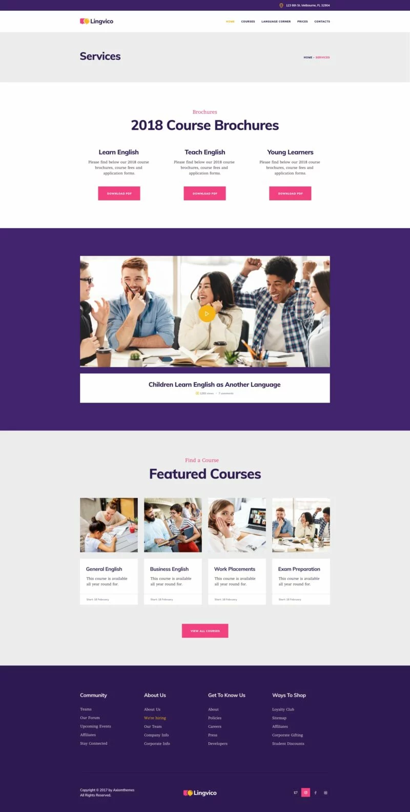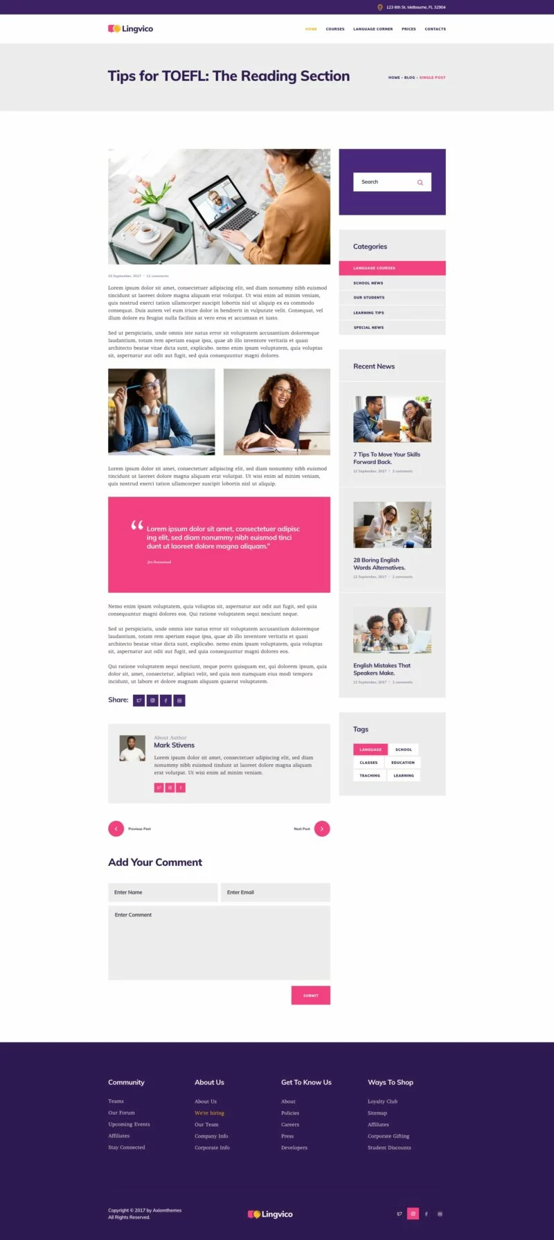توضیحات بیشتر درباره کیت قالب المنتور مرکز آموزش زبان و دورههای آموزشی Distance Education