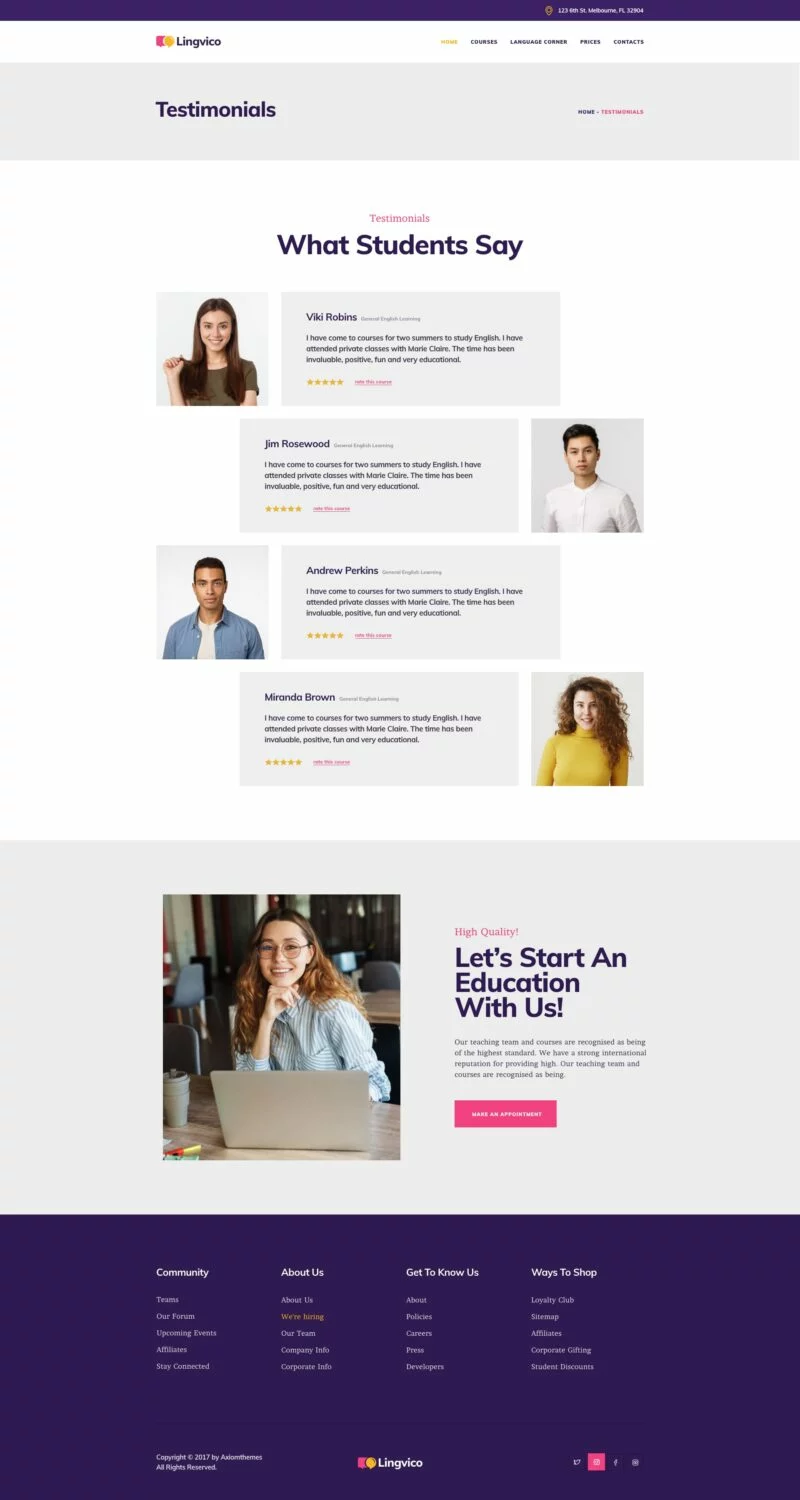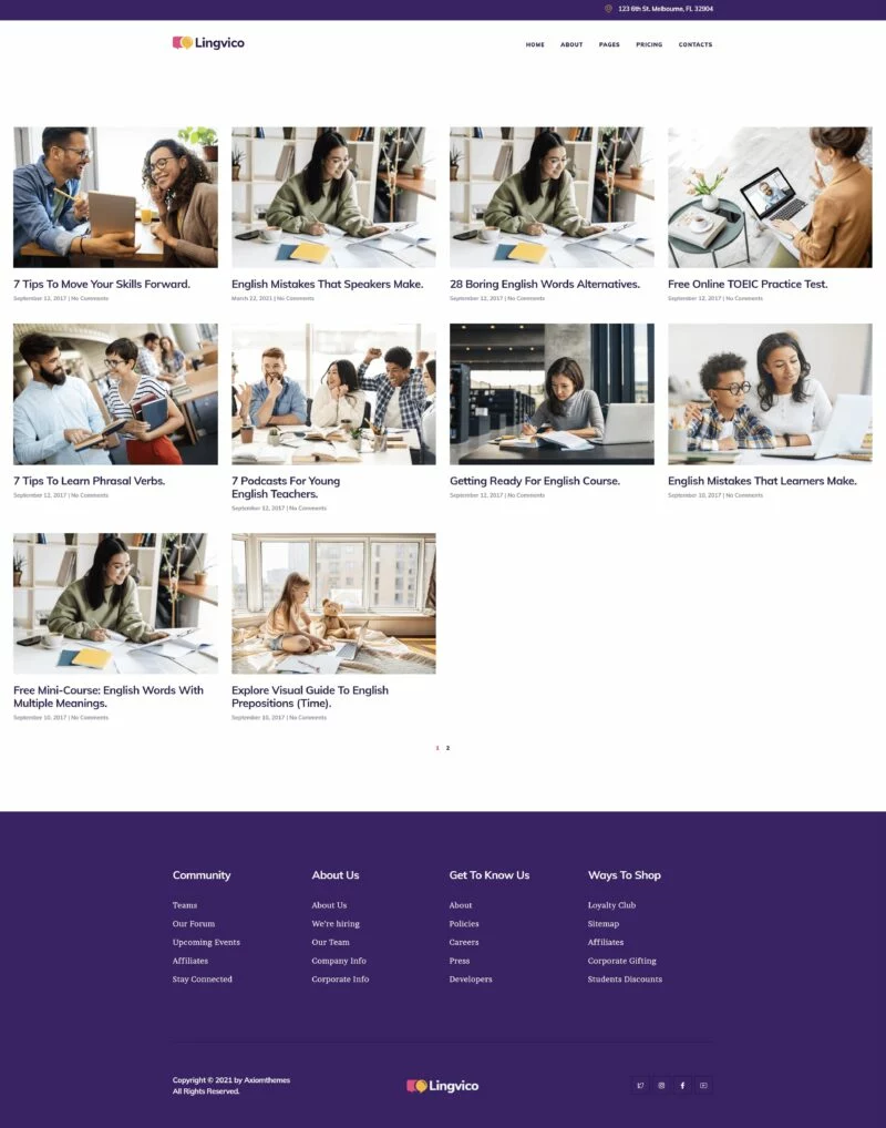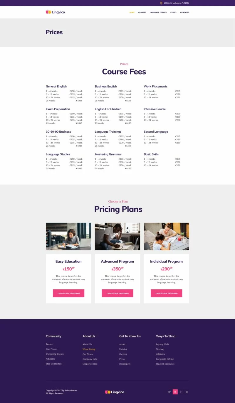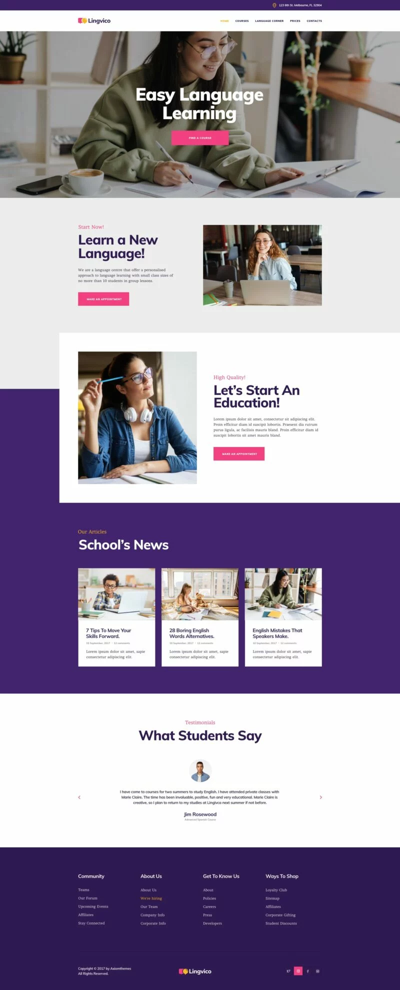 توضیحات بیشتر درباره کیت قالب المنتور مرکز آموزش زبان و دورههای آموزشی Distance Education