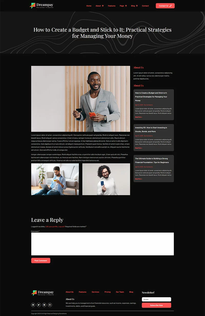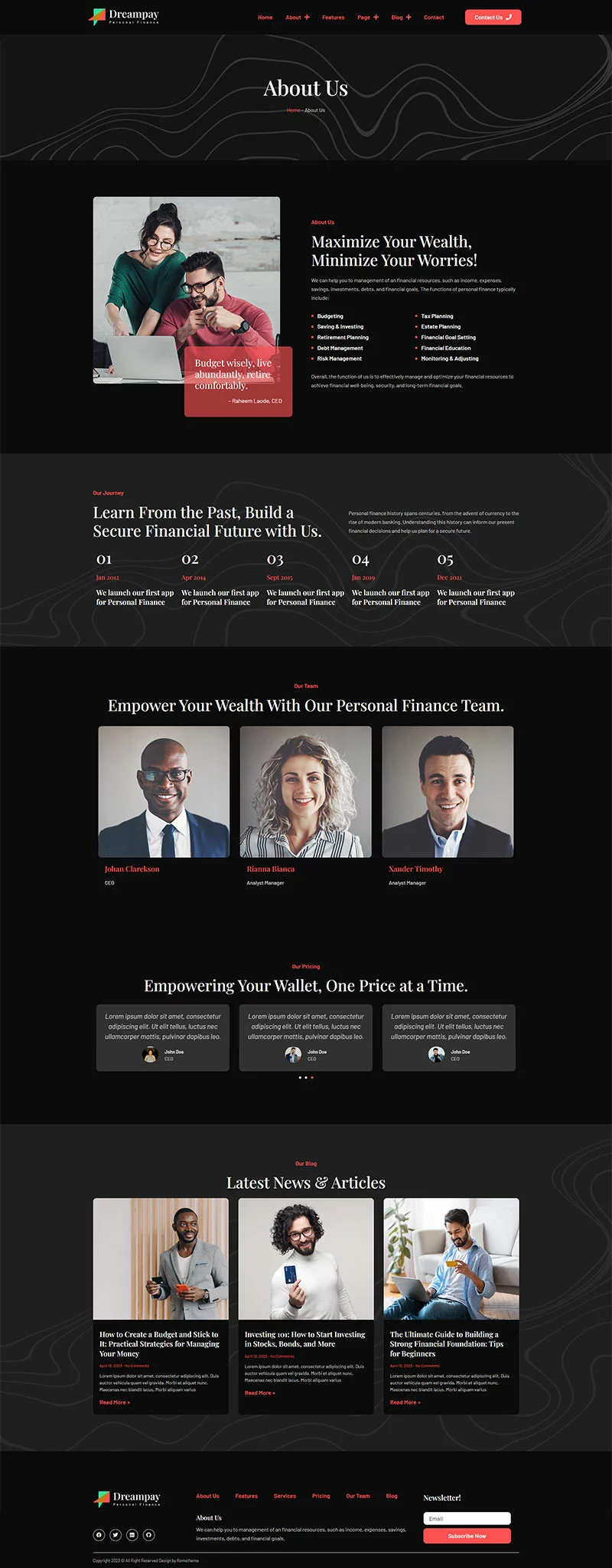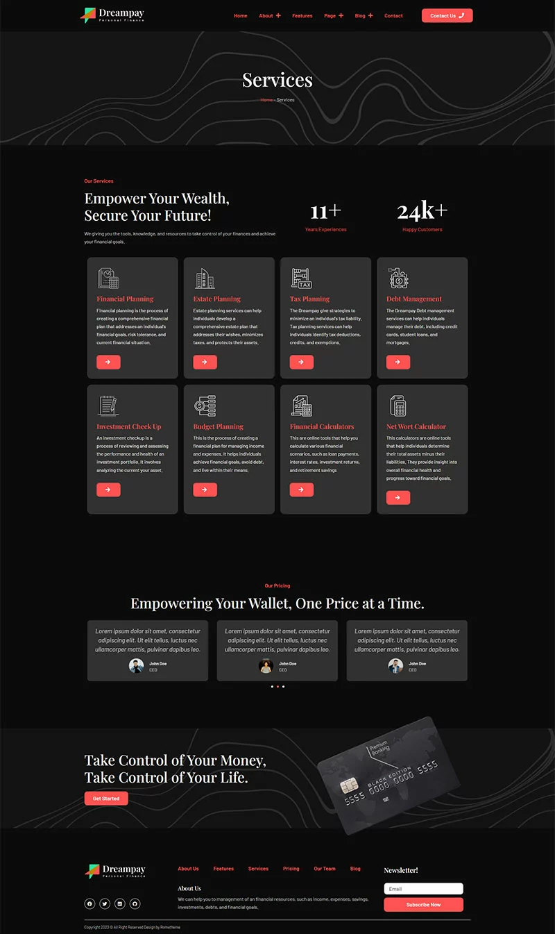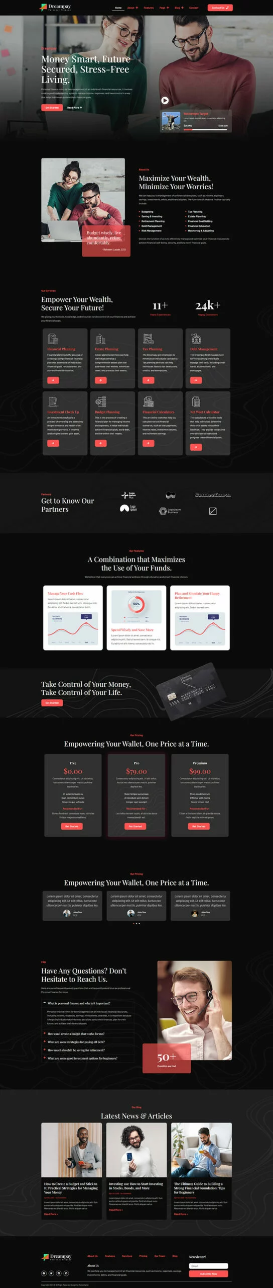کیت قالب المنتور مدیریت مالی Dreampay برای مدیریت مالی شخصی طراحی شده است و به کاربران کمک میکند تا به راحتی پول خود را مدیریت کرده و به اهداف مالی خود دست یابند. این کیت با طراحی تمیز و تاریک، وبسایتی حرفهای و جذاب برای مدیریت مالی شخصی ایجاد میکند. با استفاده از این کیت المنتور، میتوانید وبسایت خود را تنها با کشیدن و رها کردن عناصر، بدون نیاز به کدنویسی، ایجاد کنید.