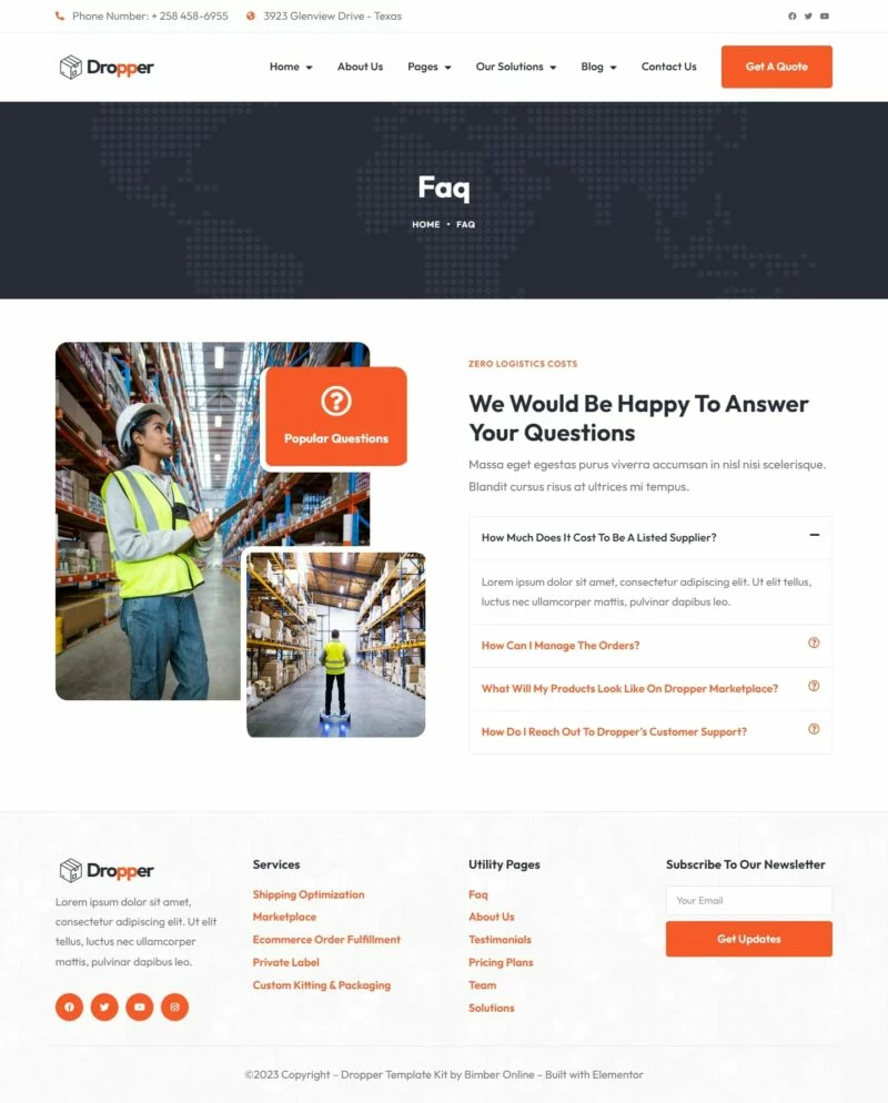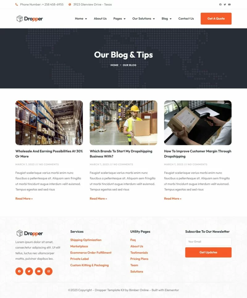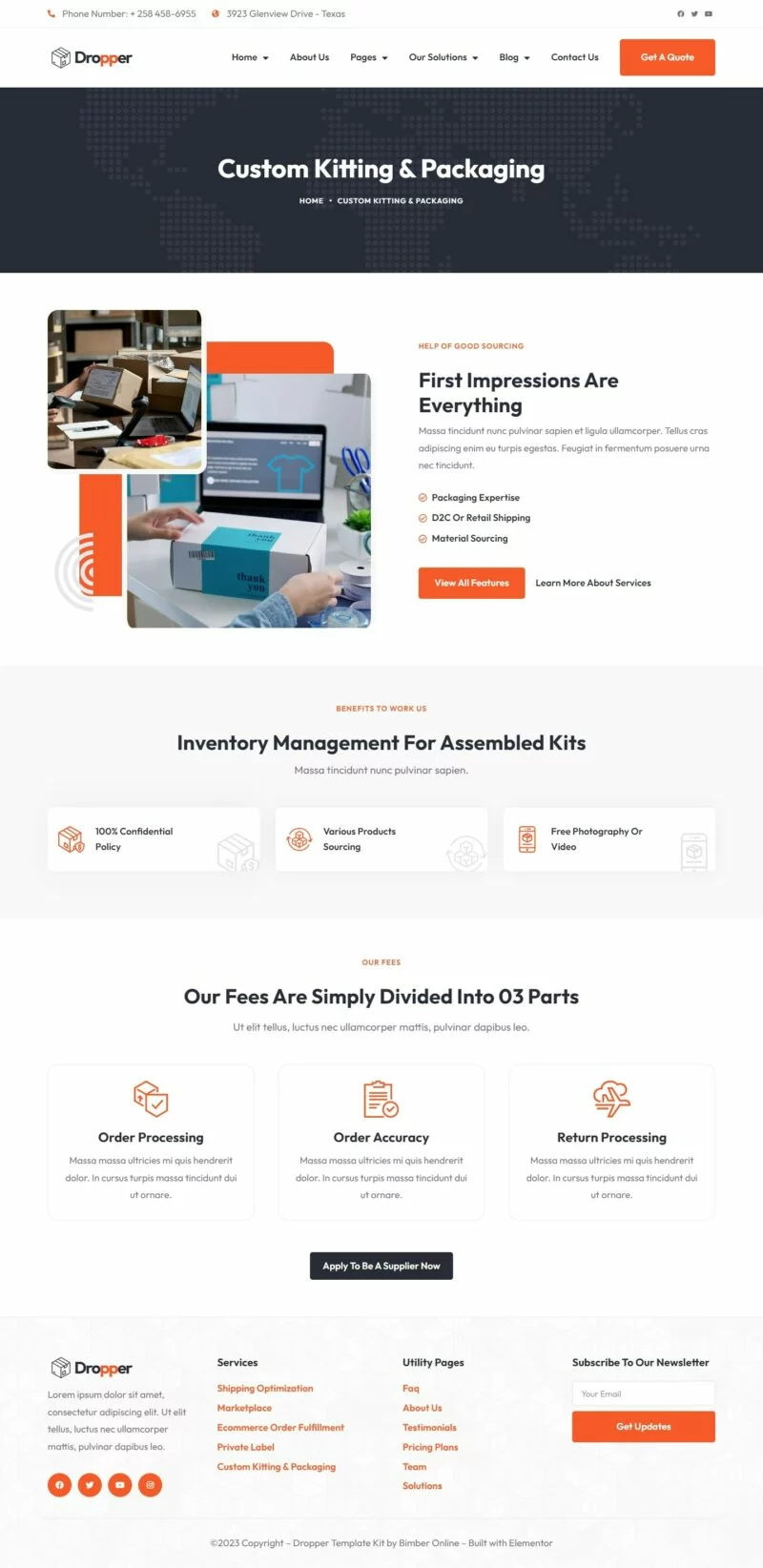 با نصب آسان و قابلیتهای گسترده، کیت قالب المنتور دراپ شیپینگ و لجستیک Dropper یک ابزار کامل و کارآمد برای هر کسب و کار دراپ شیپینگ و لجستیک است که میخواهد حضور آنلاین خود را بهبود بخشد و مشتریان بیشتری جذب کند.