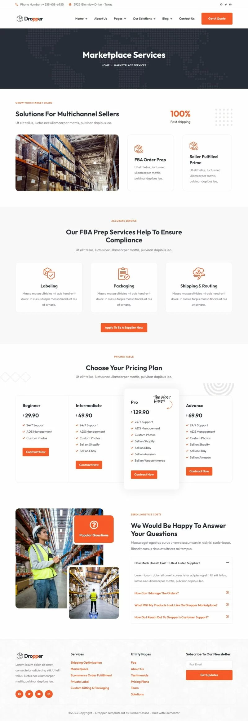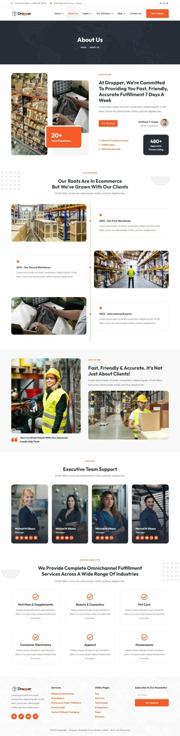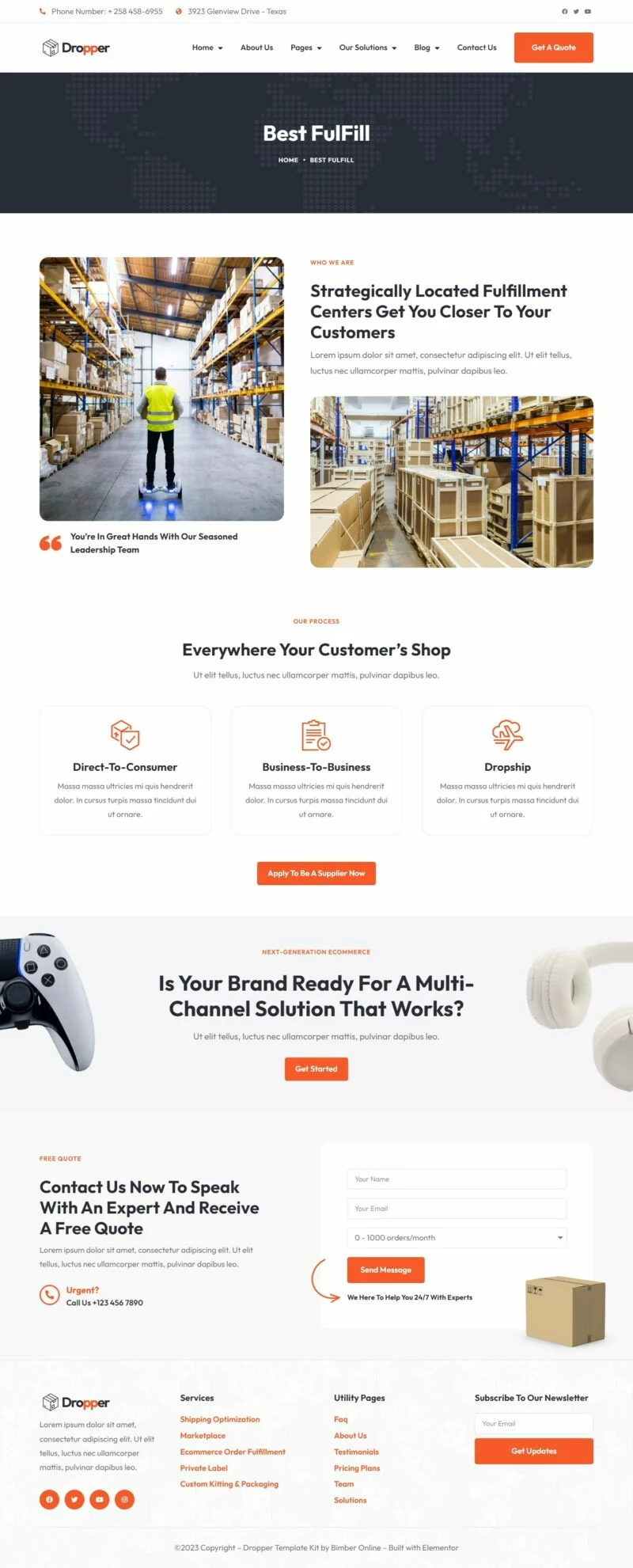 با نصب آسان و قابلیتهای گسترده، کیت قالب المنتور دراپ شیپینگ و لجستیک Dropper یک ابزار کامل و کارآمد برای هر کسب و کار دراپ شیپینگ و لجستیک است که میخواهد حضور آنلاین خود را بهبود بخشد و مشتریان بیشتری جذب کند.