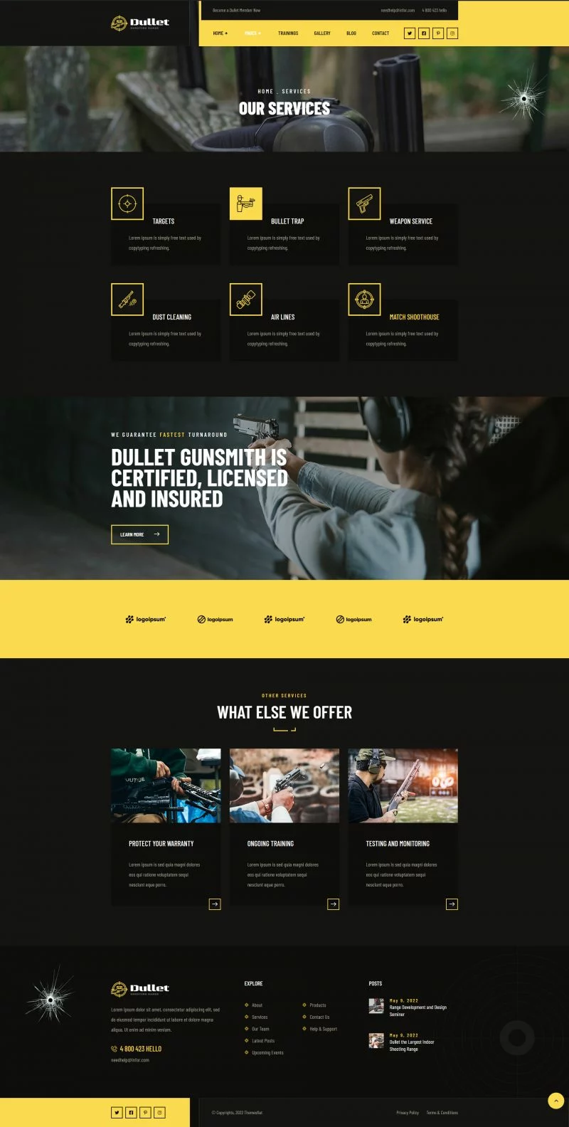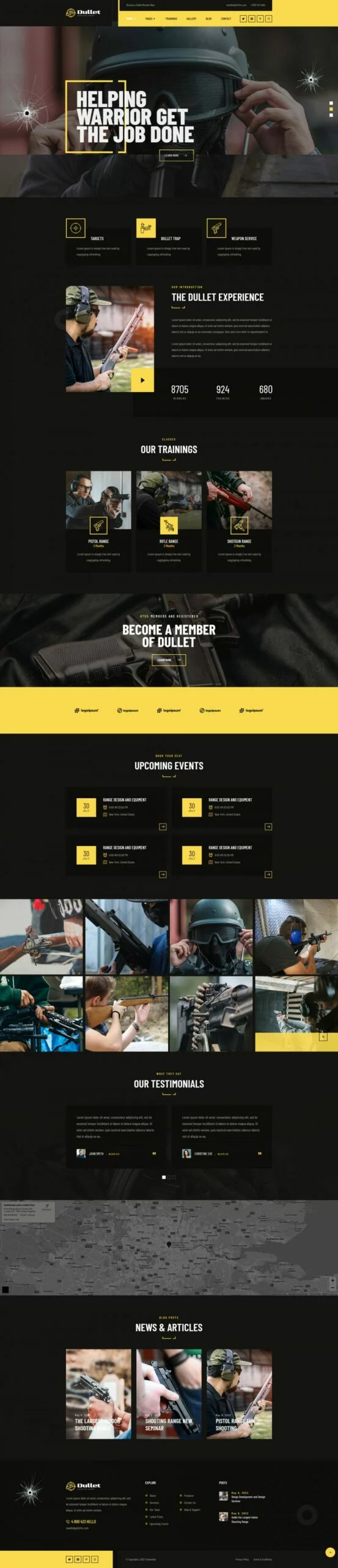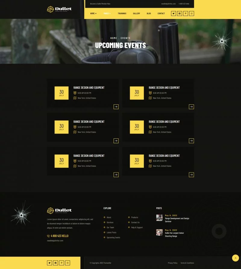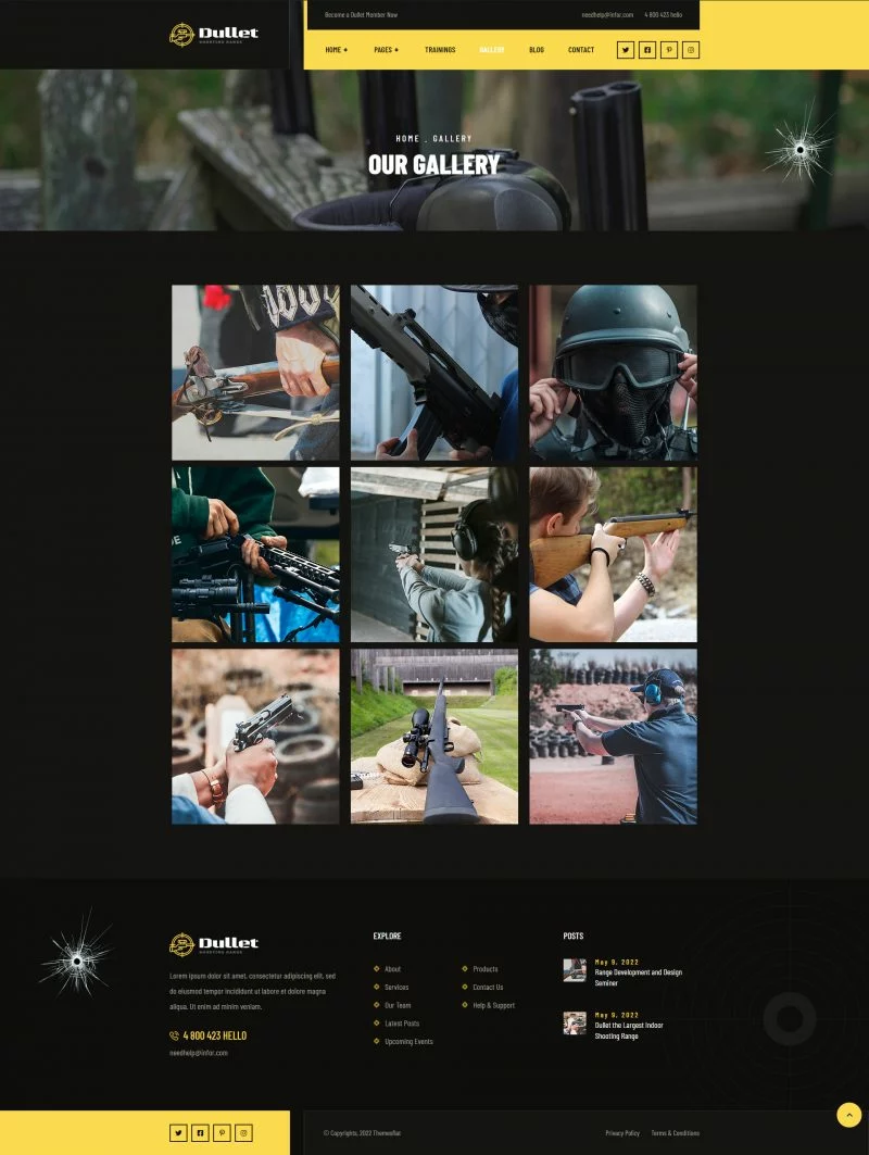 کیت قالب المنتور باشگاه تیراندازی Dullet یک کیت قالب مدرن و تیره برای باشگاه تیراندازی، کلوب اسلحه، مدرسه تیراندازی، کلوب شکار، کلاسهای اسلحه و وبسایتهای آموزش سلاح گرم است. برای استفاده یا پیکربندی این قالبها نیازی به مهارت کدنویسی نخواهید داشت. شما میتوانید به راحتی گزینههای تم را تغییر دهید، زیرا ما سیستم گزینههای بسیار قدرتمندی را برای این کار فراهم کردهایم. این یک تم وردپرس نیست. کیتهای قالب شامل محتوای صفحه برای سازنده صفحه المنتور هستند.کیت قالب المنتور باشگاه تیراندازی Dullet برای استفاده با تم رایگان Hello Elementor بهینه شده است، اما میتواند با بیشتر تمهایی که المنتور را پشتیبانی میکنند، استفاده شود.