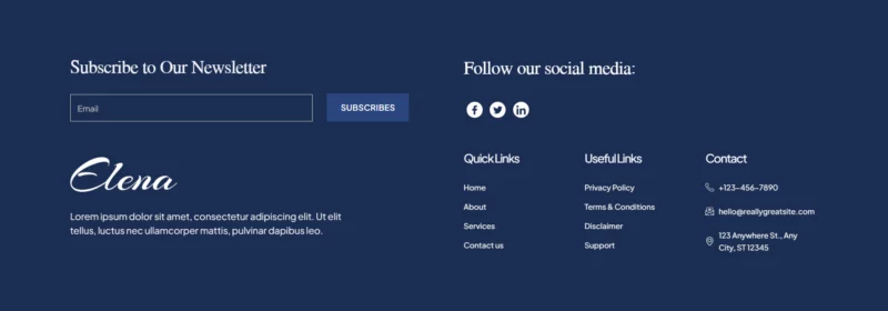 کیت قالب Elena امکان ویرایش کامل محتوا و تغییر ظاهر صفحات را با استفاده از قابلیت Drag & Drop فراهم میکند. این ویژگی برای کاربران بدون دانش فنی بسیار کاربردی است و بهراحتی میتوانند تمامی بخشهای وبسایت را طبق سلیقه خود تغییر دهند.