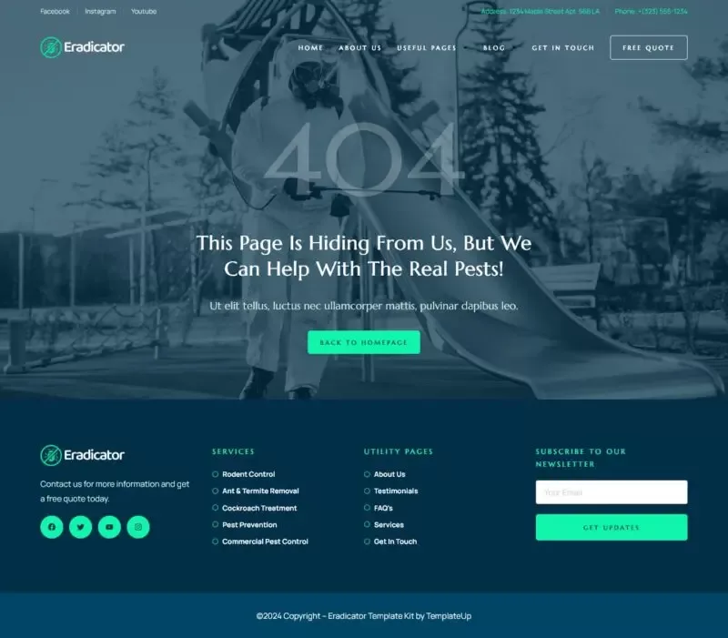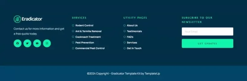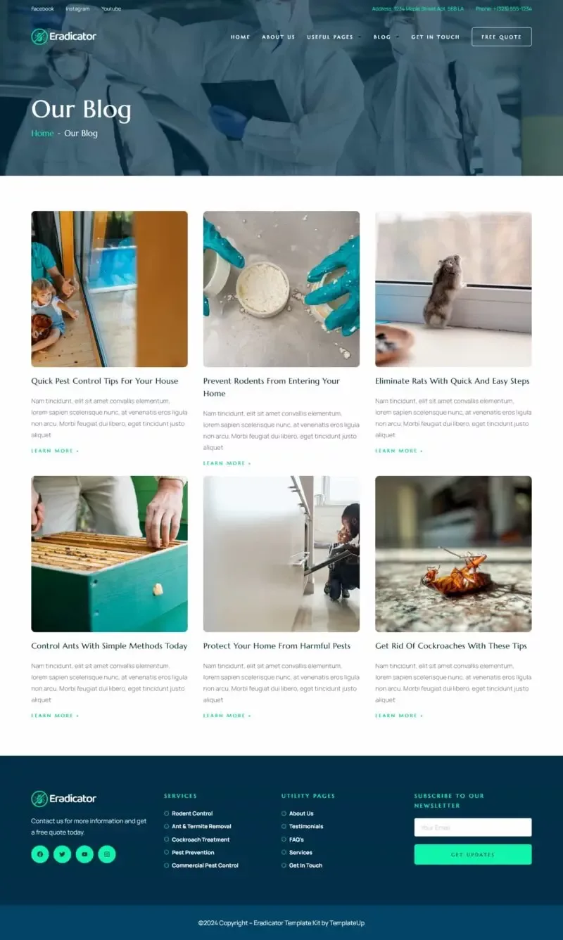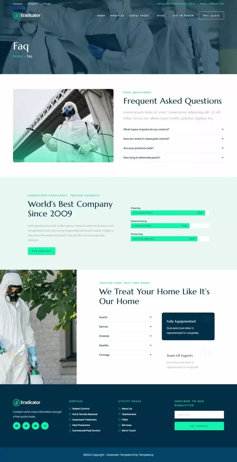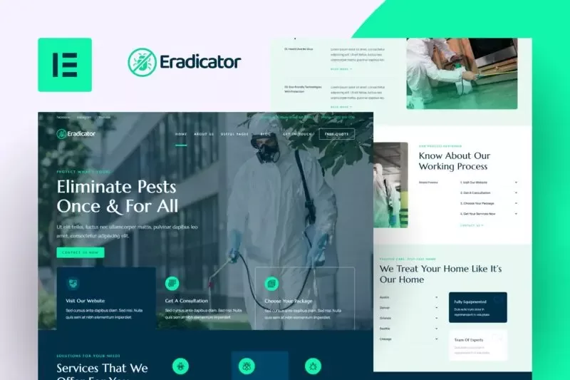 کیت قالب المنتور Eradicator یک انتخاب حرفهای و بهینه برای طراحی وبسایت شرکتهای ارائهدهنده خدمات کنترل آفات است. این قالب به طور خاص برای شرکتهای کنترل آفات و خدمات مرتبط طراحی شده و شامل قالبهایی مناسب برای خدمات سمپاشی، دفع آفات، خدمات مسکونی و تجاری، و بسیاری دیگر است.