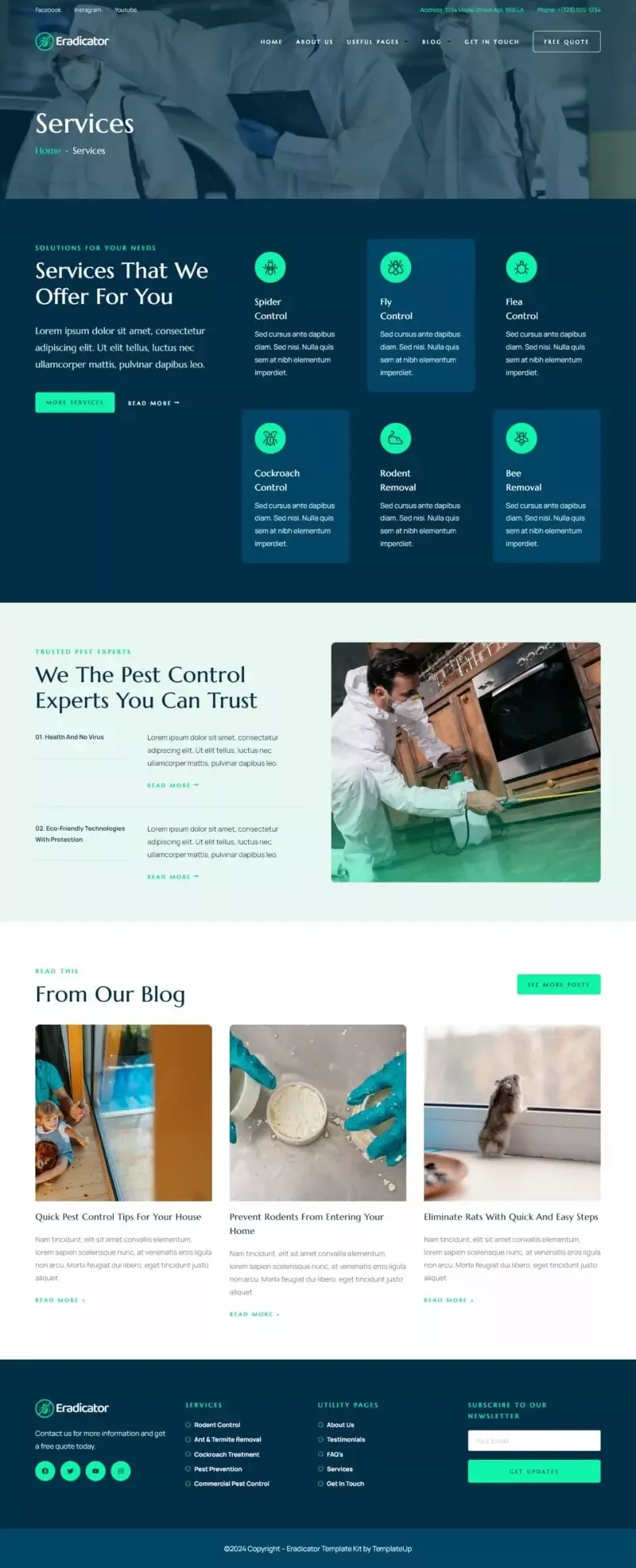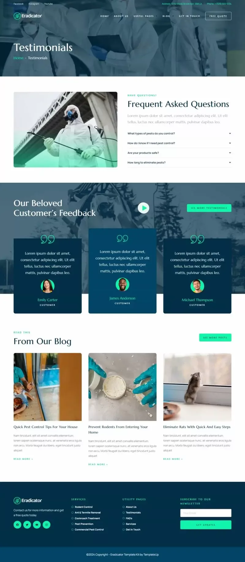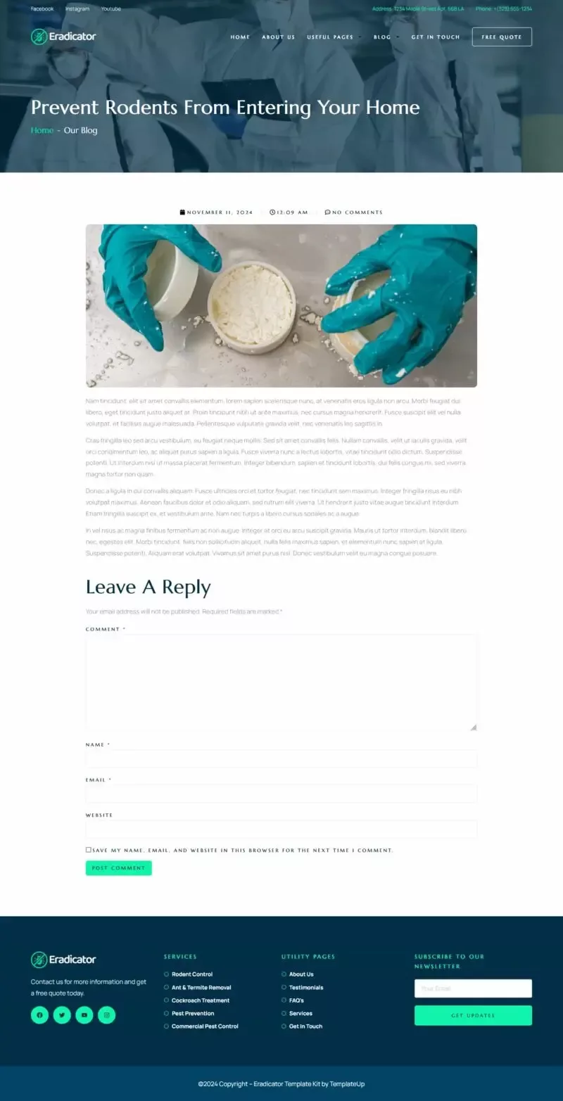 کیت قالب المنتور Eradicator یک انتخاب حرفهای و بهینه برای طراحی وبسایت شرکتهای ارائهدهنده خدمات کنترل آفات است. این قالب به طور خاص برای شرکتهای کنترل آفات و خدمات مرتبط طراحی شده و شامل قالبهایی مناسب برای خدمات سمپاشی، دفع آفات، خدمات مسکونی و تجاری، و بسیاری دیگر است.