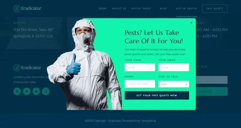 اگر به دنبال راهاندازی یک وبسایت حرفهای برای خدمات کنترل آفات خود هستید، کیت قالب المنتور Eradicator یک راهحل ایدهآل برای شماست. این قالب با طراحی مدرن، امکانات پیشرفته و سهولت استفاده، تمامی نیازهای شما را برای داشتن یک وبسایت موفق برطرف میکند.