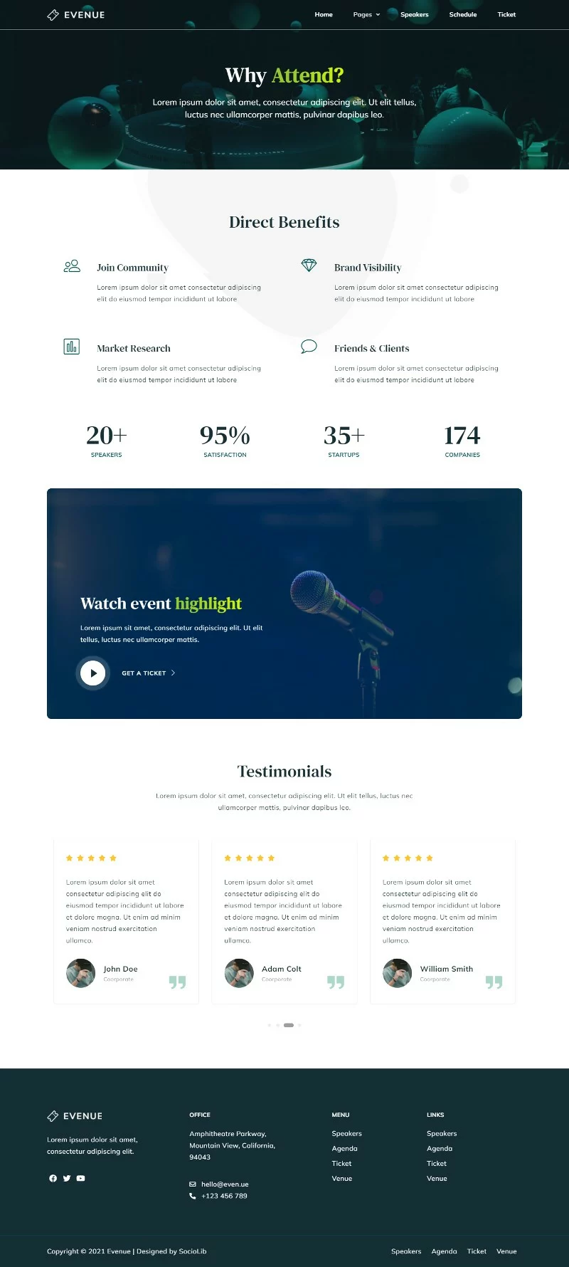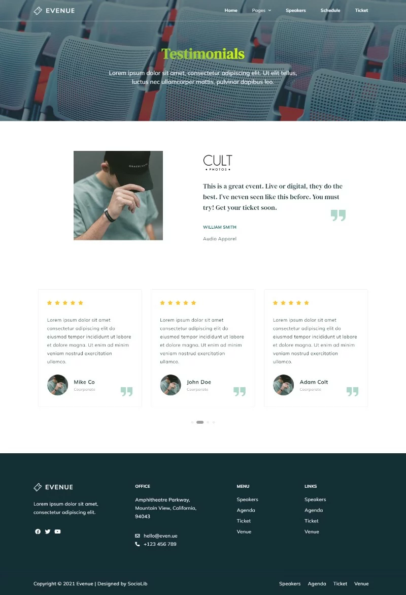 با توجه به ویژگیهای بارز و طراحی حرفهای، کیت قالب Evenue یک انتخاب عالی برای هر کسی است که میخواهد یک وبسایت حرفهای و جذاب برای رویدادها و کنفرانسهای خود ایجاد کند. این کیت به شما کمک میکند تا به سرعت و به آسانی وبسایت خود را راهاندازی کرده و مخاطبان خود را تحت تأثیر قرار دهید.