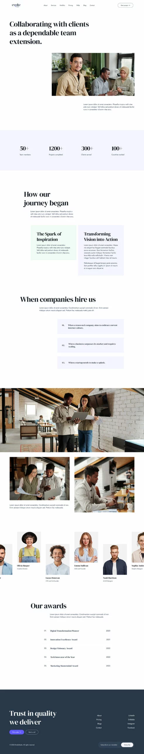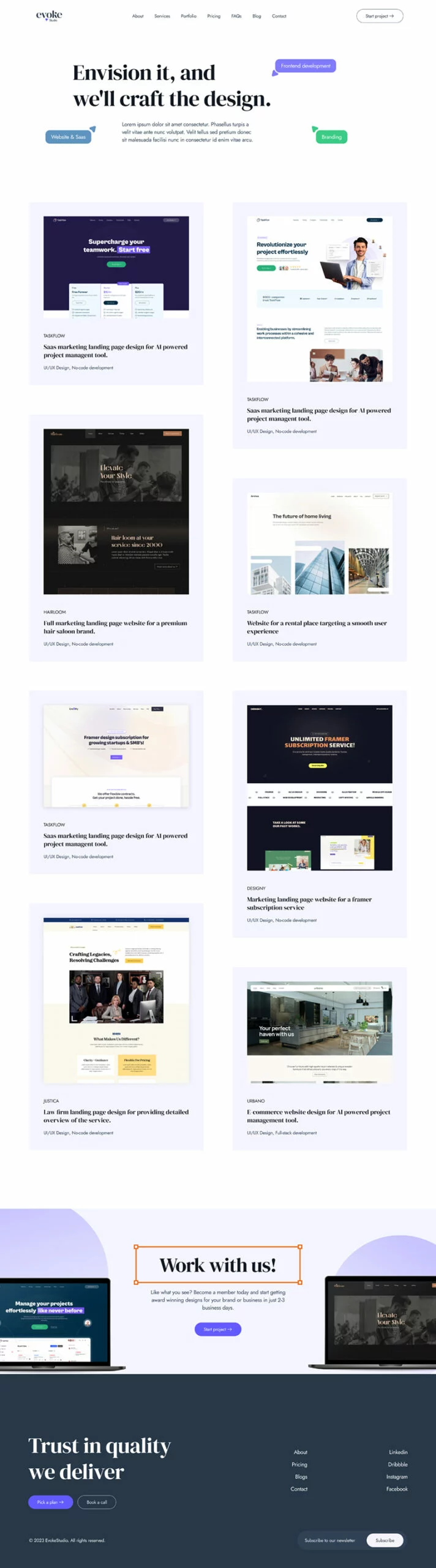 هویت آنلاین خود را با طراحی معاصر EvokeStudio ارتقا دهید و اطمینان حاصل کنید که وبسایت آژانس شما بازدیدکنندگان را جذب کرده و نمایانگر ماهیت پیشرفته خدمات شما است.
