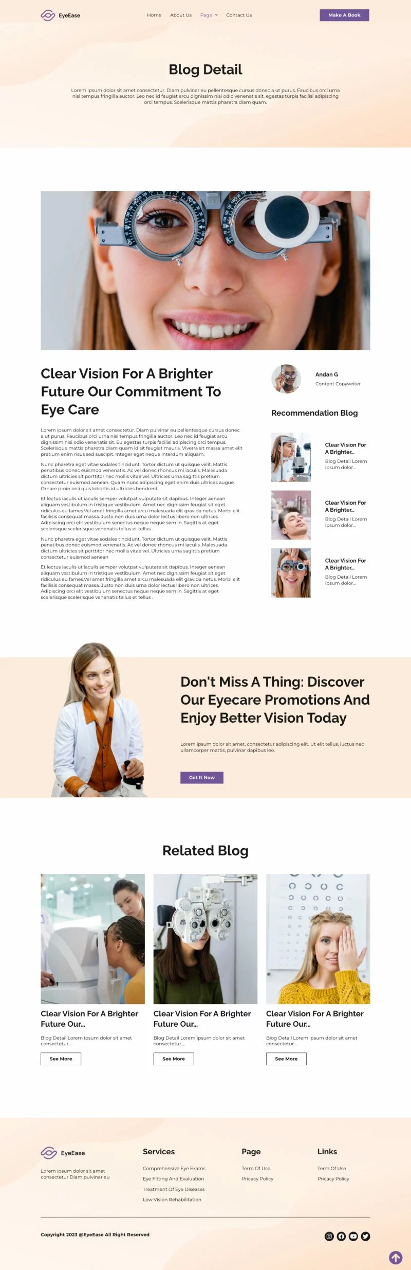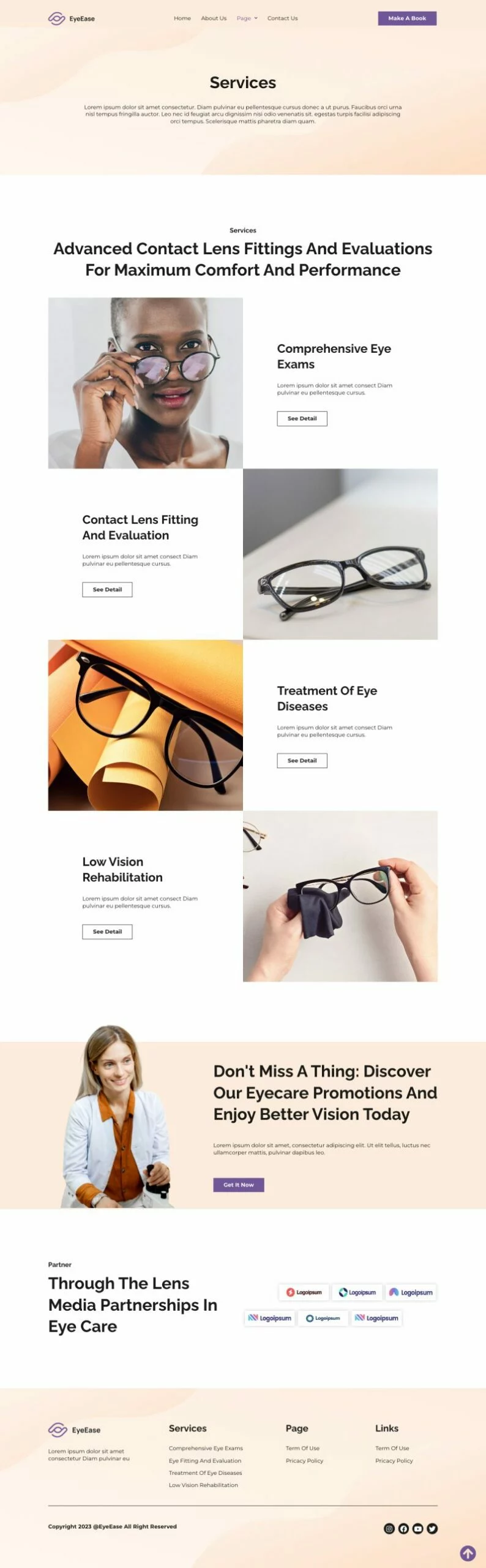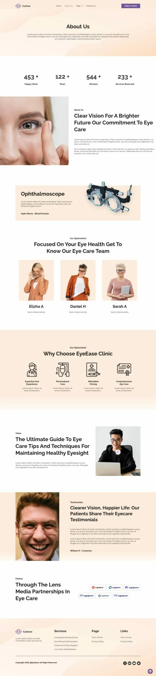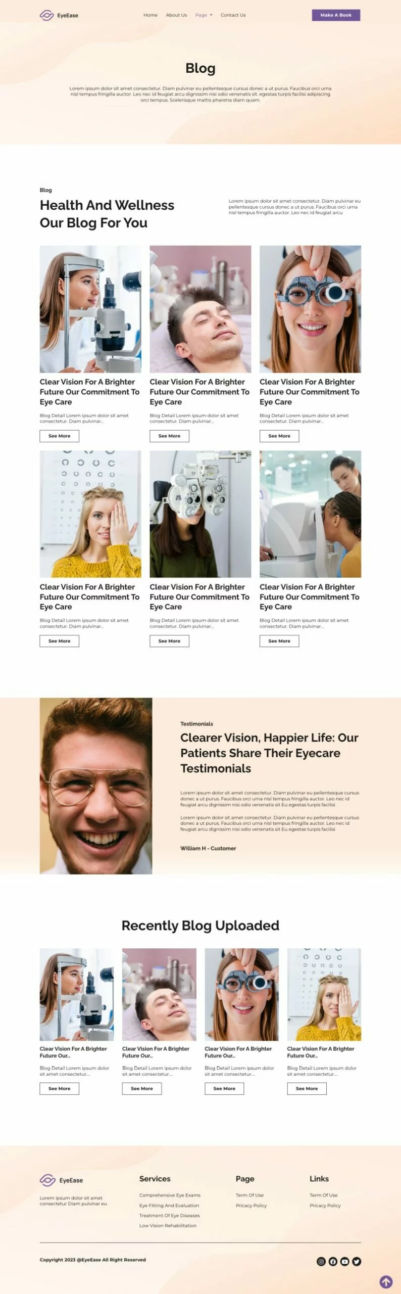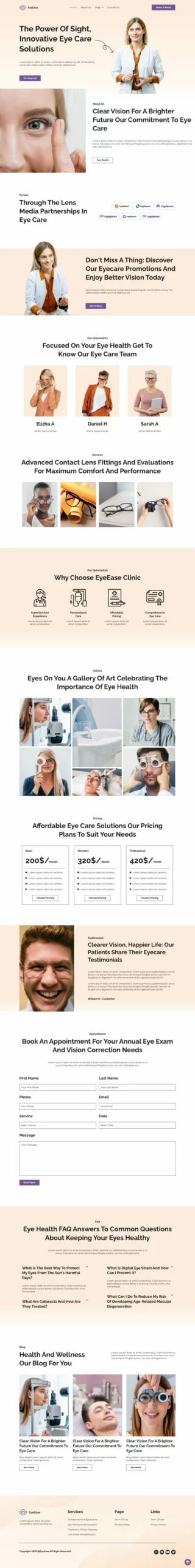 کیت قالب المنتور کلینیک چشم پزشکی EyeEase به سرعت و به آسانی به شما امکان ایجاد وبسایت برای کسبوکارتان را با استفاده از افزونه Elementor Page Builder برای وردپرس میدهد. این یک قالب وردپرس نیست. کیت قالب شامل محتوای صفحات برای سازنده صفحه المنتور است. این کیت برای استفاده با تم رایگان Hello Elementor بهینهسازی شده است، اما میتوان از آن با اکثر تمهایی که از المنتور پشتیبانی میکنند نیز استفاده کرد.