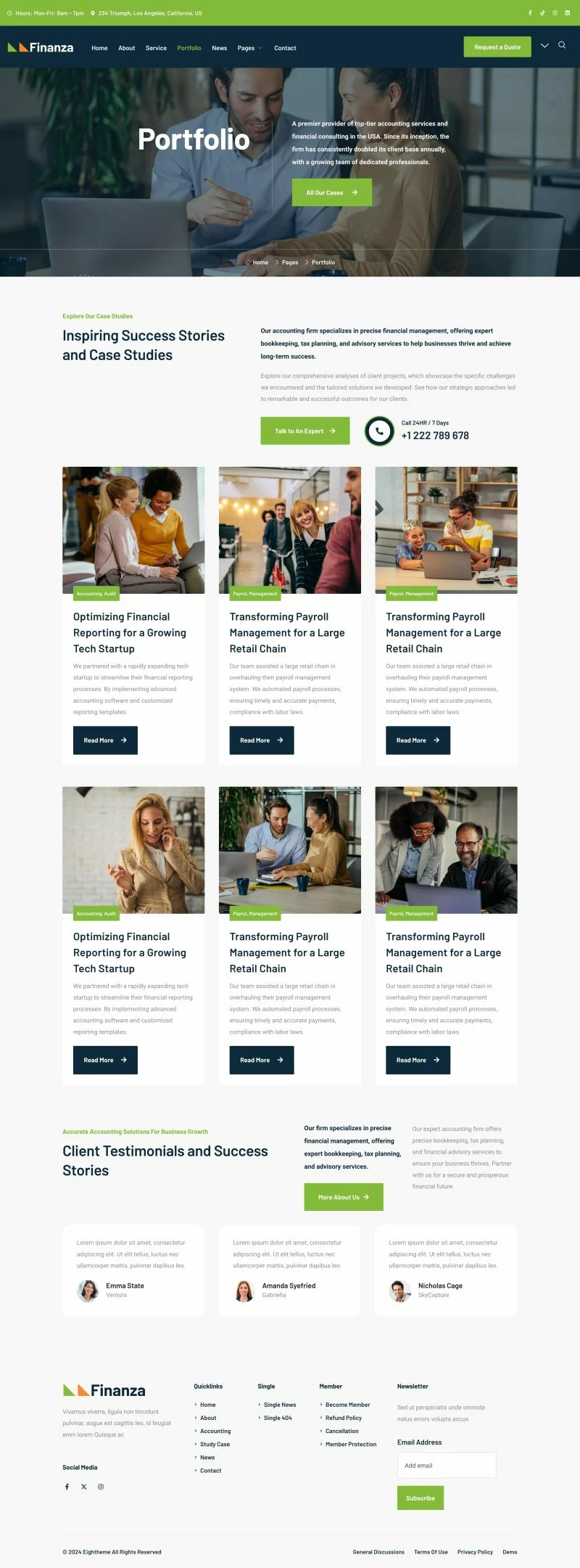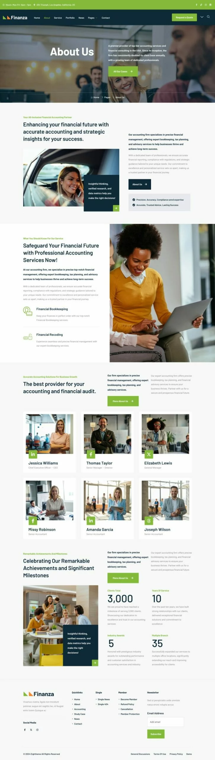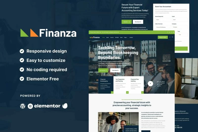 قالبهای از پیش طراحیشده و ابزارهای متنوعی که کیت قالب المنتور شرکت مالی و حسابداری Finanza ارائه میدهد، به شما کمک میکند تا به سرعت و بدون نیاز به دانش کدنویسی، وبسایتهایی حرفهای و مطابق با برند خود ایجاد کنید.