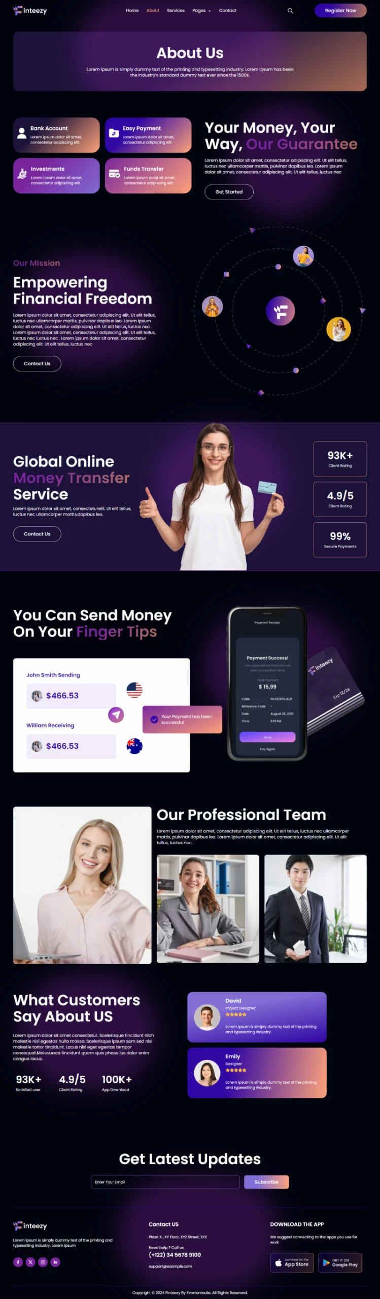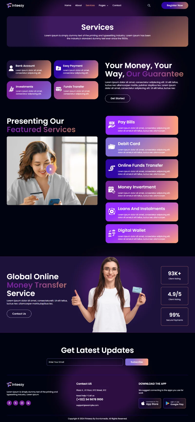 با استفاده از کیت قالب المنتور فین تک و کیف پول دیجیتال Finteezy، پلتفرم پرداخت خود را با طراحیهای حرفهای و عملکرد بهروز به سطح بالاتری ببرید. آماده شوید تا با یک راهحل پرداخت آنلاین تمیز، کارآمد و زیبا، کاربران خود را تحت تأثیر قرار دهید.