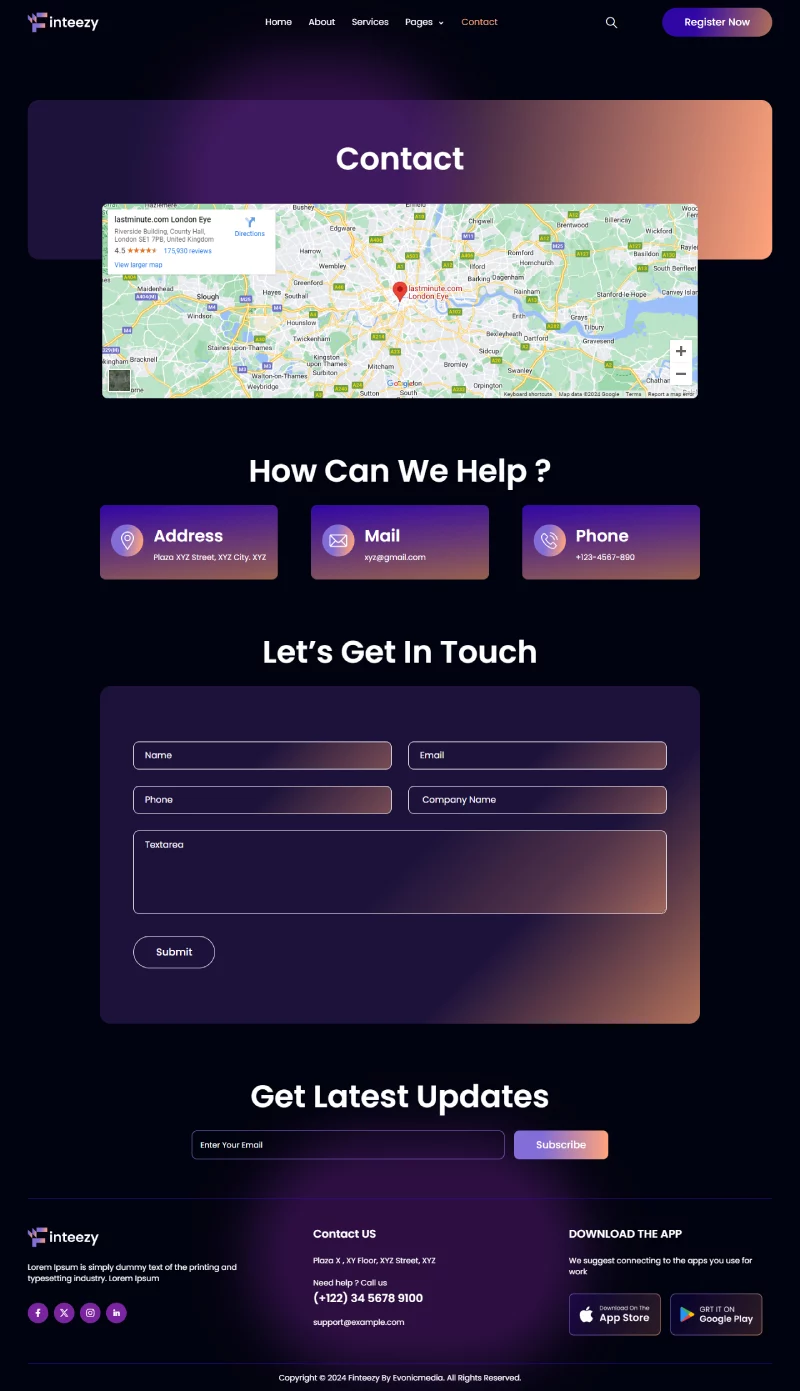 هدر، پاورقی، فرم تماس، فرم خبرنامه