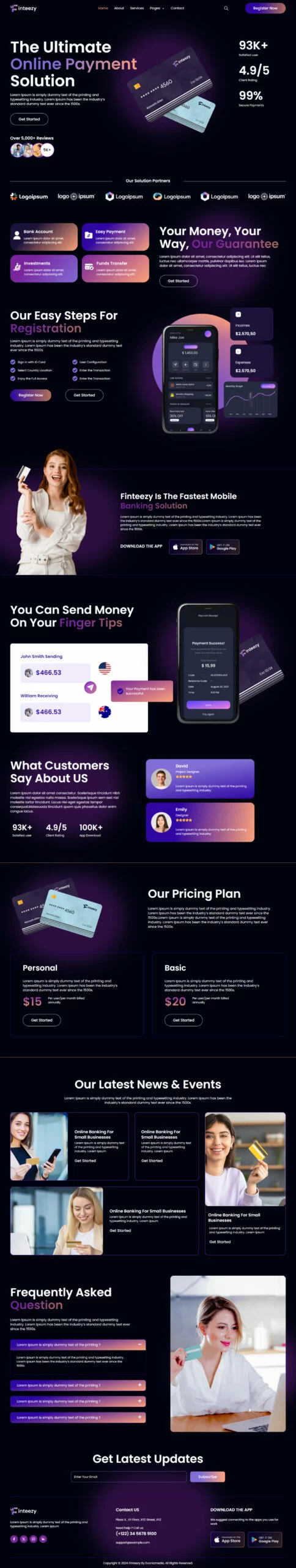 کیت قالب المنتور فین تک و کیف پول دیجیتال Finteezy برای درگاههای پرداخت آنلاین مدرن طراحی شده است. این کیت با ارائه طراحیهای شیک و کاربرپسند، تجربه کاربری روان و حرفهای را تضمین میکند و به افزایش اعتماد و تعامل کاربران کمک مینماید. این کیت قالب برای استارتاپهای فینتک و کسبوکارهای جاافتاده ایدهآل است و شامل بخشهای قابل شخصیسازی، گزینههای ادغام پرداخت امن و چیدمانهای واکنشگرا میباشد.