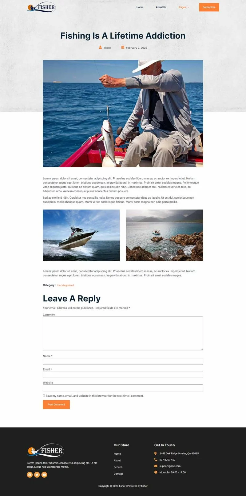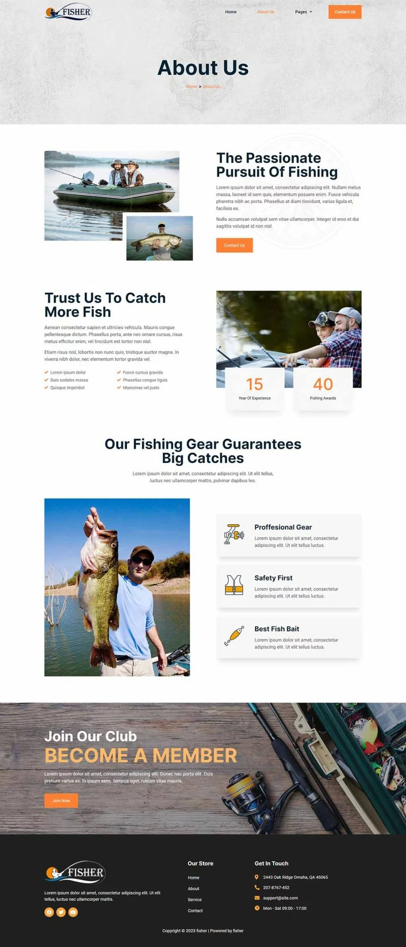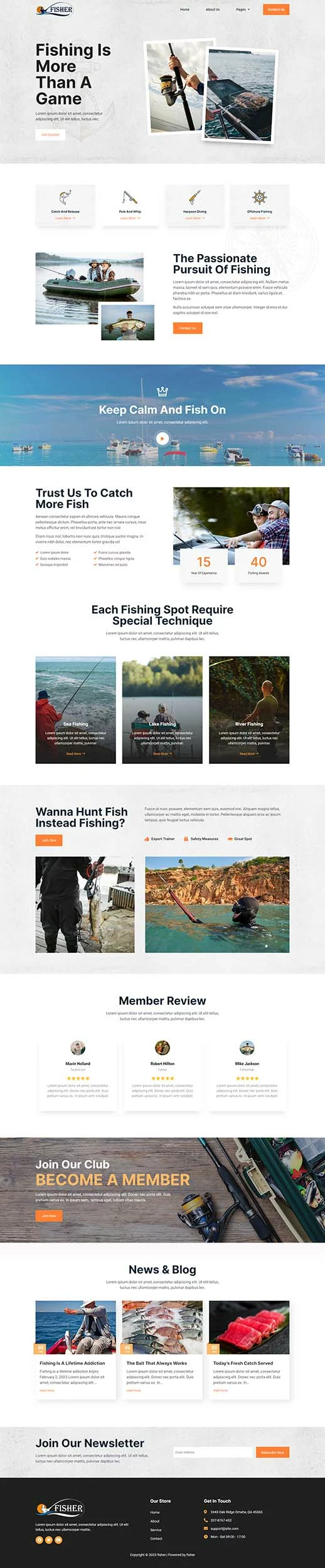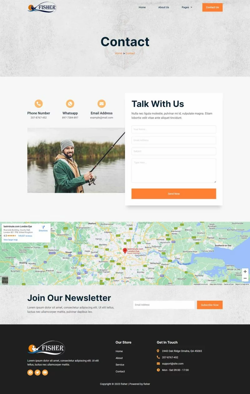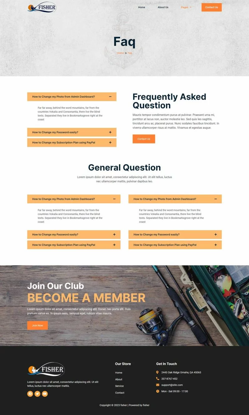کیت قالب المنتور باشگاه ماهیگیری Fisher یک مجموعه قالب برای ایجاد سریع و آسان وبسایتهای کسبوکار با استفاده از افزونه Elementor Page Builder برای وردپرس است. این یک تم وردپرس نیست. کیتهای قالب شامل محتوای صفحه برای صفحهساز المنتور هستند. این کیت بهینهسازی شده برای استفاده با قالب رایگان Hello Elementor است اما میتواند با بیشتر قالبهایی که از المنتور پشتیبانی میکنند نیز استفاده شود.