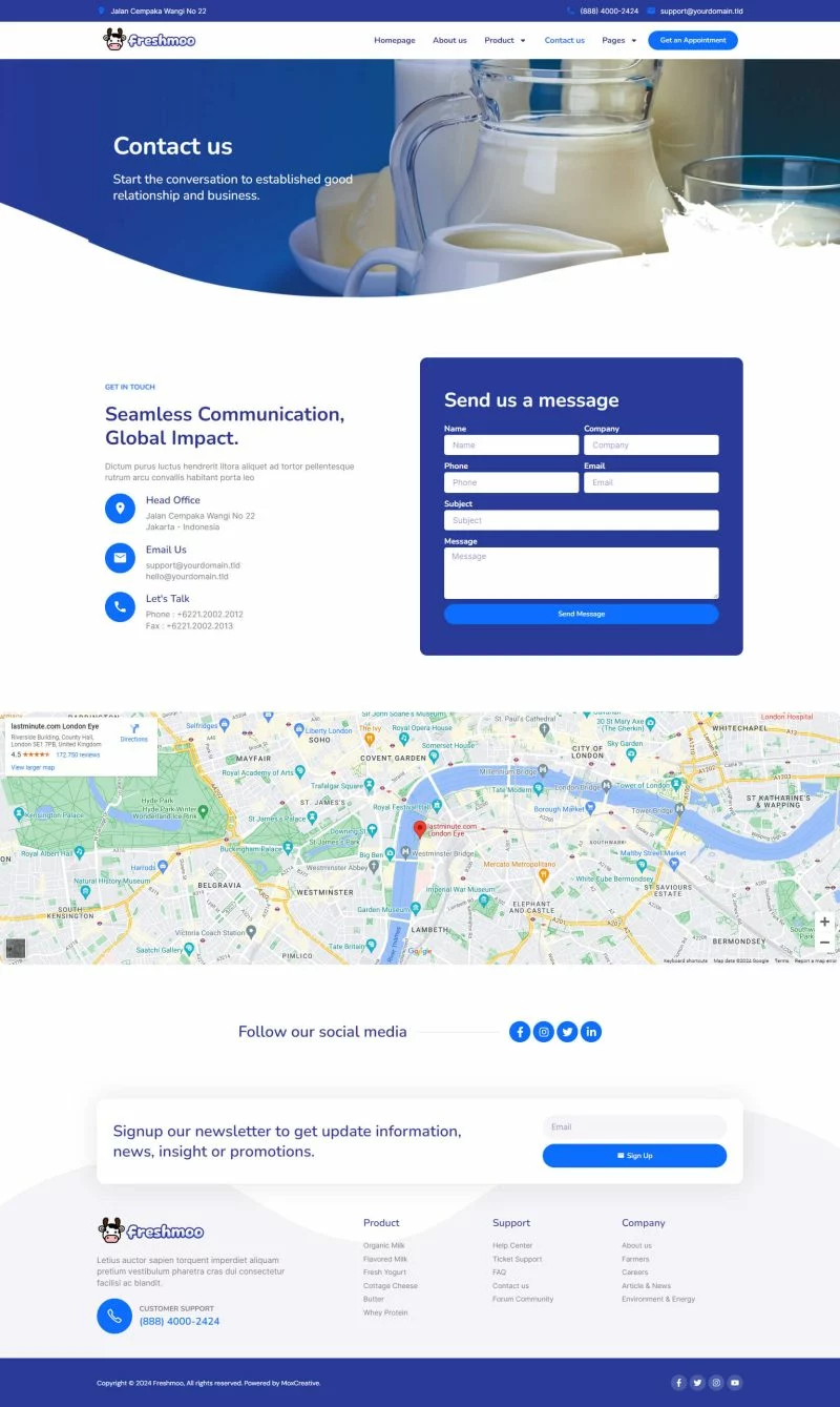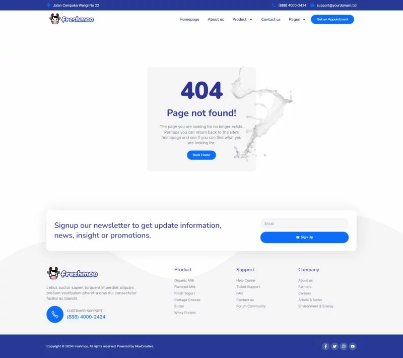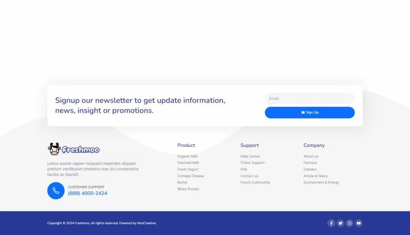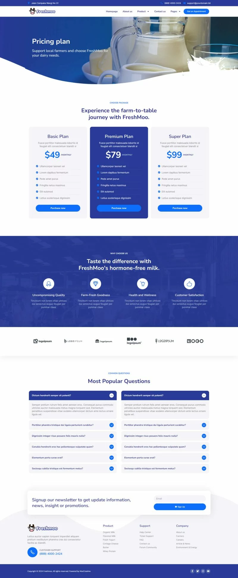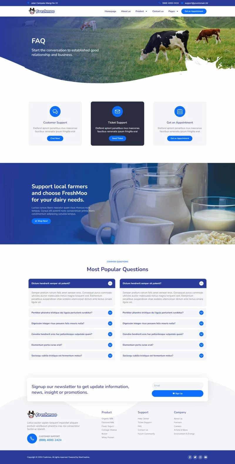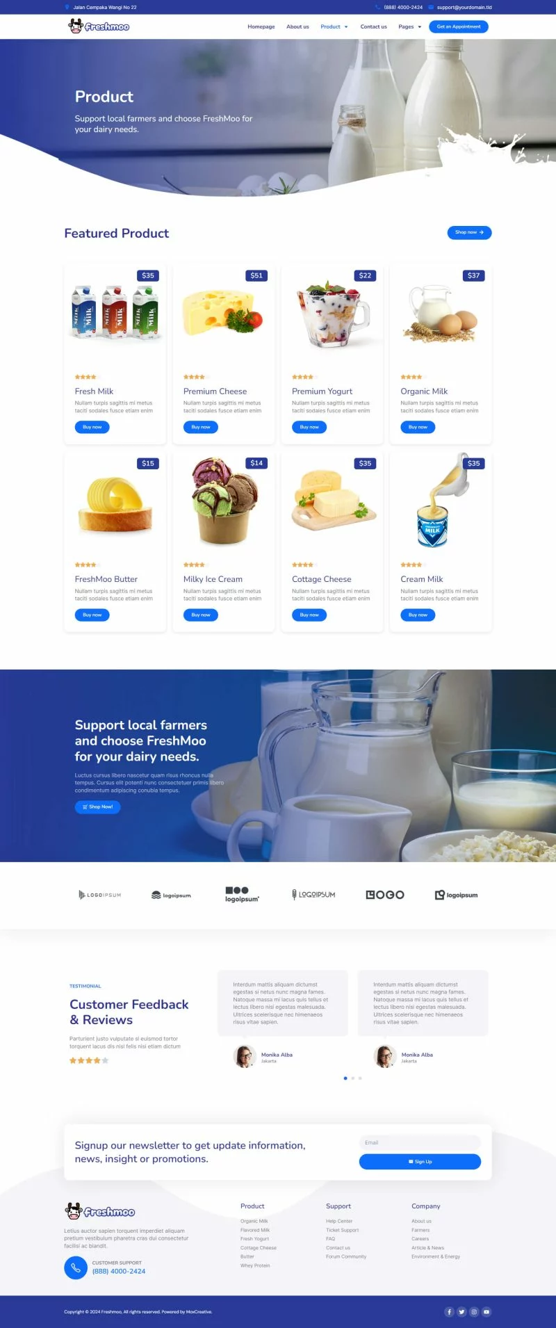 کیت قالب المنتور مزرعه لبنی FreshMoo برای وبسایتهای مرتبط با مزارع لبنی و محصولات تولیدی است. این کیت شامل بیش از 12 قالب از پیشساخته شده با طراحی تمیز و مدرن است. شما میتوانید از کیت قالب المنتور مزرعه لبنی FreshMoo برای ساخت هر نوع وبسایت مرتبط با مزارع لبنی، مانند مزرعه شیر، شرکت تولید شیر، تولید پنیر، بازار لبنیات و غیره استفاده کنید.