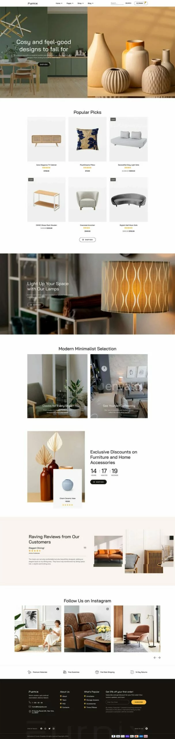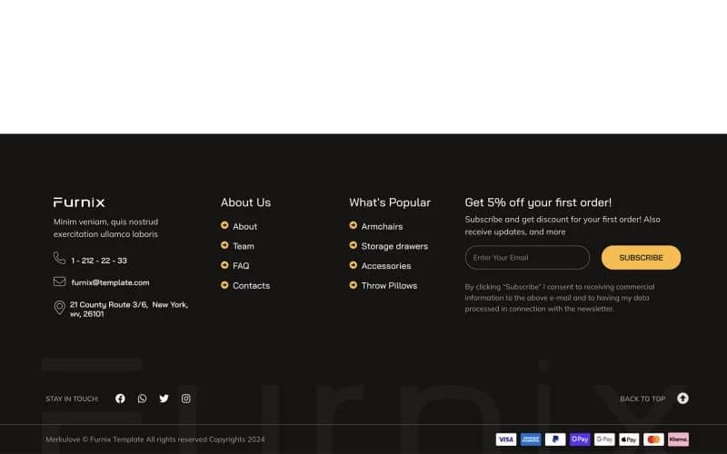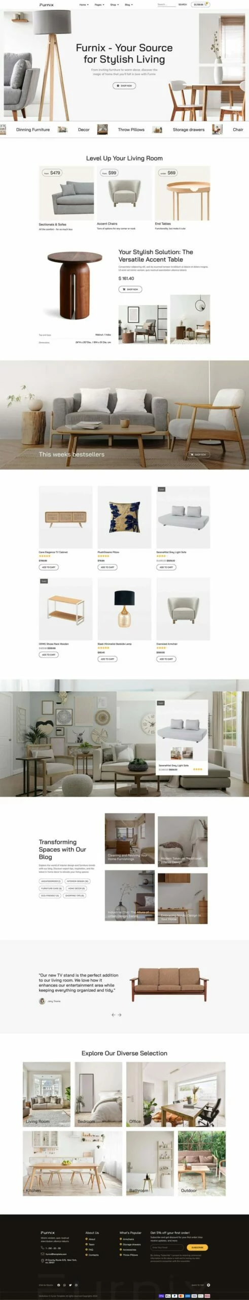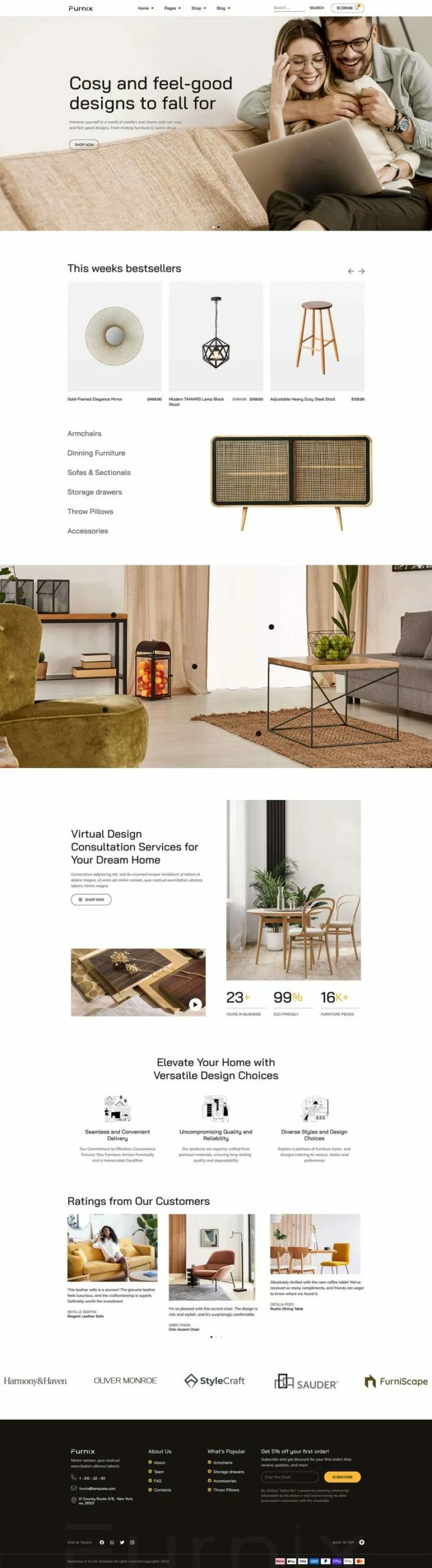 کیت قالب المنتور فروشگاهی Furnix به طور تخصصی برای فروشگاههای مبلمان، خردهفروشان آنلاین، فروشگاههای تجارت الکترونیک و خدمات مدرن مبلمان طراحی شده است. با طراحی تمیز، پالت رنگ آرامشبخش و رابط کاربری دوستانه، این قالب تجربه خرید آنلاین دلپذیری را برای مشتریان شما به ارمغان میآورد.