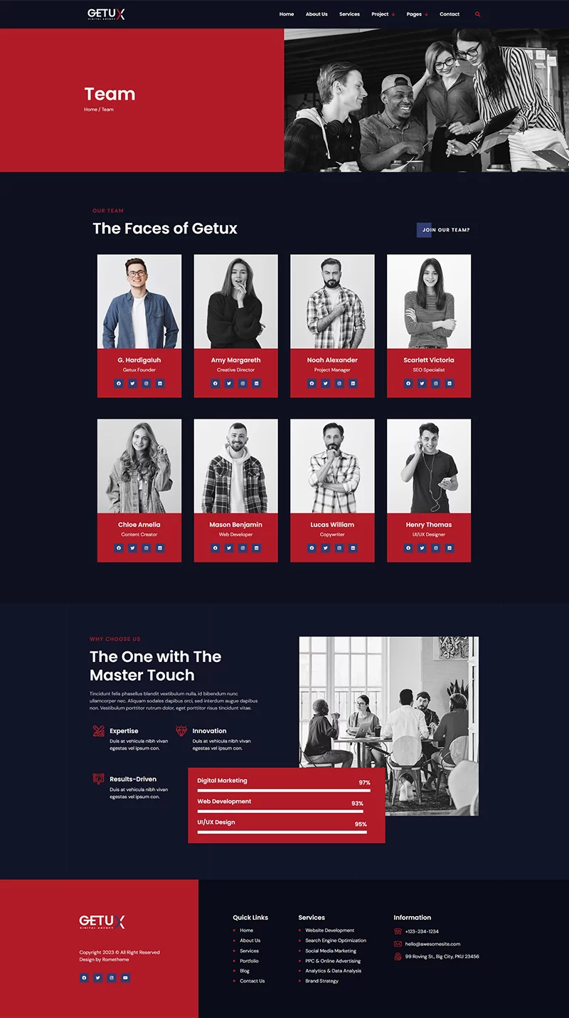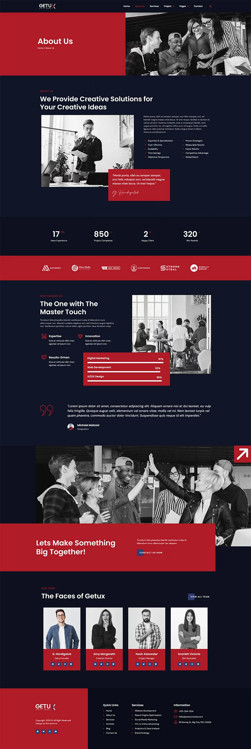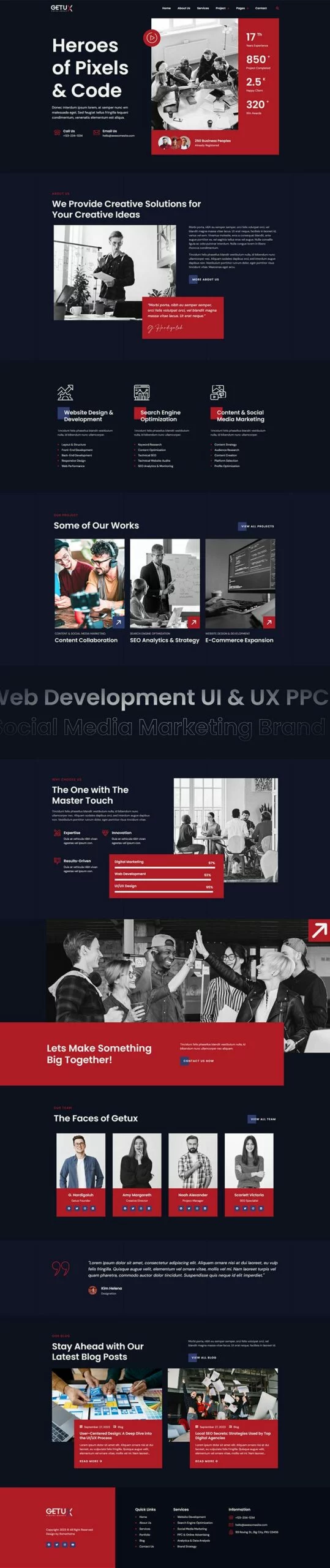 ویژگیهایکیت قالب المنتور آژانس دیجیتال مدرن Getux