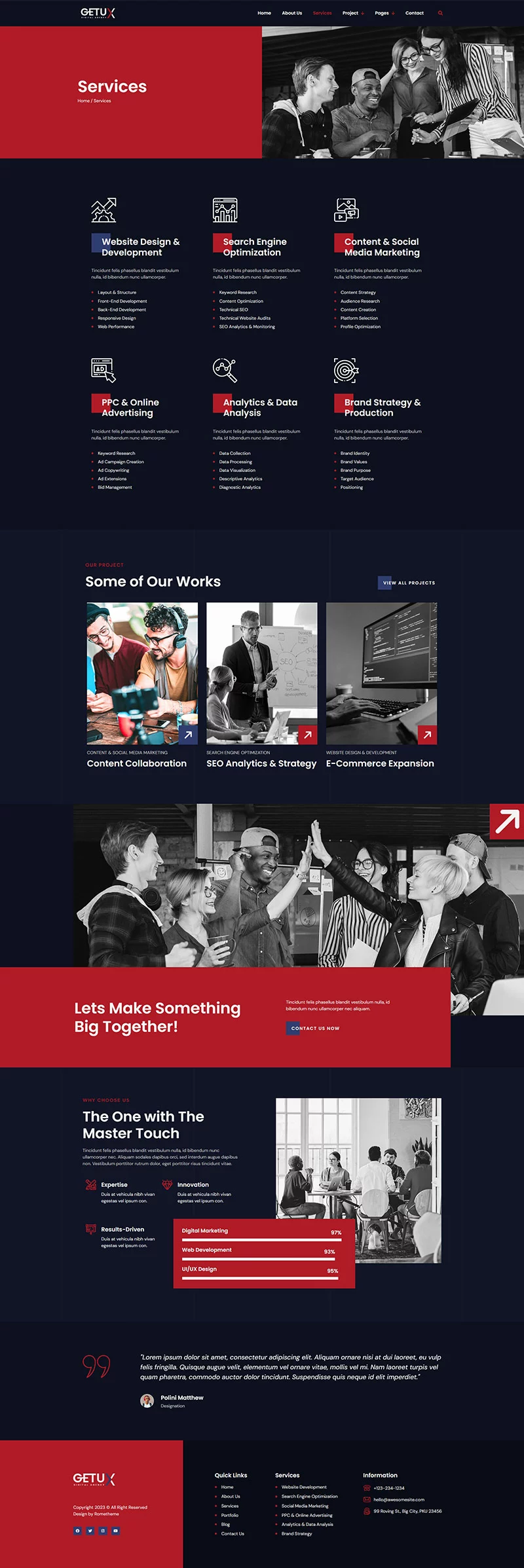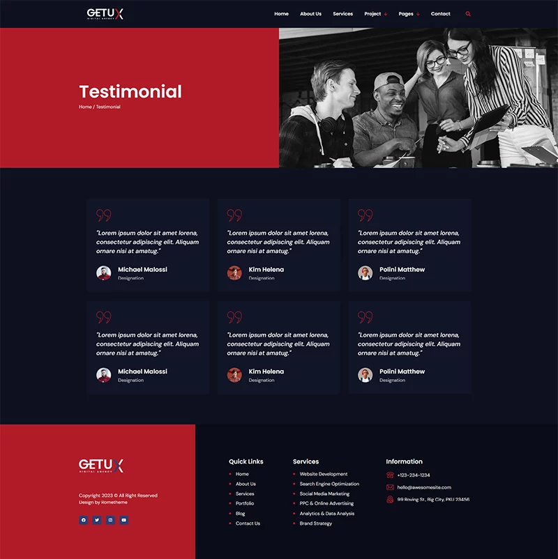 کیت قالب المنتور آژانس دیجیتال مدرن Getux حاوی محتوای صفحه برای ایجاد صفحات المنتور است. این کیت برای استفاده با تم رایگان “Hello Elementor” بهینهسازی شده است.
