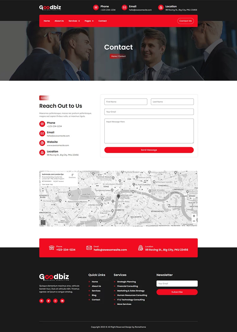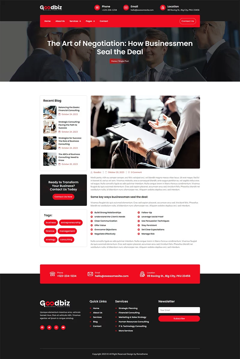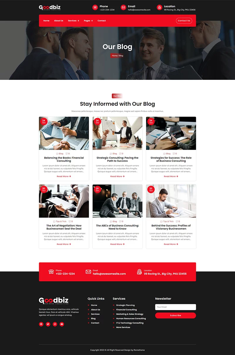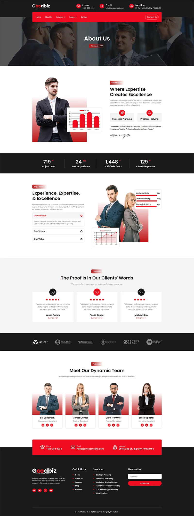 کیت قالب المنتور مشاوره کسب و کار Goodbiz با انتخابی ایدهآل از قالبها برای کسب و کار، خدمات مشاوره، مشاور، مالی، شرکتی، مشاوران مالی، حسابداران، بروکرهای بیمه، آژانس دیجیتال و هر چیزی که به کسب و کارهای دیگر مربوط میشود، ارائه شده است.