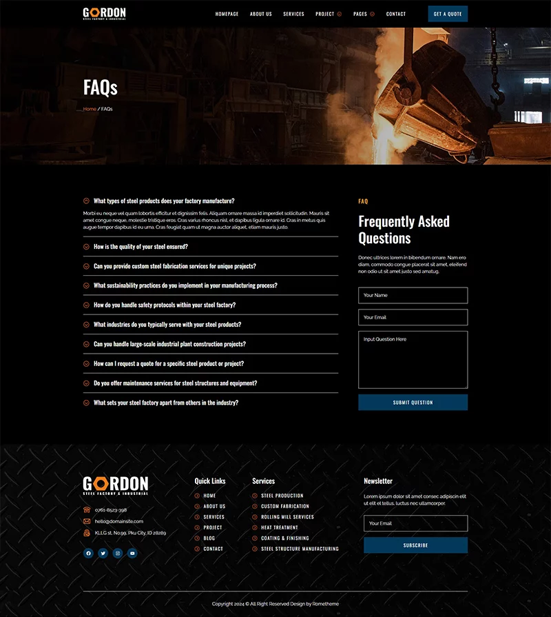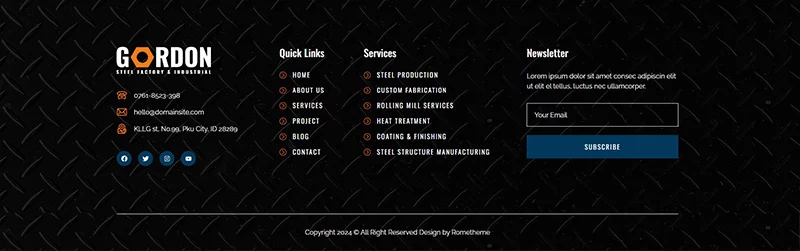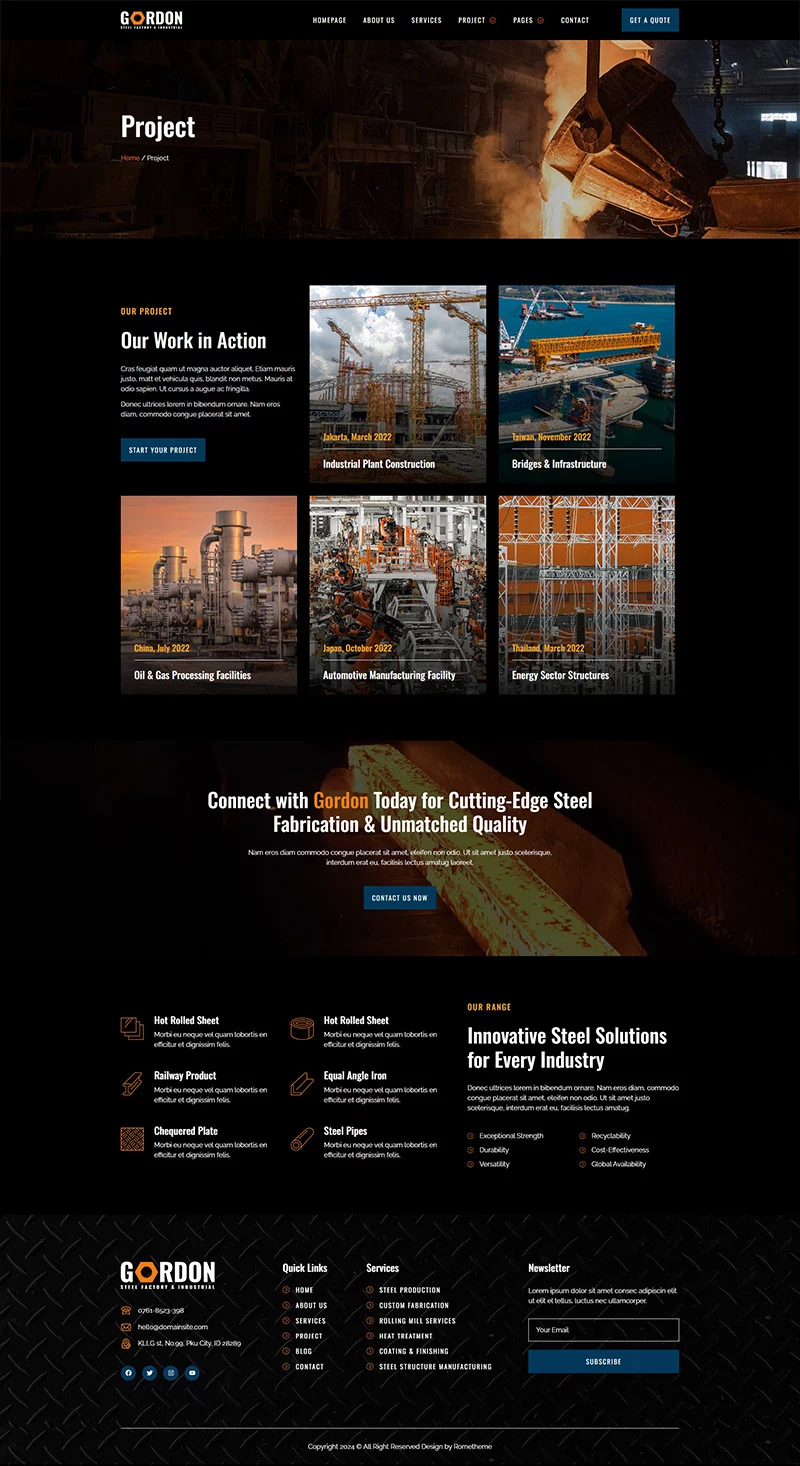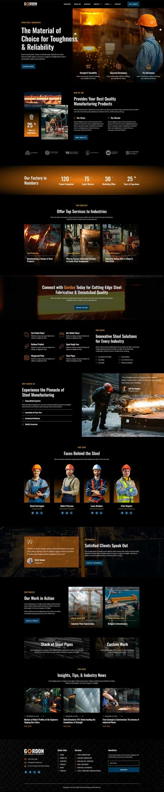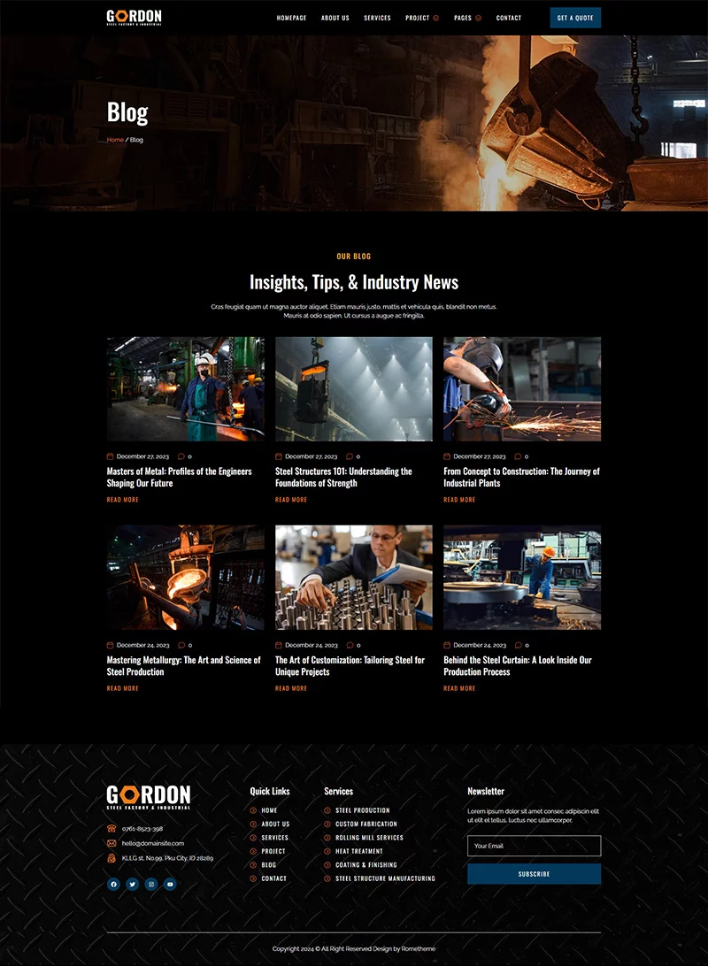 کیت قالب المنتور کارخانه فولاد و تولید صنعتی Gordon، مجموعهای ایدهآل از قالبها را برای کارخانههای تولید، توسعه کارخانهها، دفاتر مهندسی، شرکتهای ساختمانی و کسبوکارهای صنعتی فراهم میکند. این کیت دارای طراحی مدرن و منحصر به فرد با یک چیدمان کاملاً واکنشگرا است که به سادگی نصب شده و بسیار آسان برای سفارشیسازی است زیرا با استفاده از المنتور، نیازی به نوشتن حتی یک خط کد ندارید!
