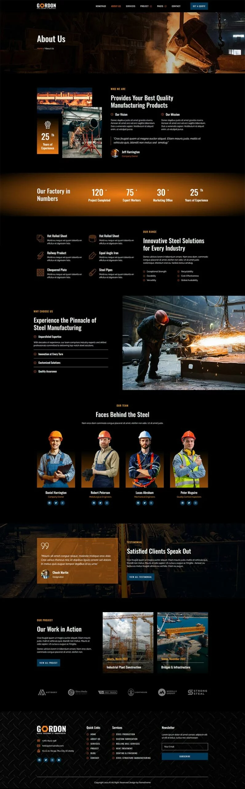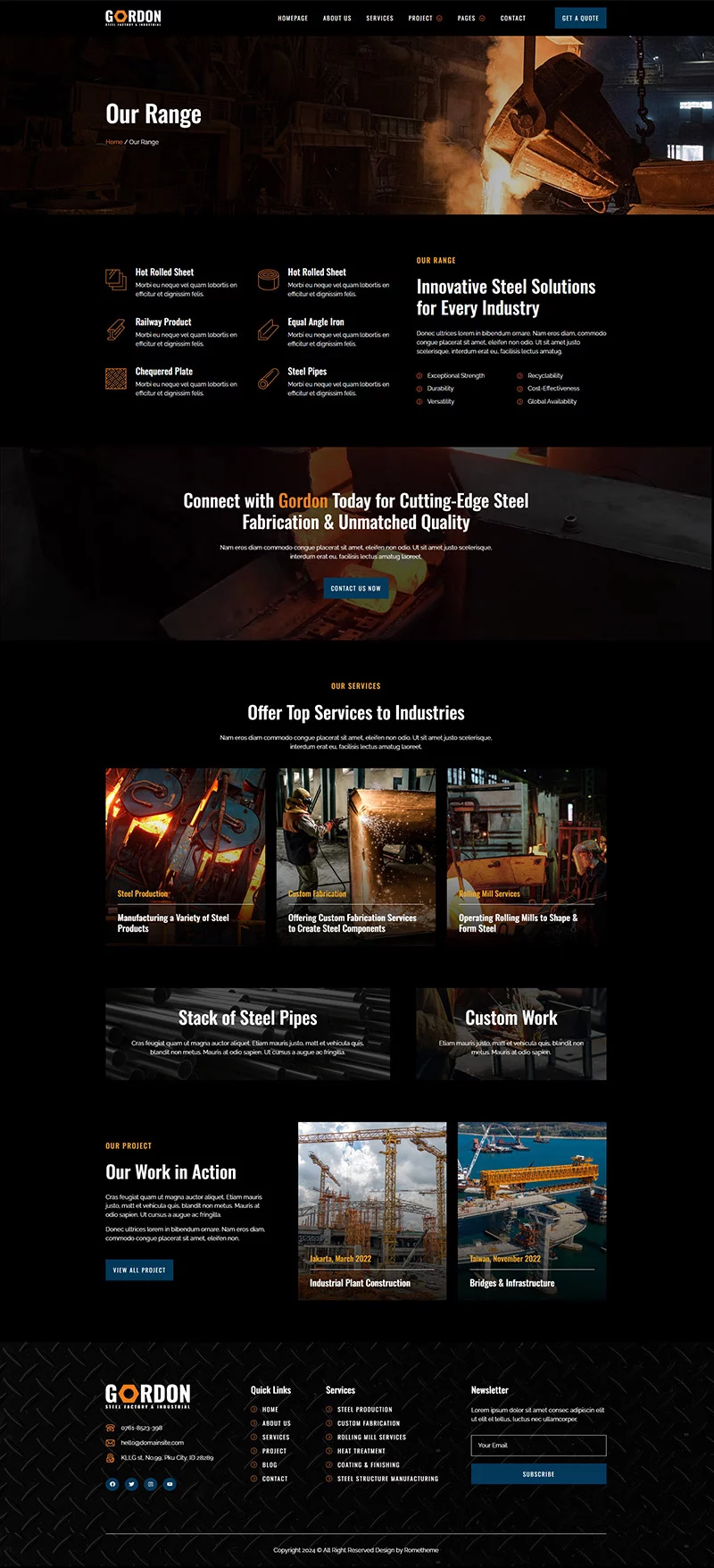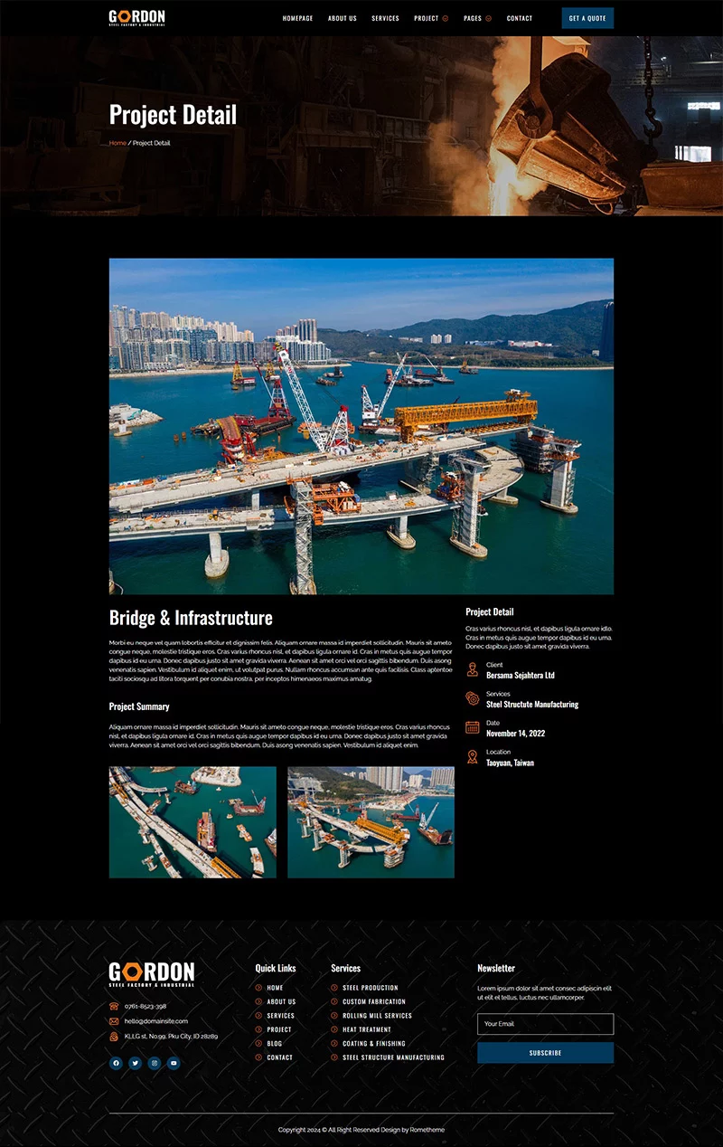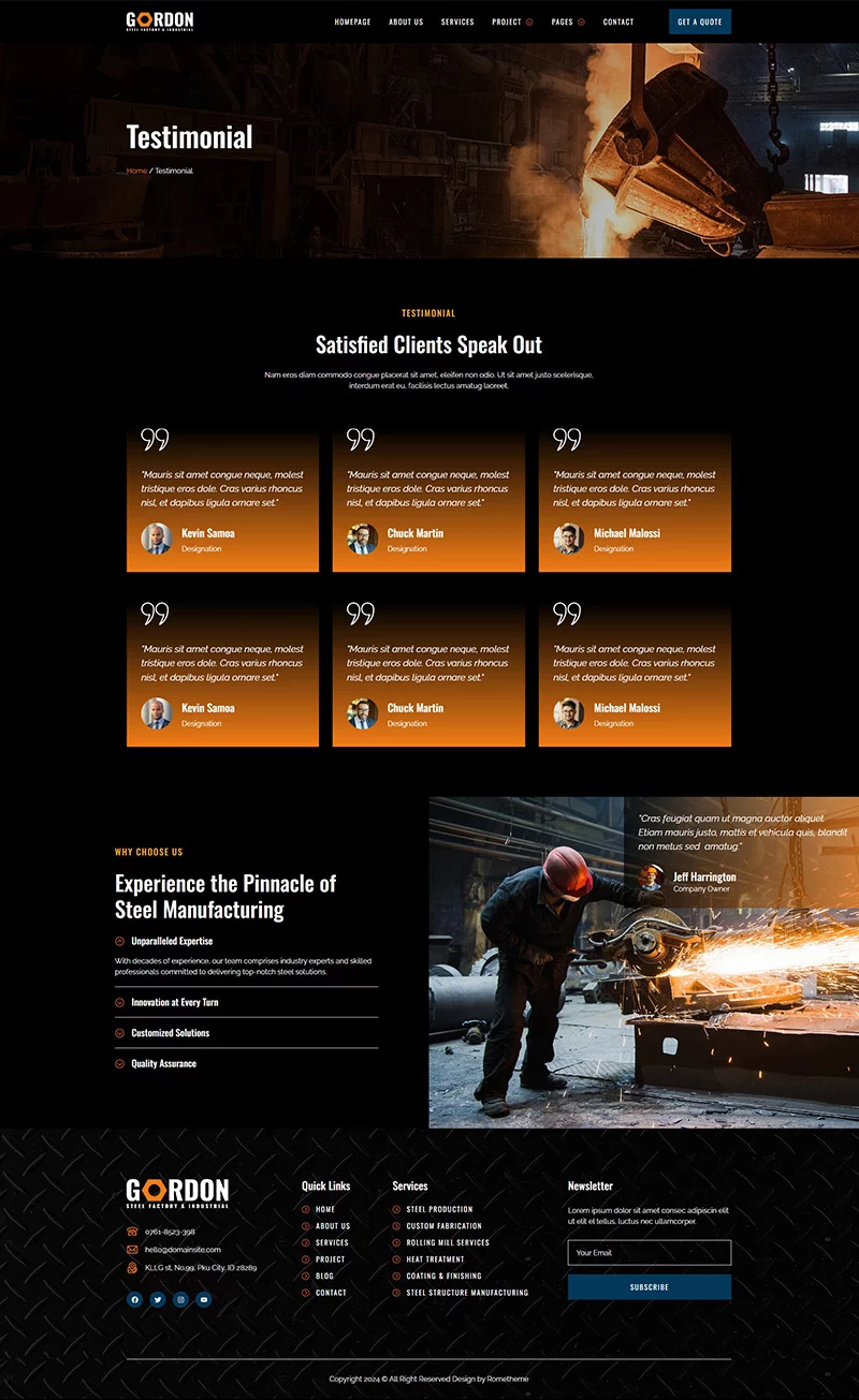 کیت قالب المنتور کارخانه فولاد و تولید صنعتی Gordon، مجموعهای ایدهآل از قالبها را برای کارخانههای تولید، توسعه کارخانهها، دفاتر مهندسی، شرکتهای ساختمانی و کسبوکارهای صنعتی فراهم میکند. این کیت دارای طراحی مدرن و منحصر به فرد با یک چیدمان کاملاً واکنشگرا است که به سادگی نصب شده و بسیار آسان برای سفارشیسازی است زیرا با استفاده از المنتور، نیازی به نوشتن حتی یک خط کد ندارید!