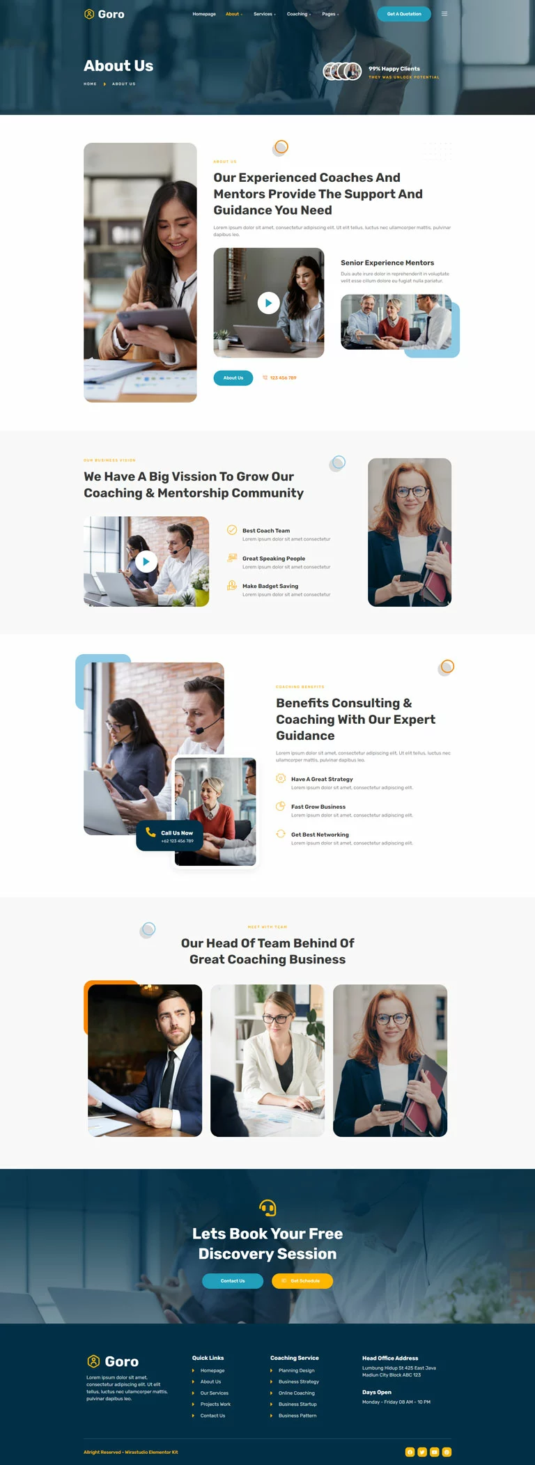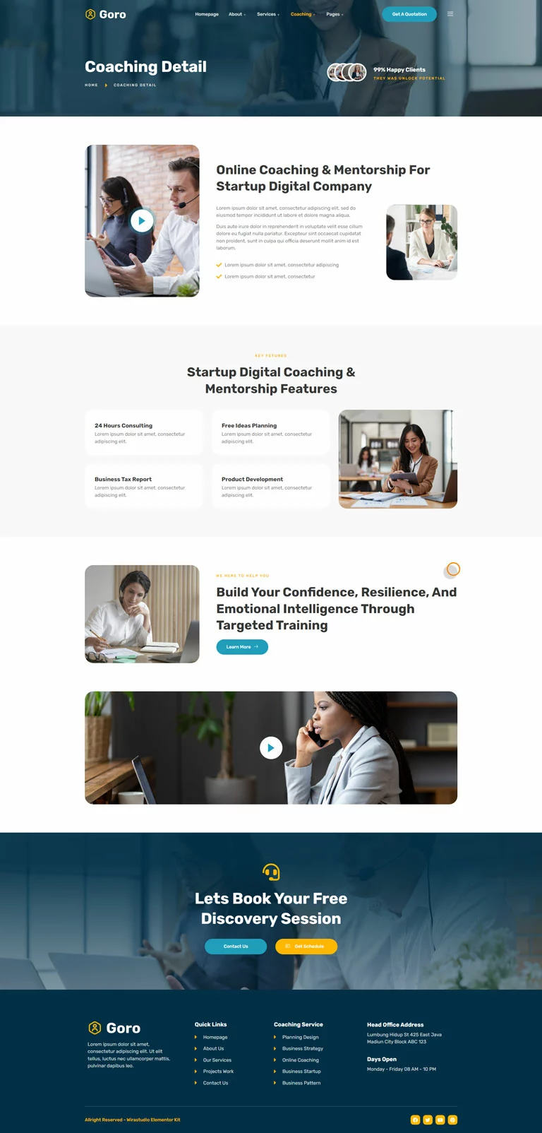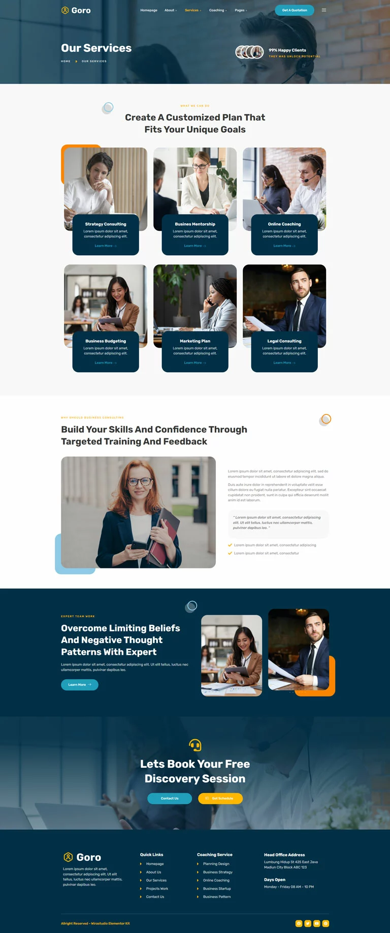 با قابلیت سفارشیسازی آسان و بدون نیاز به کدنویسی، کیت قالب المنتور مشاوره آنلاین Goro انتخابی عالی برای ایجاد یک حضور آنلاین حرفهای برای کسبوکار مشاوره و منتورینگ شما است.