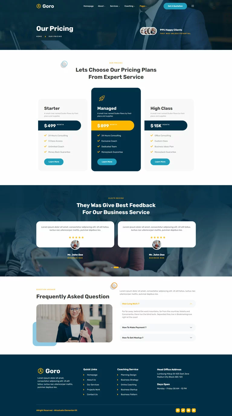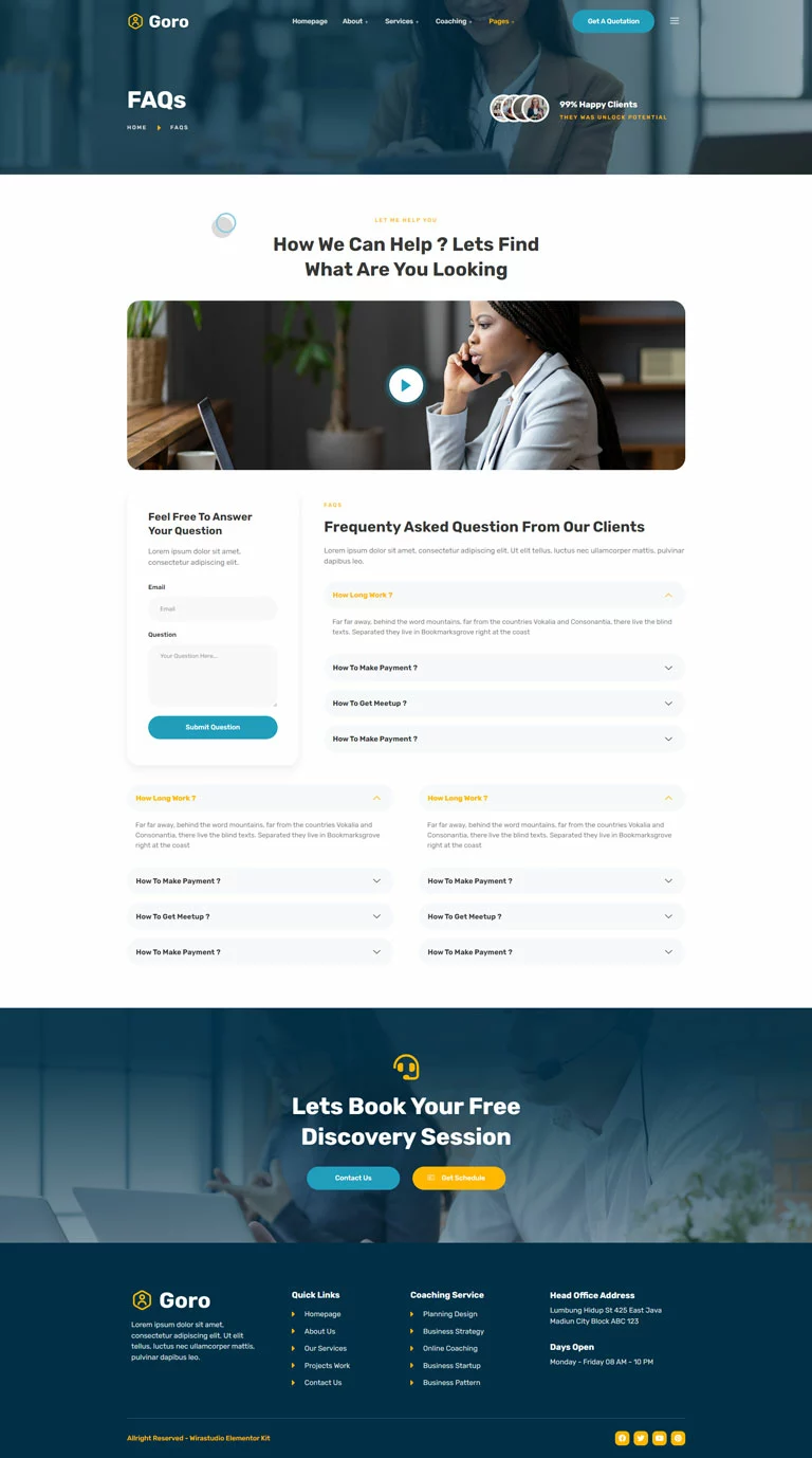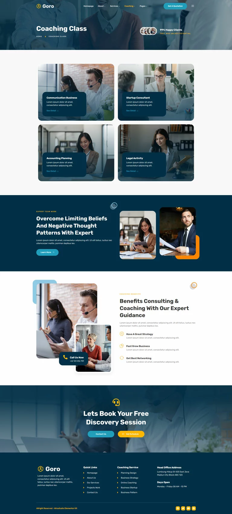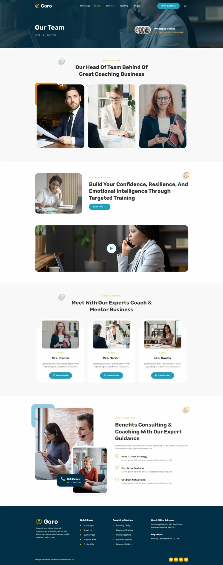 با قابلیت سفارشیسازی آسان و بدون نیاز به کدنویسی، کیت قالب المنتور مشاوره آنلاین Goro انتخابی عالی برای ایجاد یک حضور آنلاین حرفهای برای کسبوکار مشاوره و منتورینگ شما است.