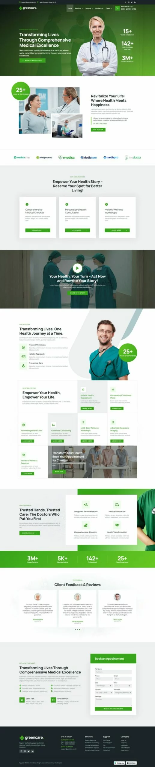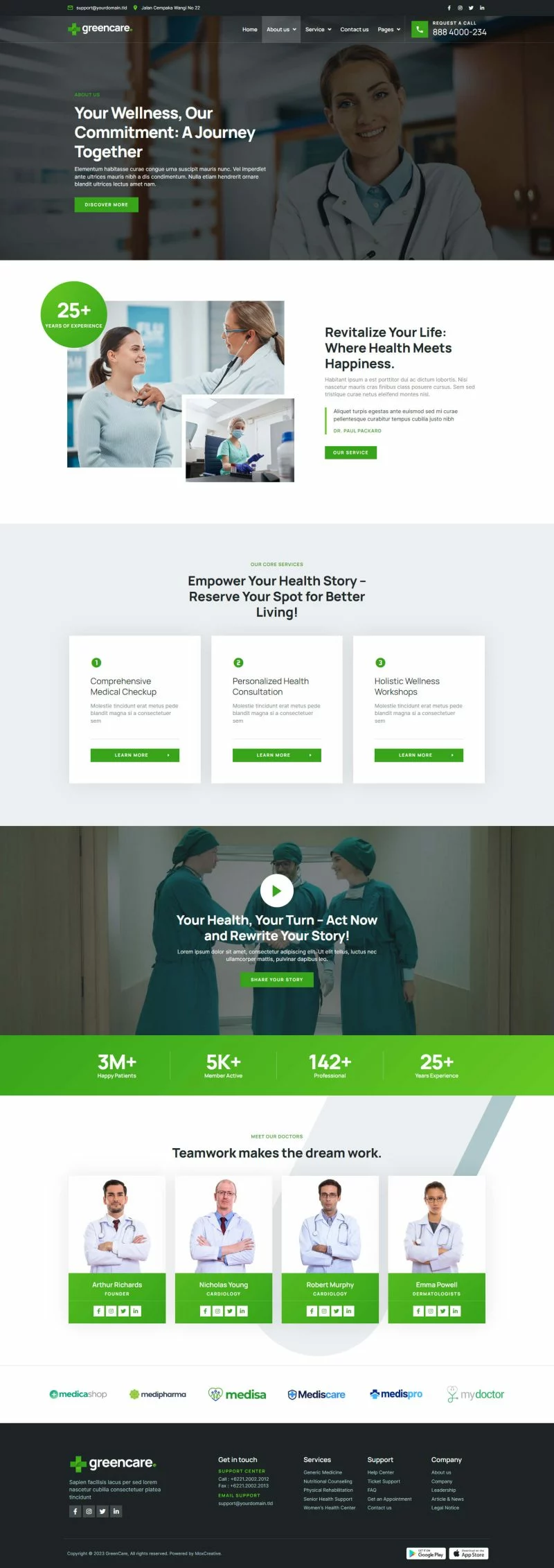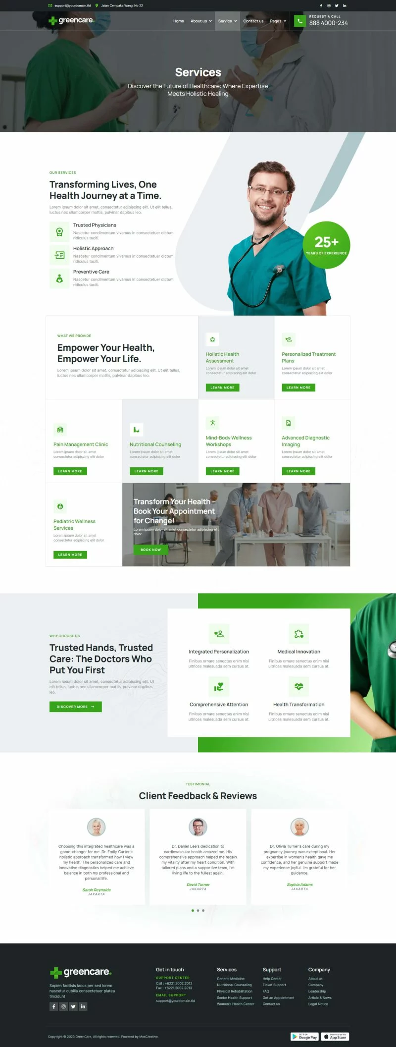 کیت قالب المنتور خدمات پزشکی GreenCare دارای بیش از 12 قالب از پیش ساخته شده با طراحی مدرن و چیدمان حرفهای است. شما میتوانید به راحتی از این کیت خلاقانه برای هر نوع وبسایت مرتبط با مراقبتهای پزشکی و شرکتهای پزشکی استفاده کنید.
