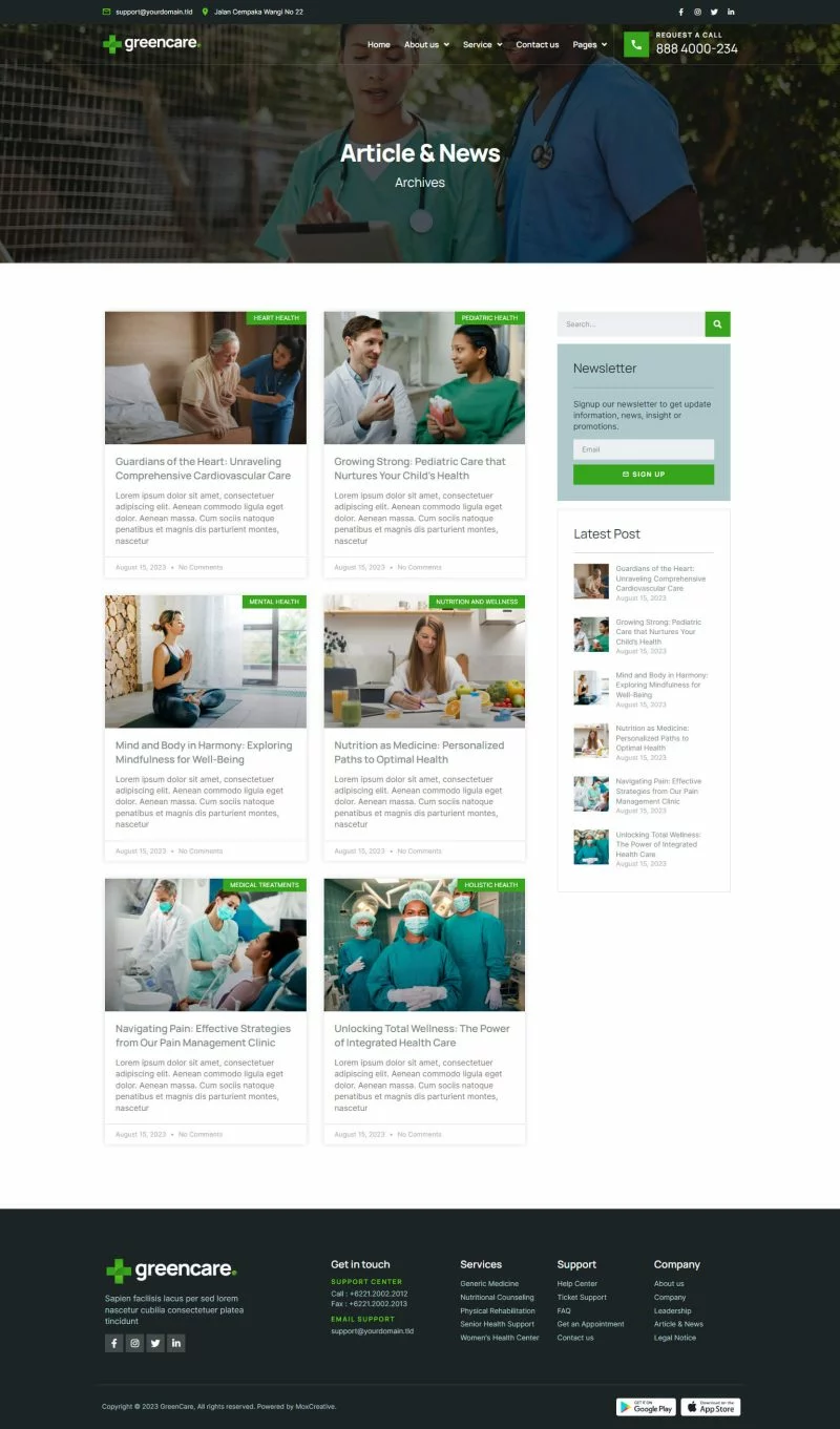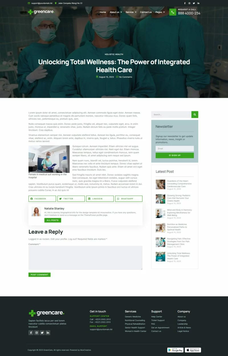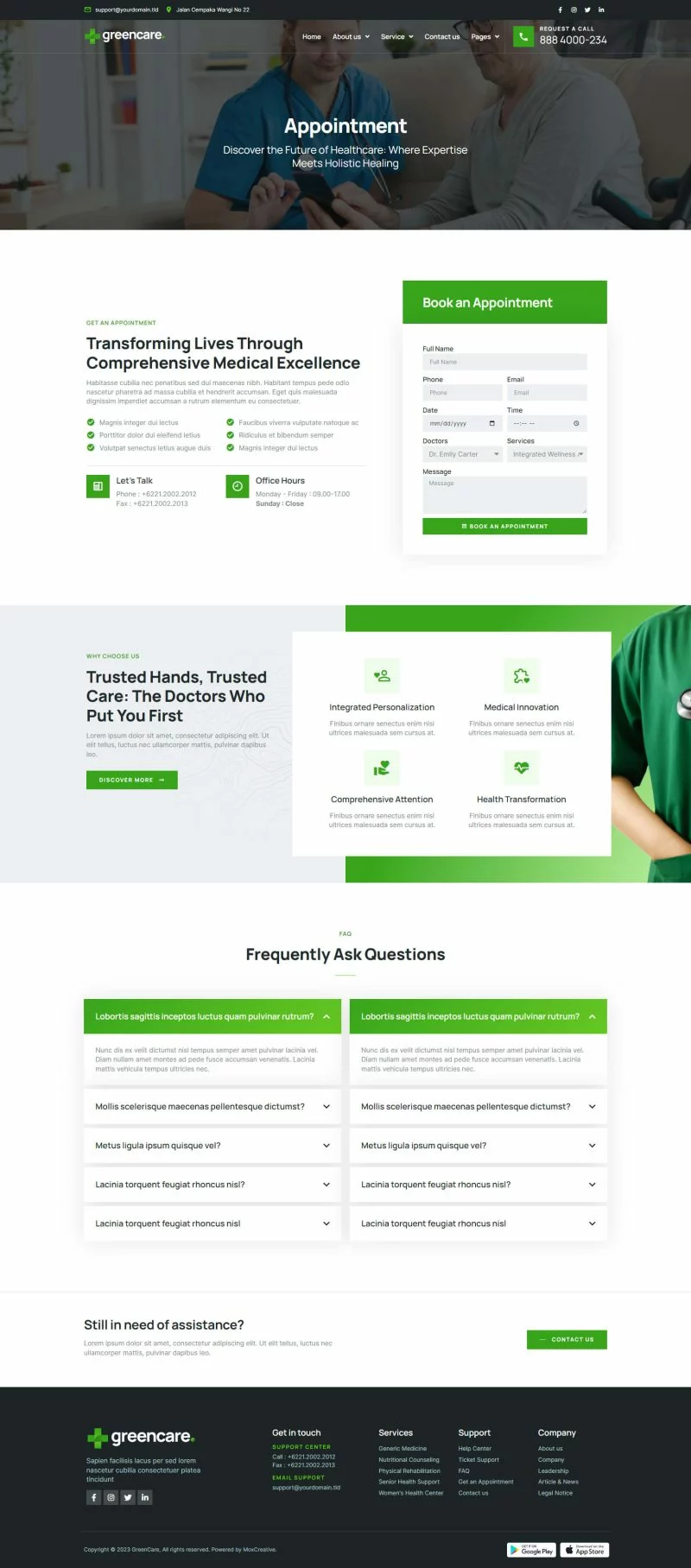 کیت قالب المنتور خدمات پزشکی GreenCare دارای بیش از 12 قالب از پیش ساخته شده با طراحی مدرن و چیدمان حرفهای است. شما میتوانید به راحتی از این کیت خلاقانه برای هر نوع وبسایت مرتبط با مراقبتهای پزشکی و شرکتهای پزشکی استفاده کنید.