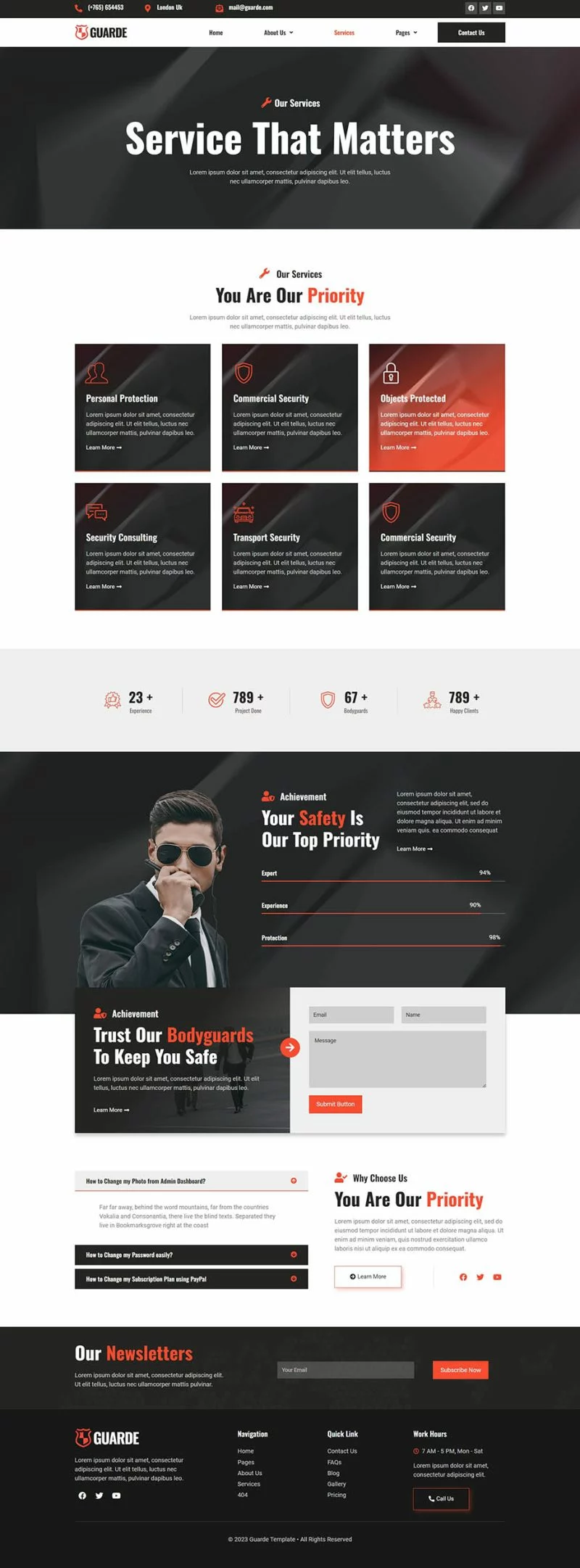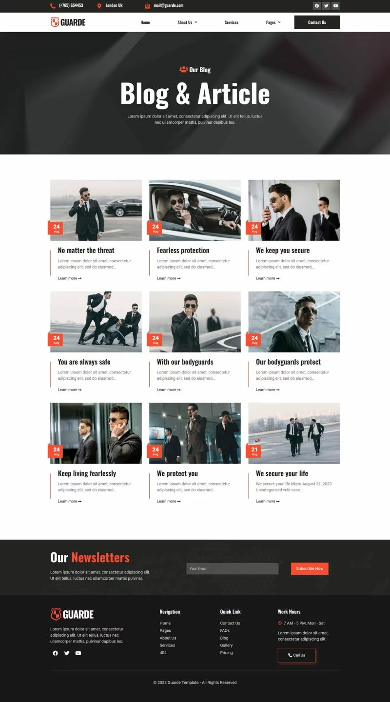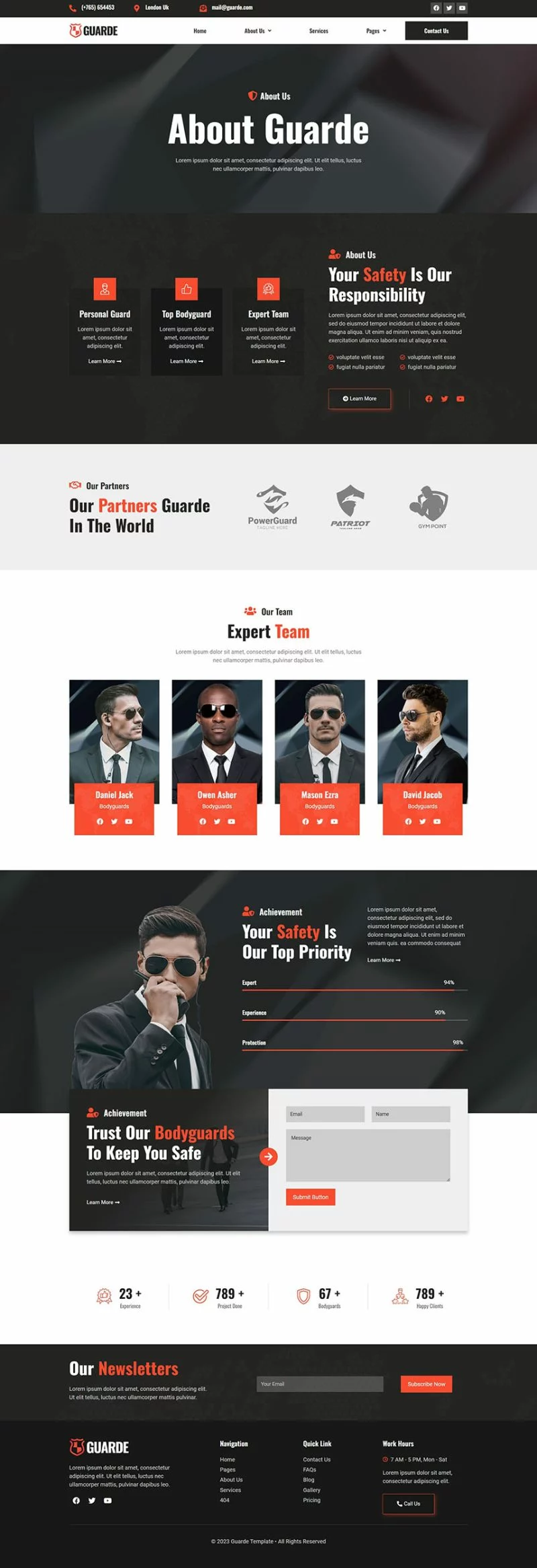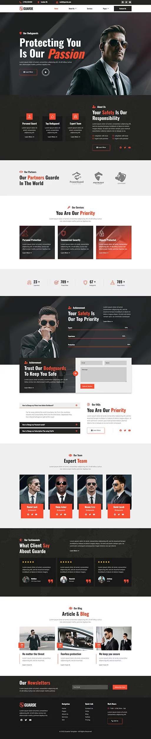 توضیحات بیشتر درباره کیت قالب المنتور آژانس بادیگارد و امنیت Guarde