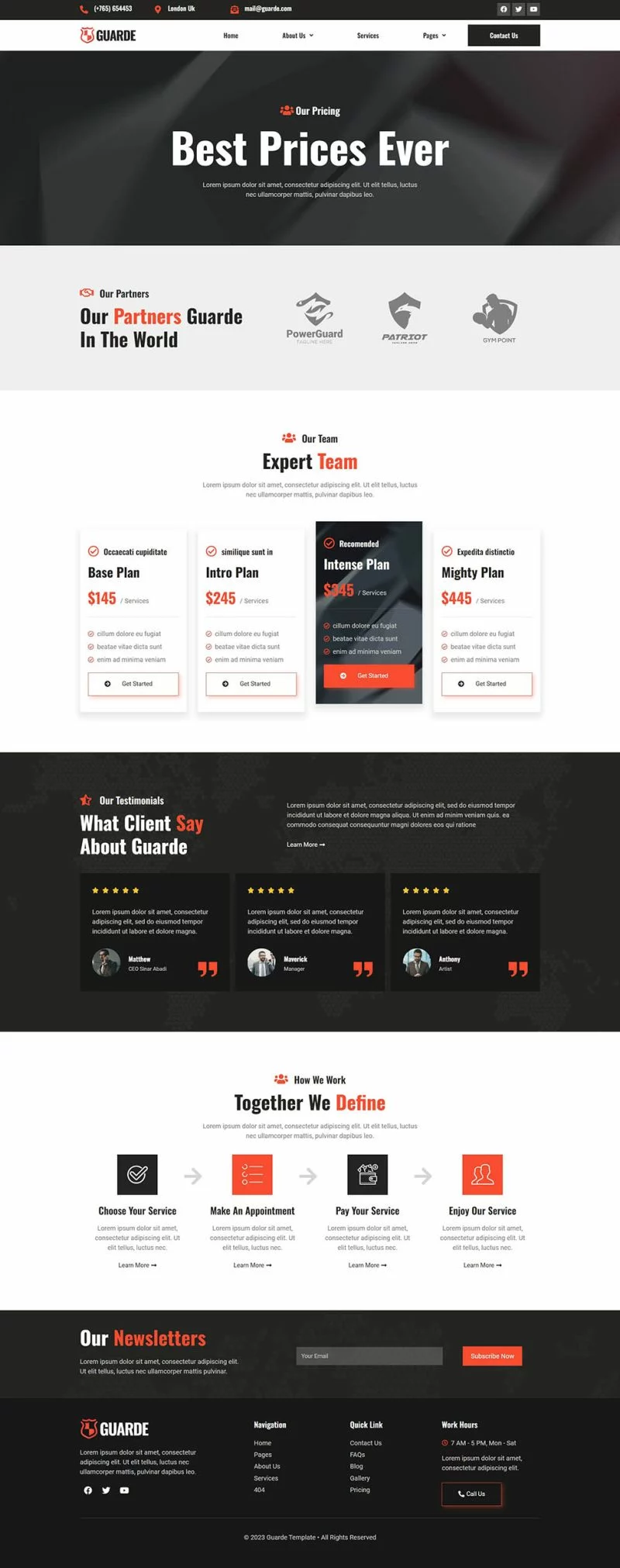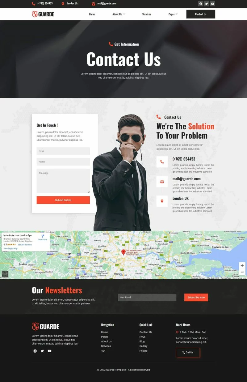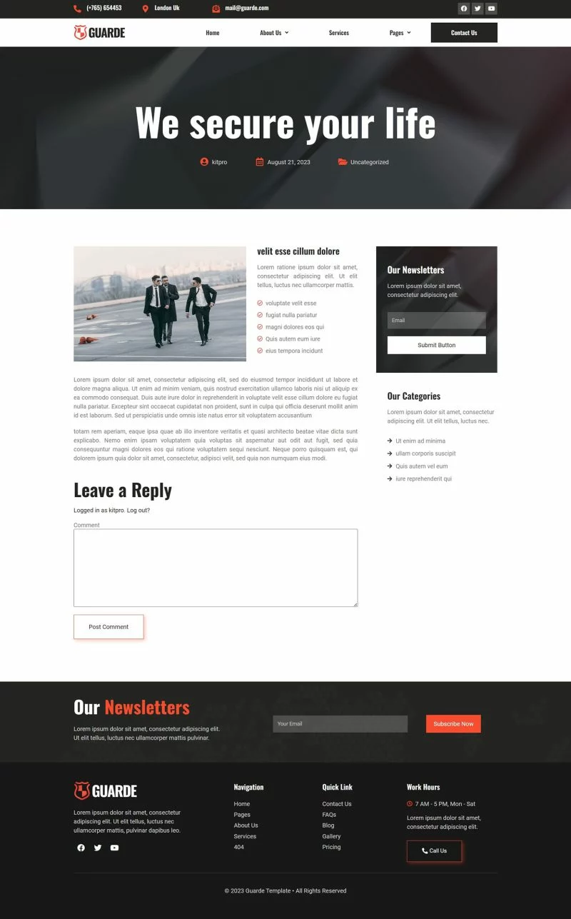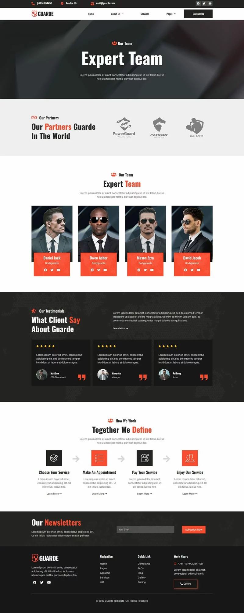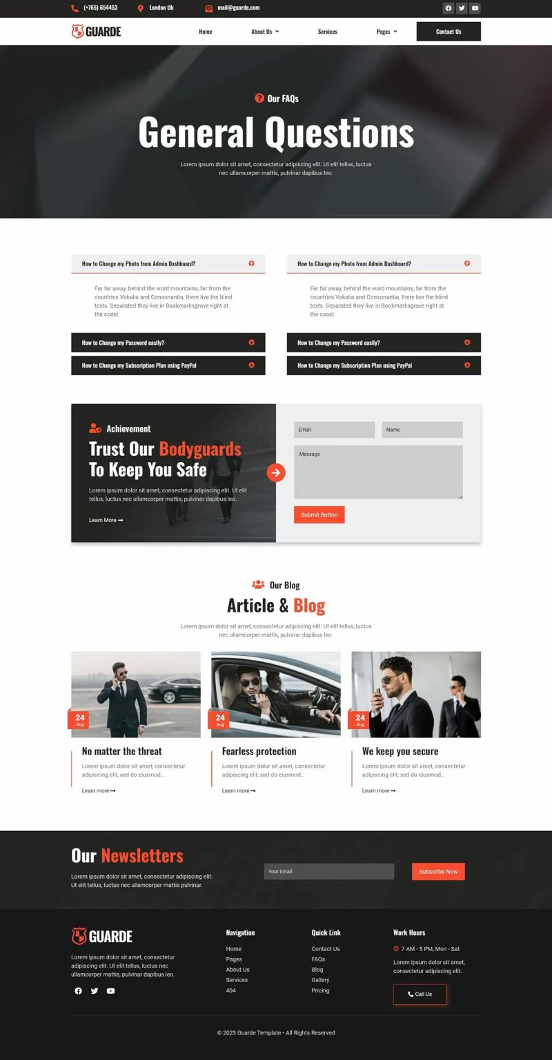 توضیحات بیشتر درباره کیت قالب المنتور آژانس بادیگارد و امنیت Guarde