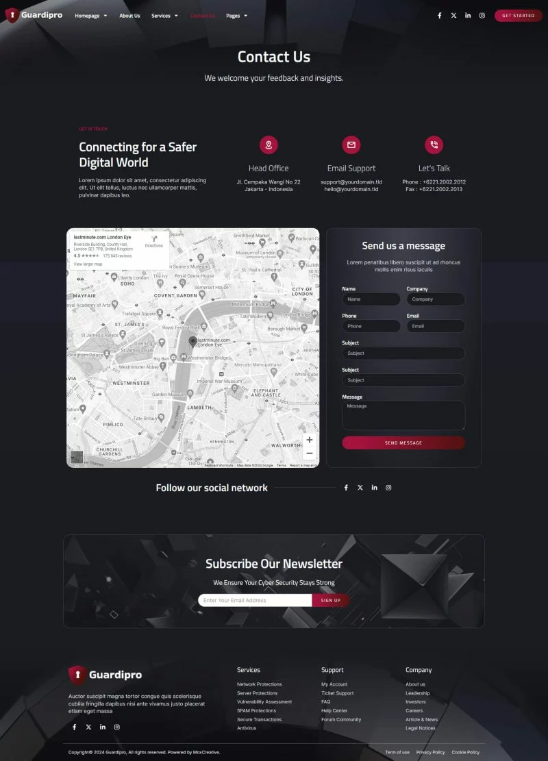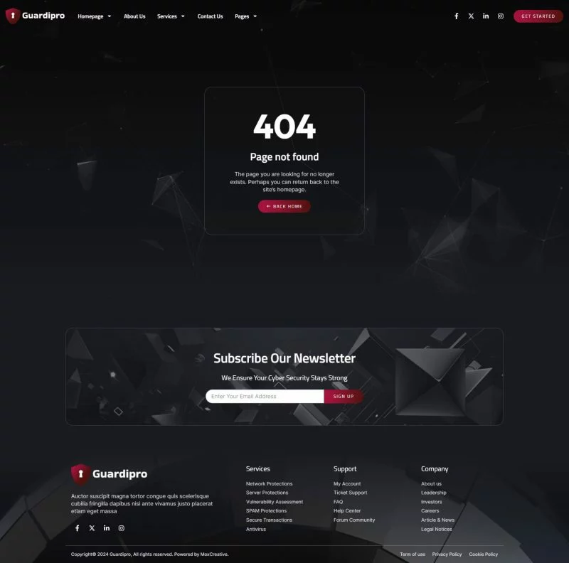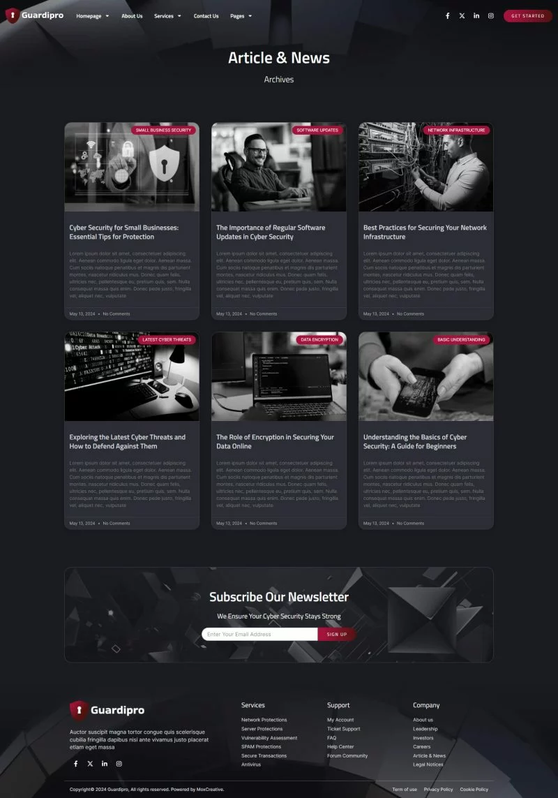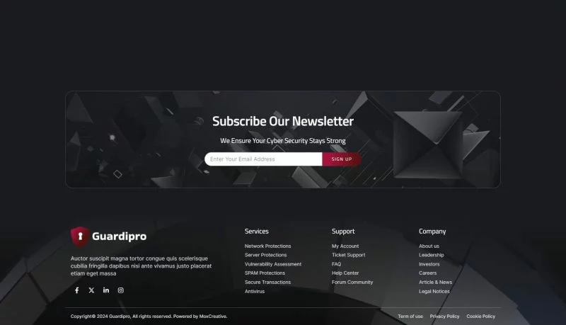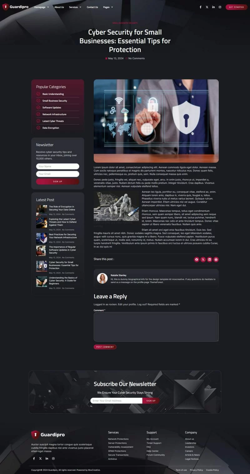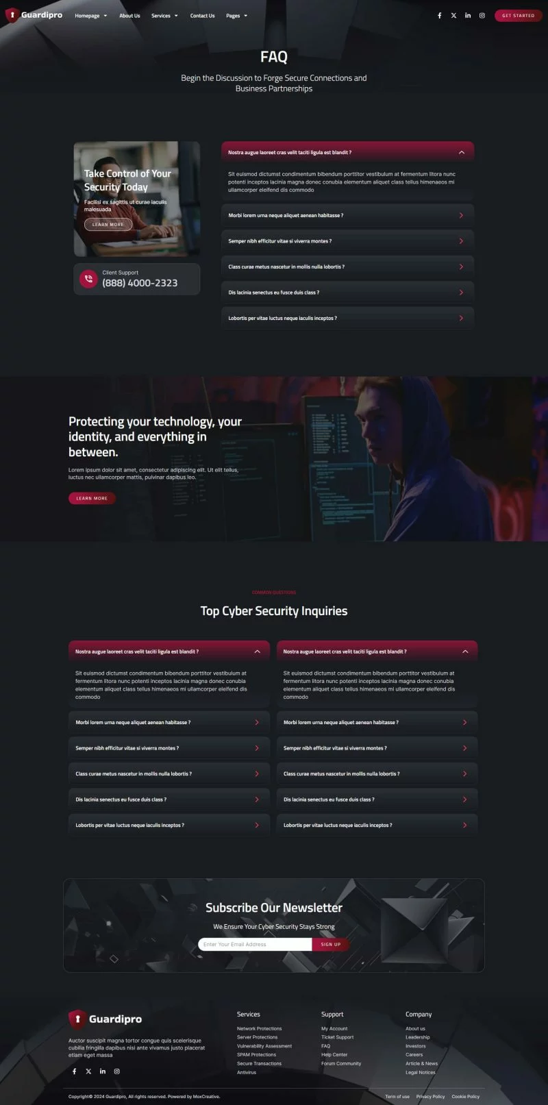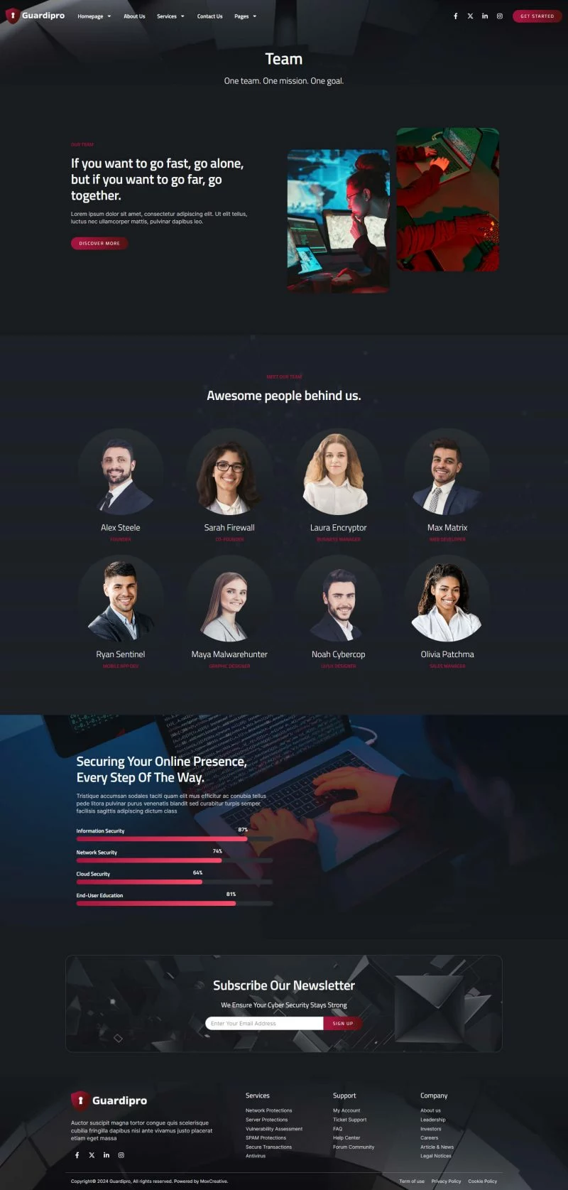 کیت قالب المنتور خدمات امنیت سایبری GuardianPro با طراحی مدرن و سبک منحصربهفرد، مناسب برای هر کسبوکاری است که در زمینه فناوری سایبری و خدمات امنیتی فعالیت میکند. با استفاده از این کیت قالب، میتوانید به راحتی و بدون نیاز به کدنویسی، وبسایتی حرفهای برای شرکتهای ارائهدهنده خدمات امنیت سایبری ایجاد کنید.