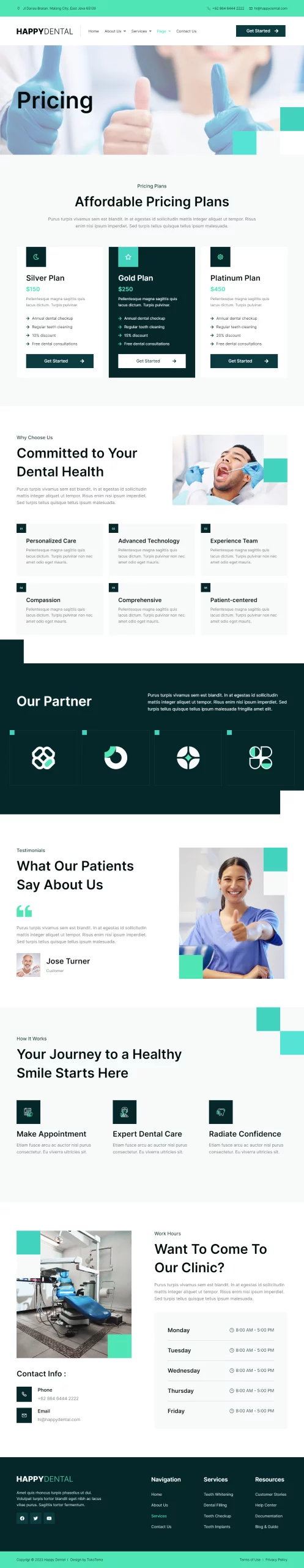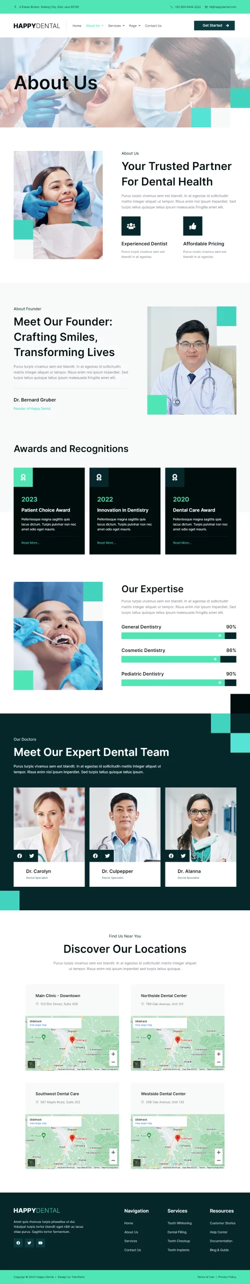 کیت قالب المنتور خدمات دندانپزشکی Happy Dental برای دندانپزشکان، کلینیکها و آزمایشگاههای دندانپزشکی طراحی شده است. این کیت راهی آسان برای ایجاد یک وبسایت حرفهای با استفاده از وردپرس و المنتور ارائه میدهد. این کیت شامل قالبهای از پیش طراحی شده برای بخشهای خاص وبسایت شما است که به شما امکان میدهد بخشها را ترکیب و تطبیق دهید و هر قسمت را به دلخواه خود سفارشی کنید. این انعطافپذیری و سهولت استفاده، آن را به یک انتخاب عالی برای کسانی که میخواهند یک وبسایت منحصر به فرد و جذاب بدون پیچیدگیهای قالبهای سنتی ایجاد کنند، تبدیل کرده است.
