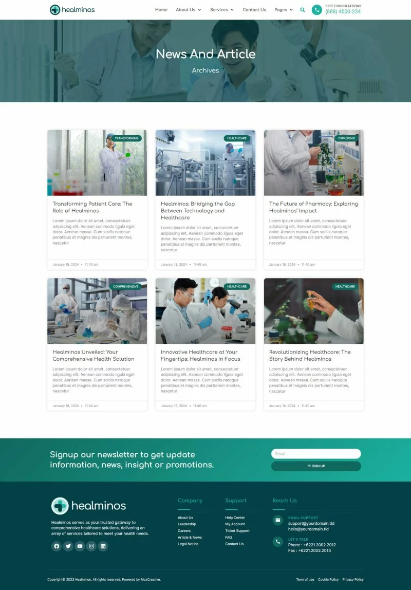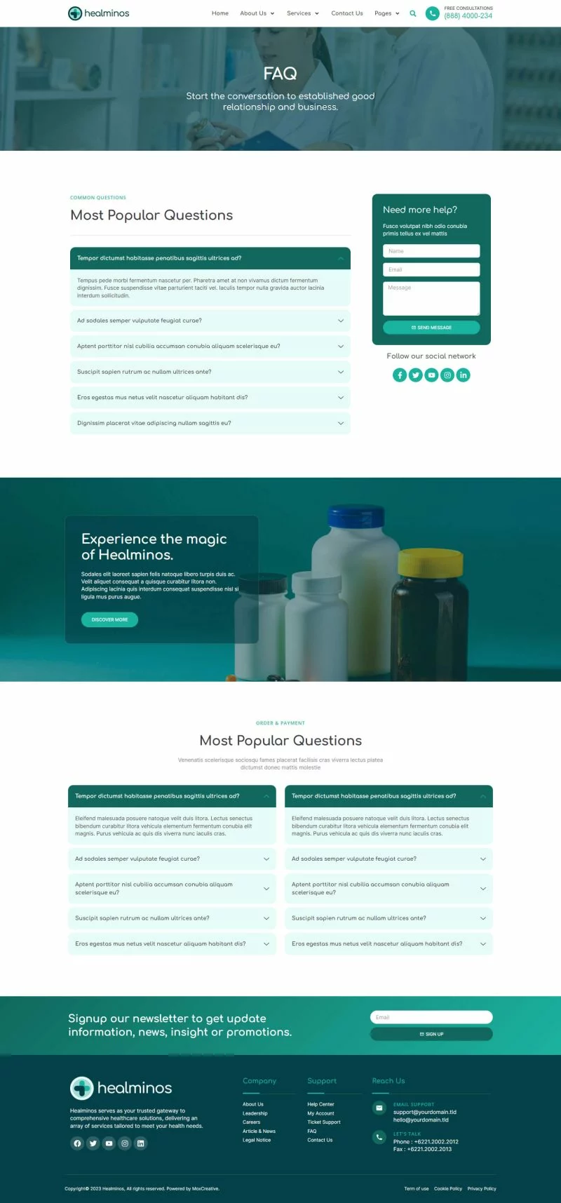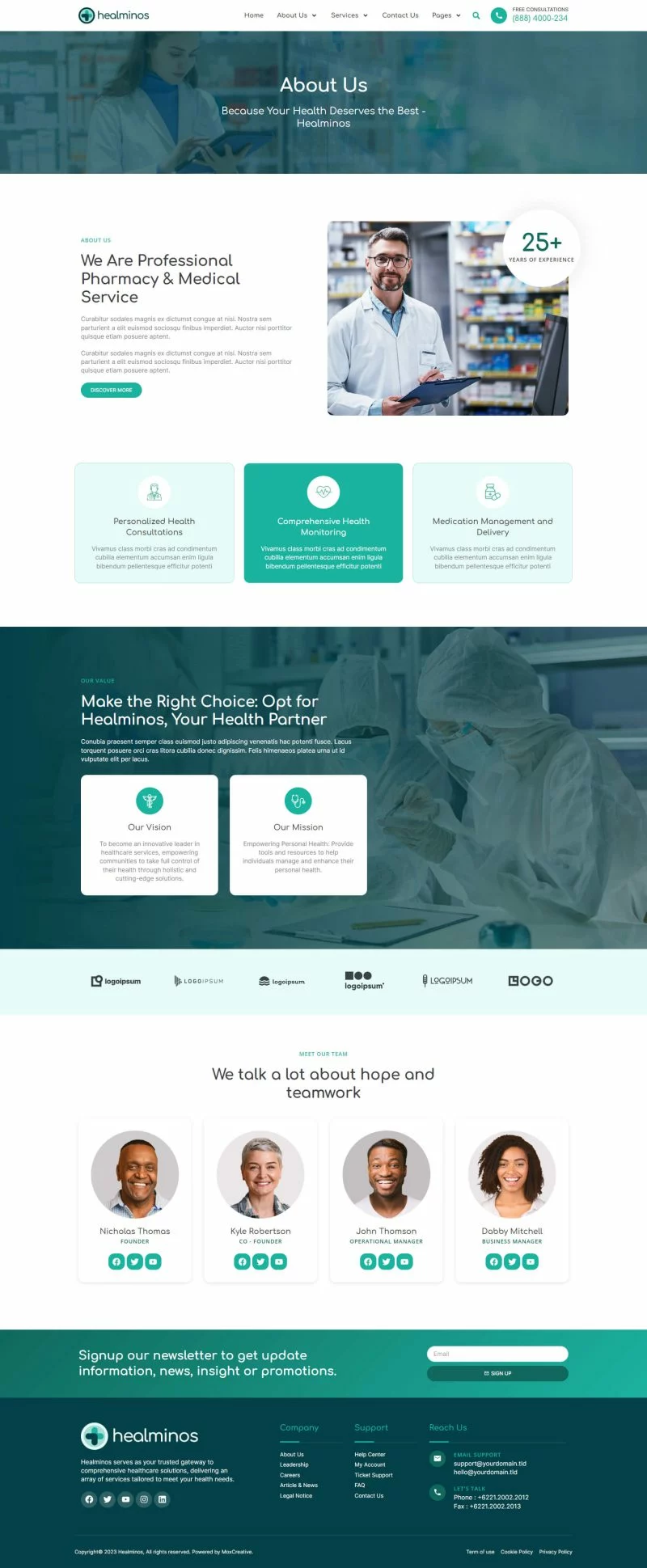 کیت قالب المنتور خدمات دارویی و پزشکی Healminos دارای طرحبندی مدرن با سبک ساده، حرفهای و تمیز است. مناسب برای هر کسب و کاری مرتبط با پزشکی و داروخانه. شما میتوانید بهراحتی وبسایت خدمات پزشکی، وبسایت داروسازی، کلینیک پزشکی، مراقبتهای بهداشتی، مرکز پزشکی، فروشگاه داروخانه و تمامی کسبوکارها یا خدمات مرتبط با پزشکی را بسازید.