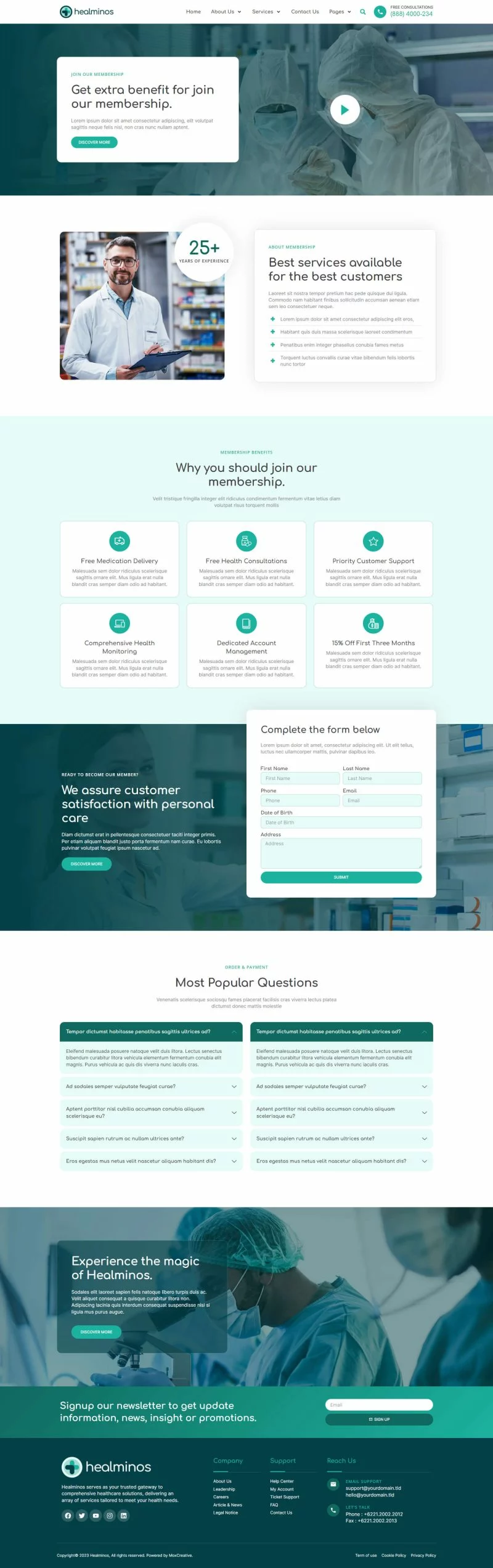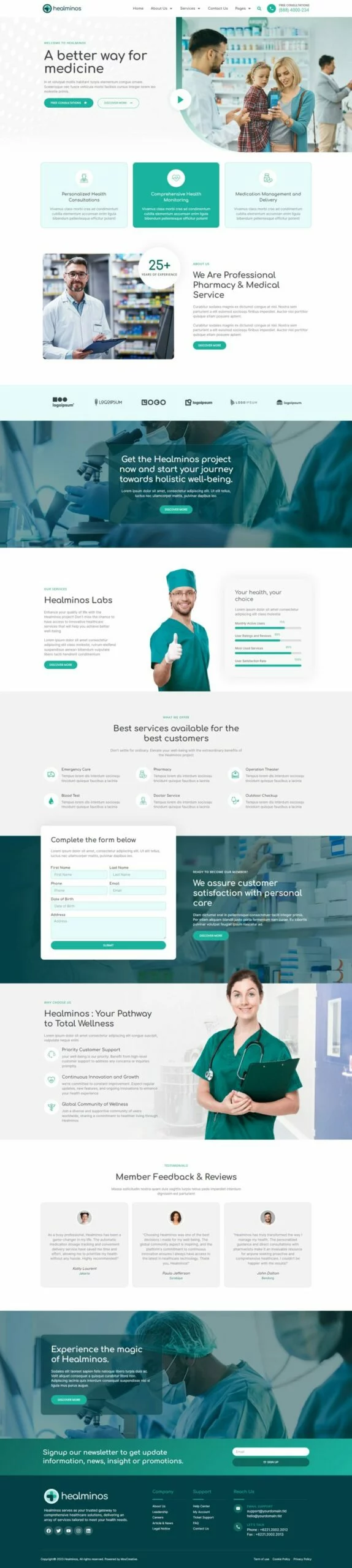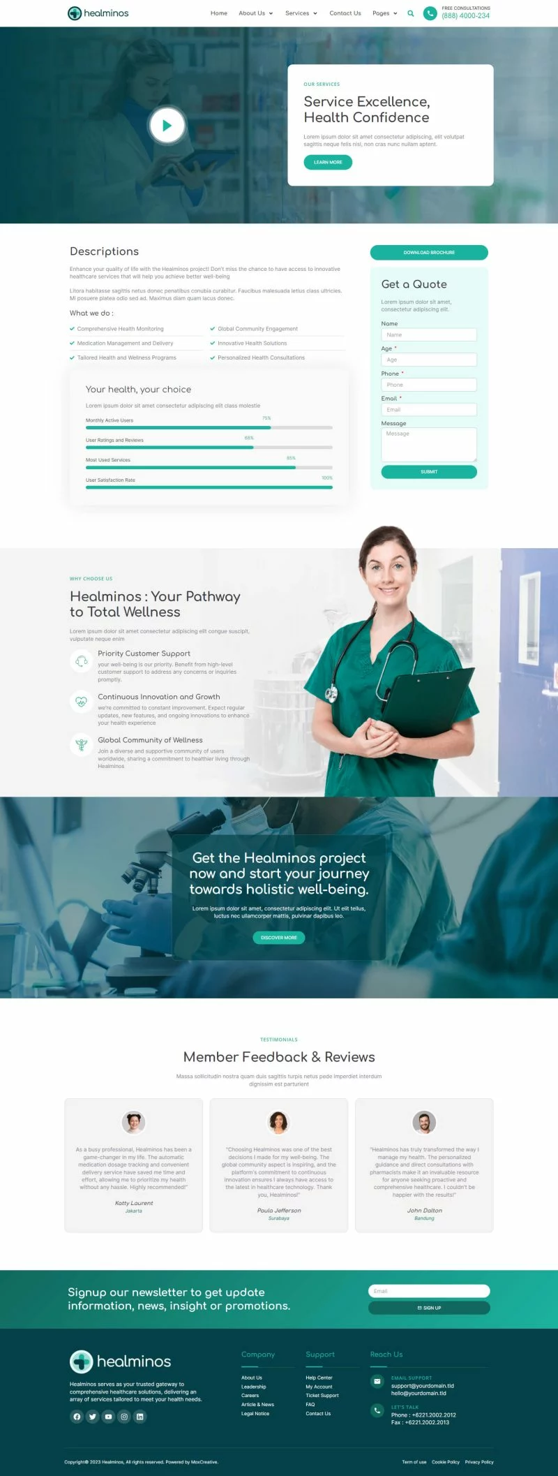 کیت قالب المنتور خدمات دارویی و پزشکی Healminos به شما این امکان را میدهد تا وبسایت خود را با طرحهای مدرن و حرفهای بهسرعت و بدون نیاز به کدنویسی بسازید. با استفاده از قابلیتهای کشیدن و رها کردن و سفارشیسازی آسان، میتوانید سایت خود را مطابق با نیازها و برند خود طراحی کنید.