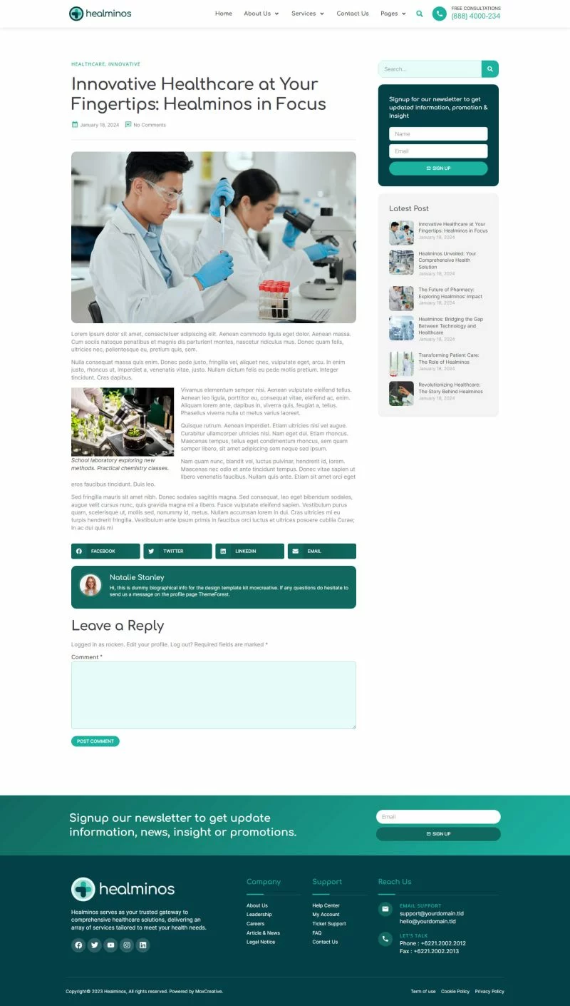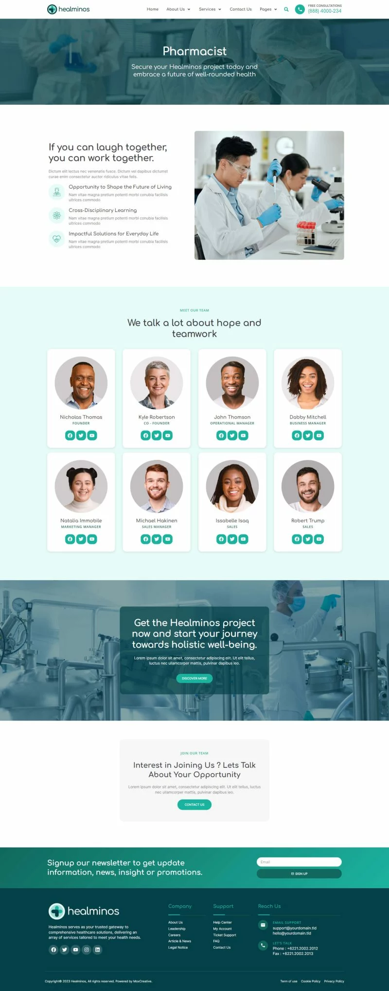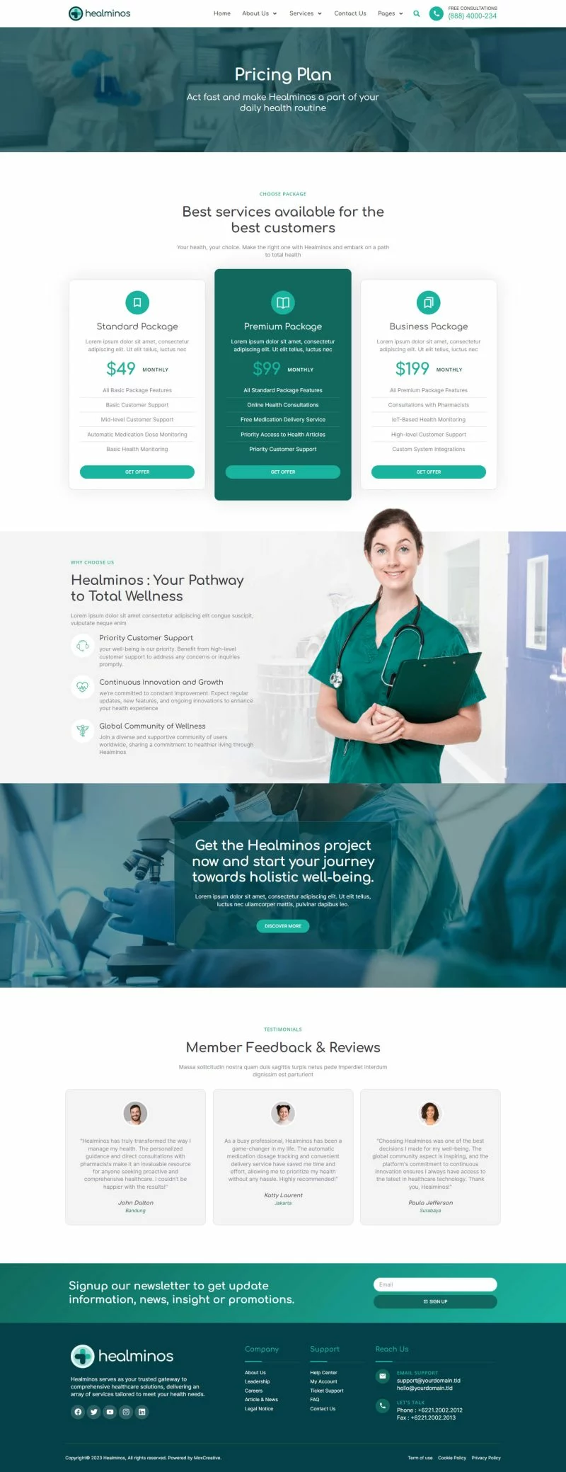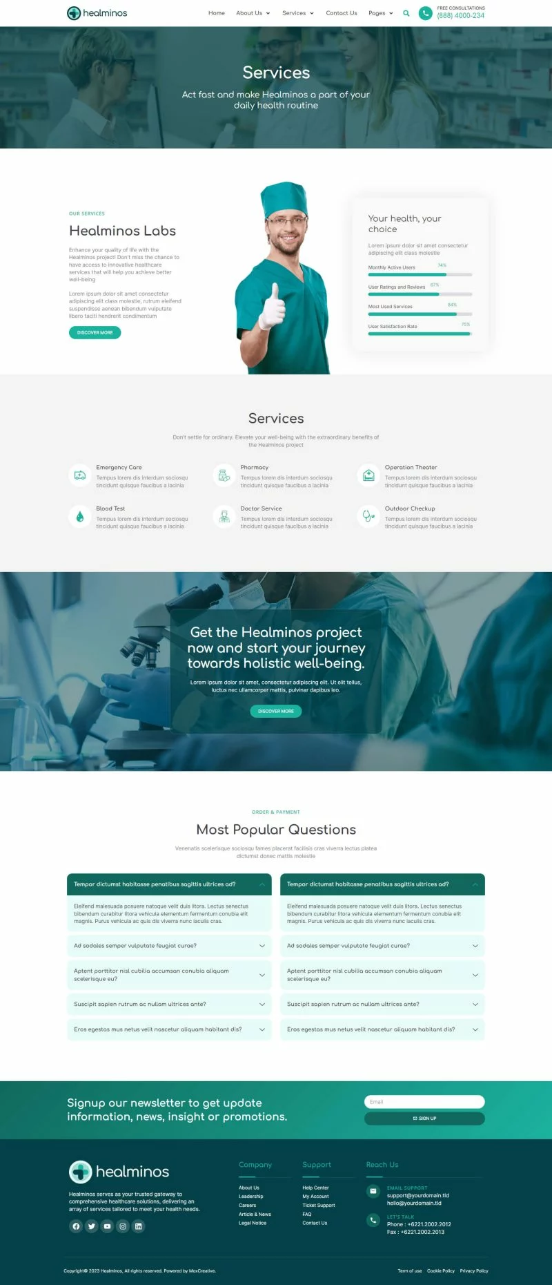 کیت قالب المنتور خدمات دارویی و پزشکی Healminos به شما این امکان را میدهد تا وبسایت خود را با طرحهای مدرن و حرفهای بهسرعت و بدون نیاز به کدنویسی بسازید. با استفاده از قابلیتهای کشیدن و رها کردن و سفارشیسازی آسان، میتوانید سایت خود را مطابق با نیازها و برند خود طراحی کنید.