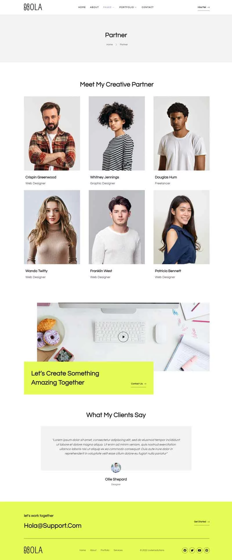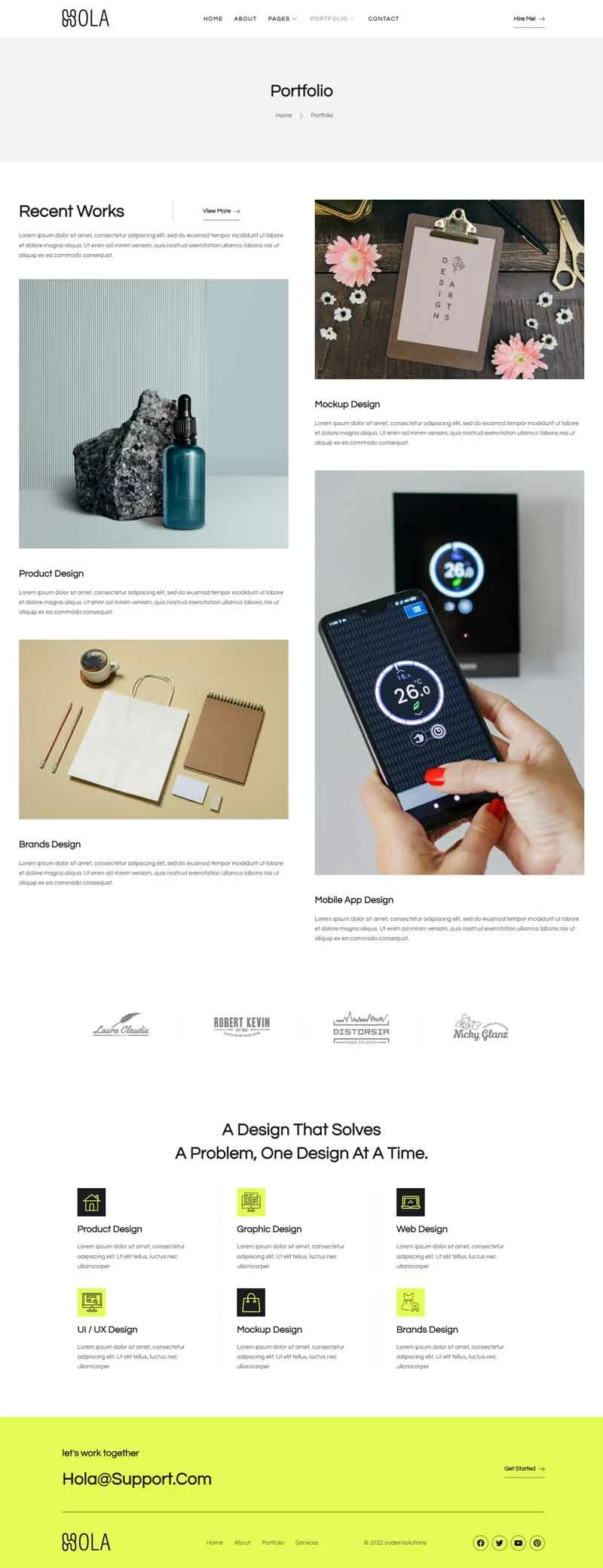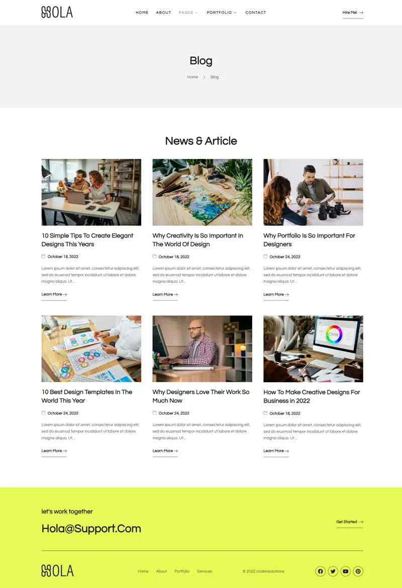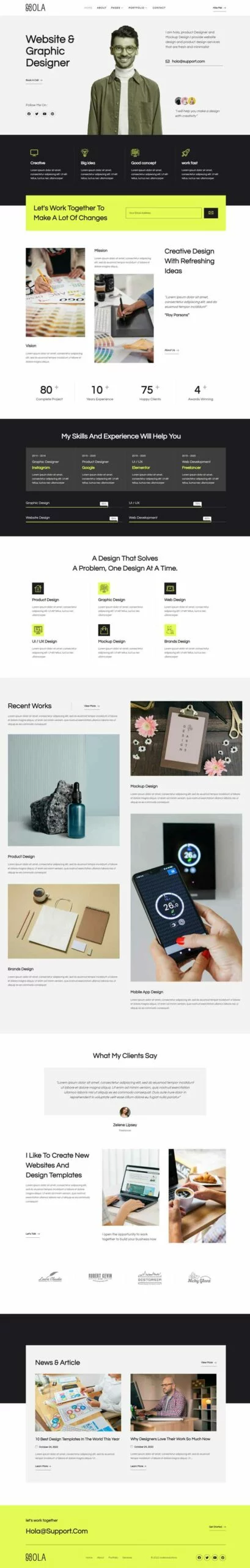 کیت قالب المنتور نمونه کار شخصی Hola شامل بیش از 15 قالب از پیش ساخته شده است که به شما این امکان را میدهد تا وبسایت شرکتی حرفهای خود را تنها با یک کلیک بسازید.