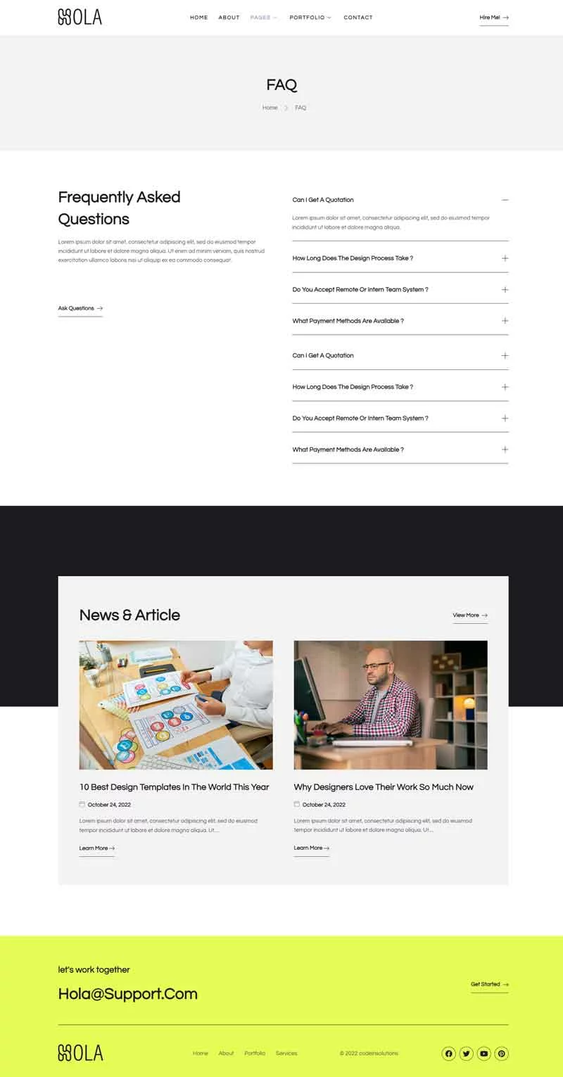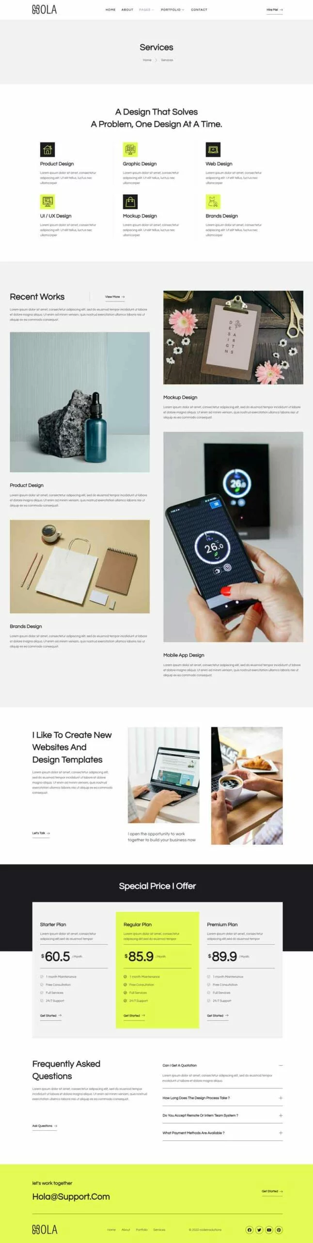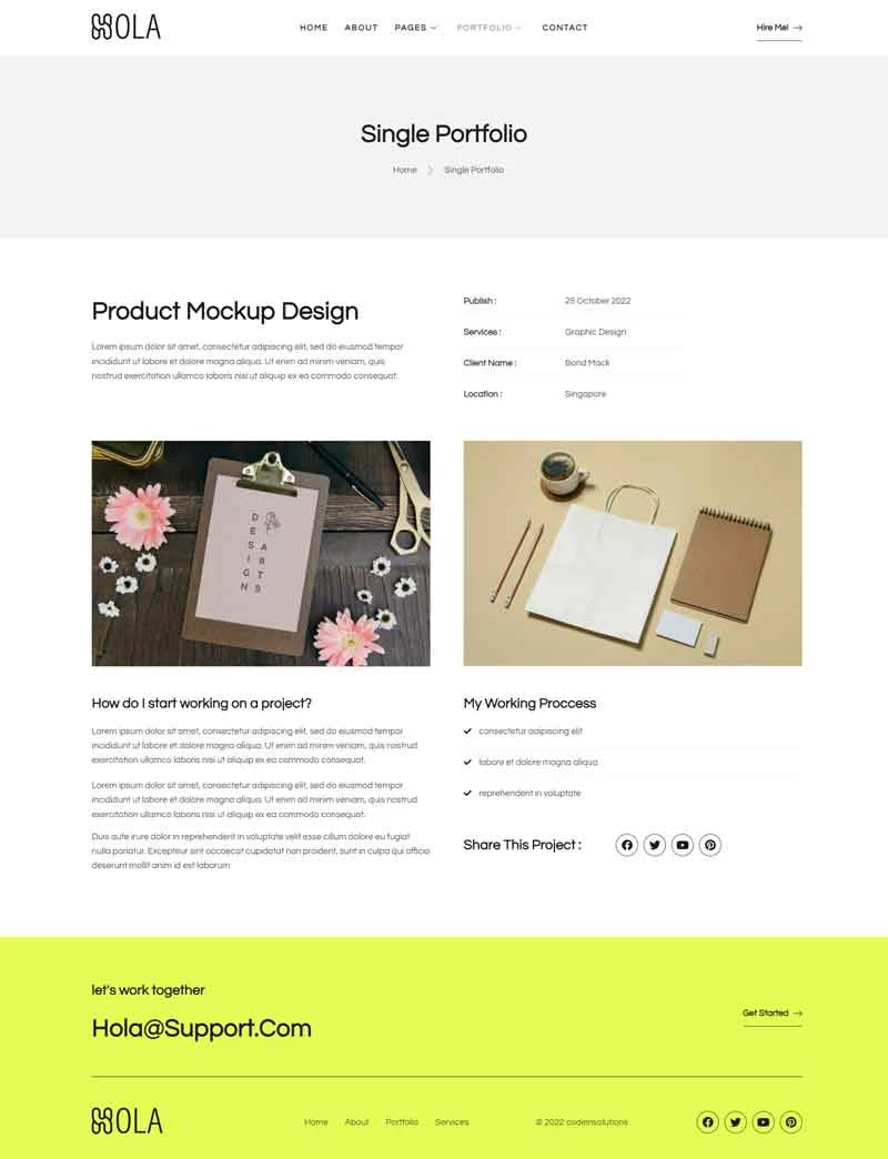 کیت قالب المنتور نمونه کار شخصی Hola شامل بیش از 15 قالب از پیش ساخته شده است که به شما این امکان را میدهد تا وبسایت شرکتی حرفهای خود را تنها با یک کلیک بسازید.