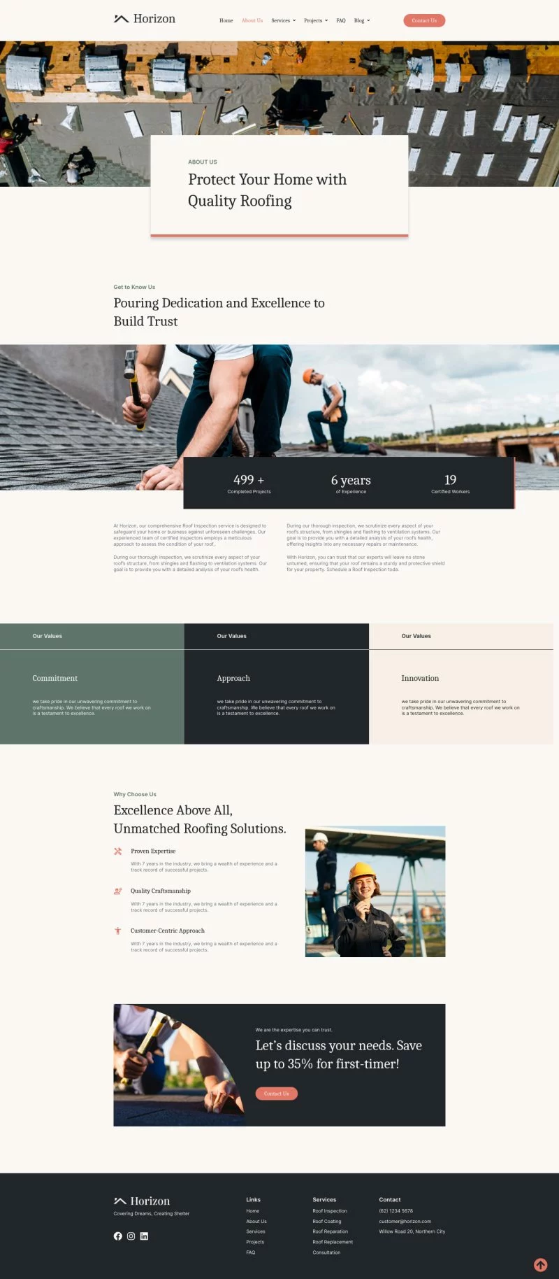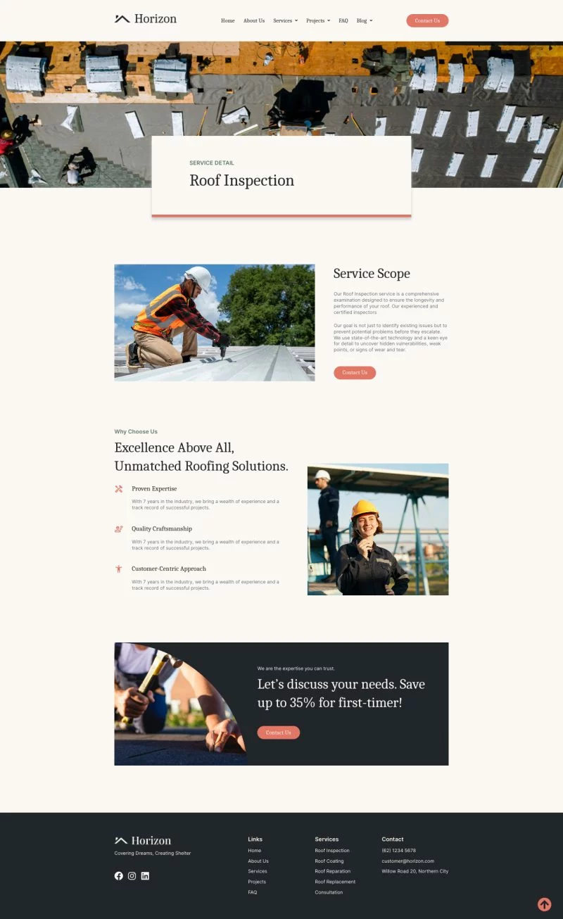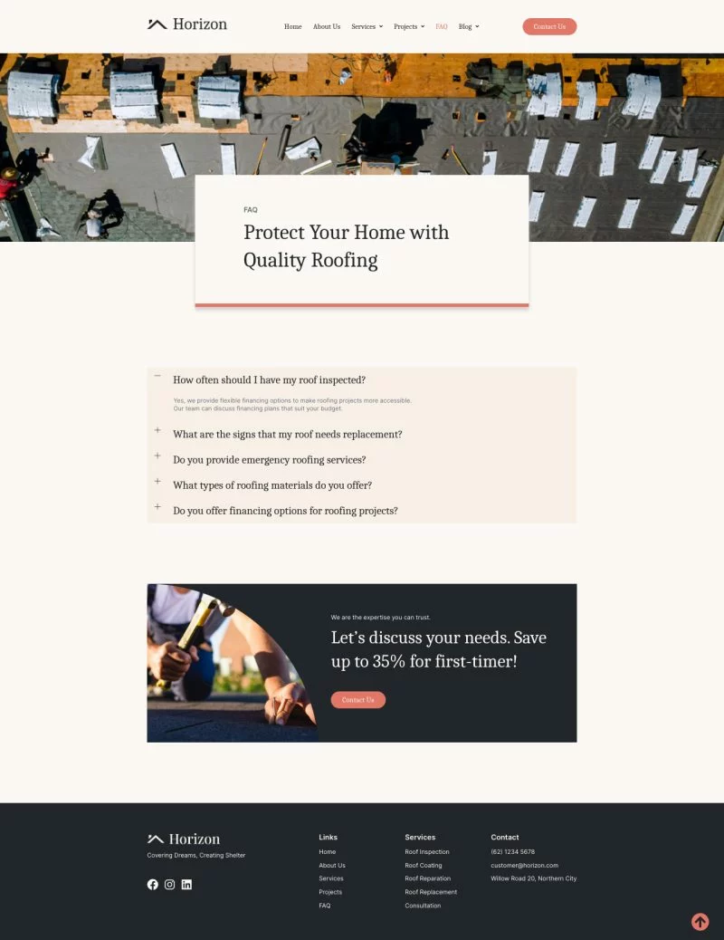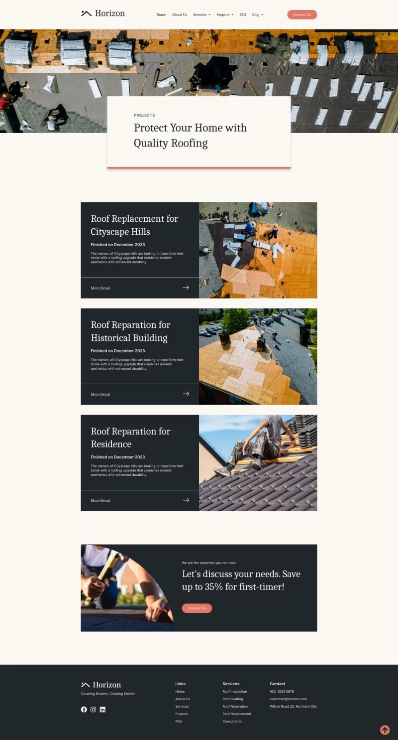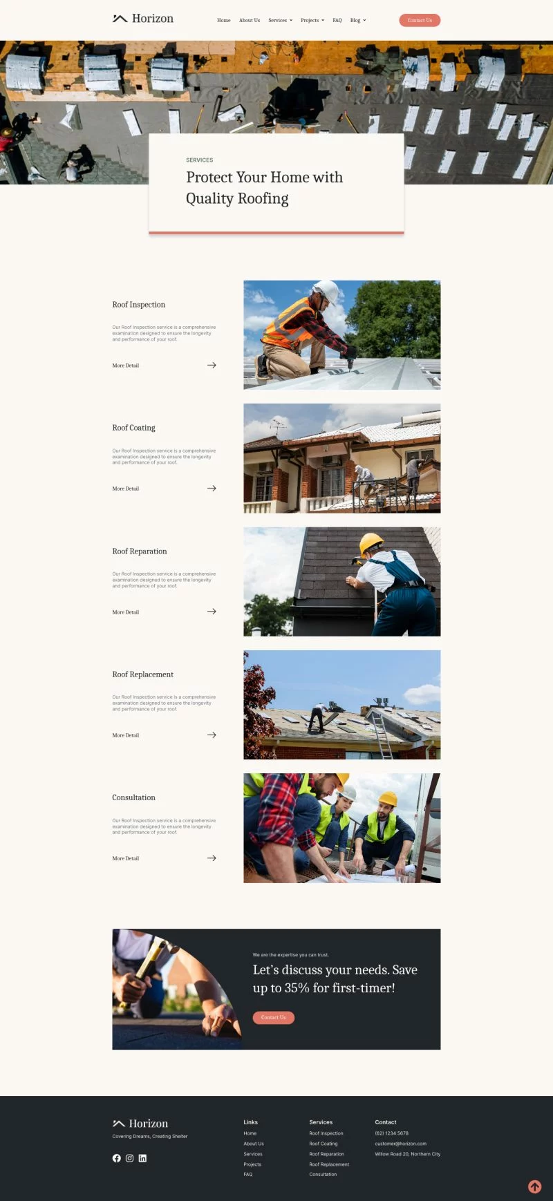 کیت قالب المنتور خدمات سقف Horizon برای ایجاد سریع و آسان وبسایتهای مدرن و بهروز برای آژانسها و بازاریابی کسبوکار شما با استفاده از افزونه Elementor Page Builder برای وردپرس طراحی شده است.