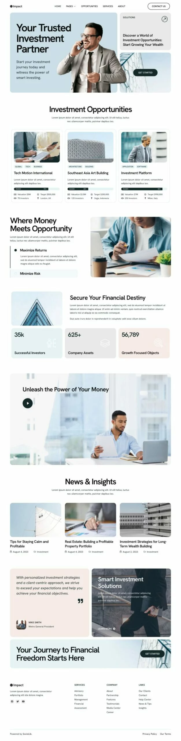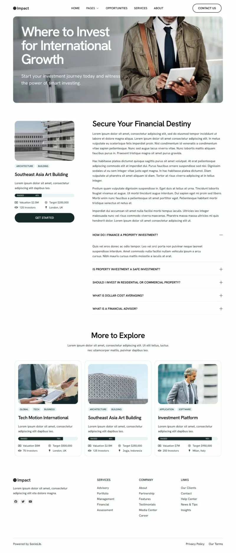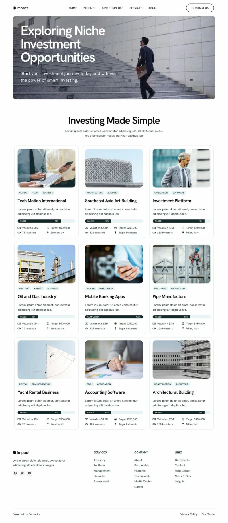 با استفاده از کیت قالب المنتور سرمایهگذاری Impact، میتوانید وبسایتی حرفهای و جذاب برای کسب و کار سرمایهگذاری و فرصتهای کسب و کار خود ایجاد کنید. این کیت قالب با طراحی تمیز و مینیمال، به شما امکان میدهد تا خدمات و فرصتهای سرمایهگذاری خود را به بهترین شکل ممکن به نمایش بگذارید و مشتریان جدیدی جذب کنید. قالبهای آماده و طراحی پاسخگو این اطمینان را میدهند که وبسایت شما در تمامی دستگاهها به خوبی نمایش داده شود. با این کیت، شما میتوانید کسب و کار خود را به سطح جدیدی برسانید و در عین حال نیازهای مشتریان سختگیر را نیز برآورده کنید.