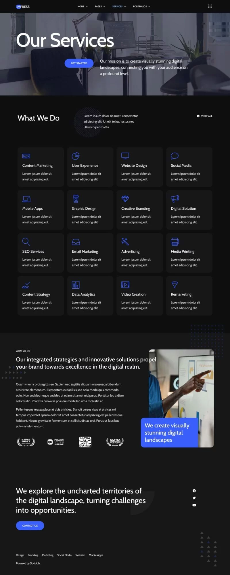 توضیحات بیشتر درباره کیت قالب المنتور آژانس بازاریابی دیجیتال Impress