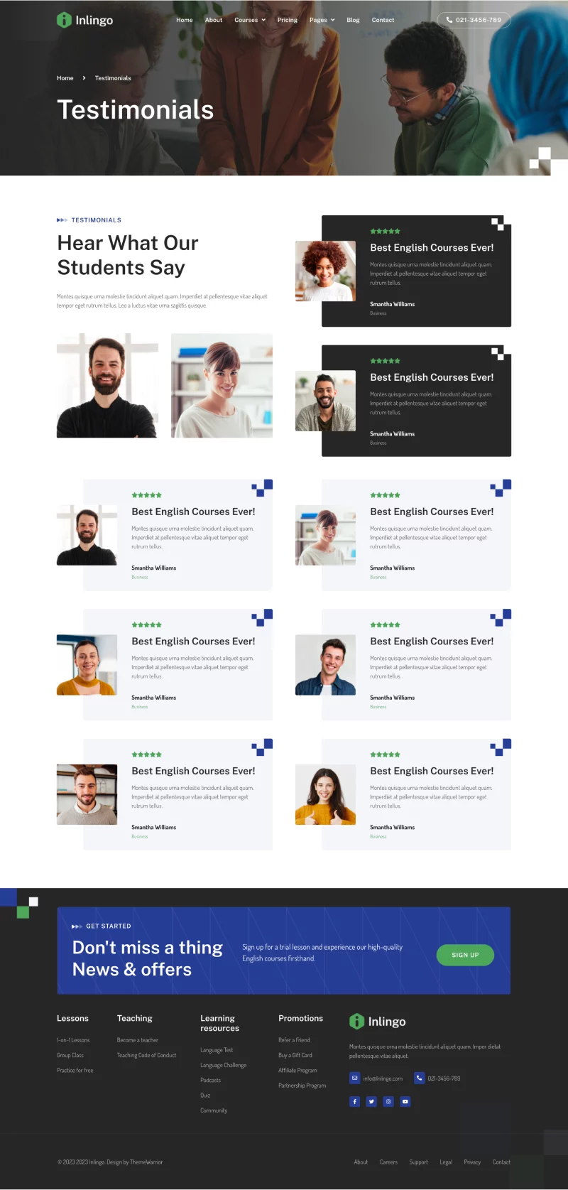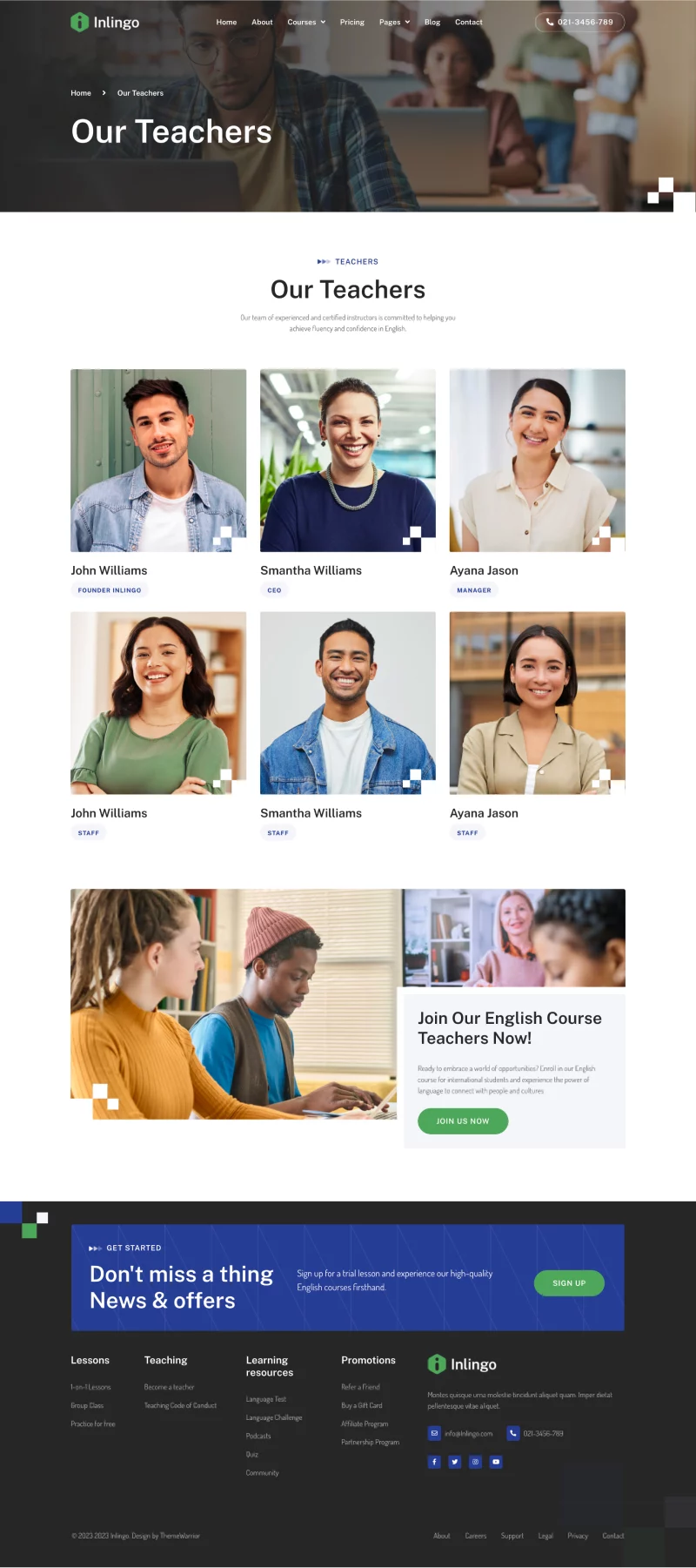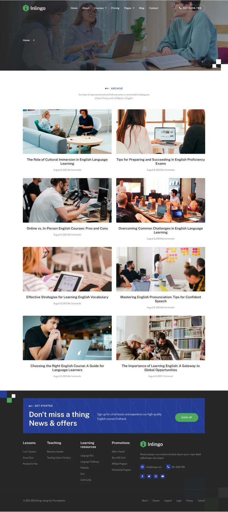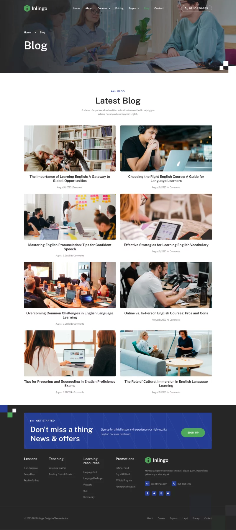 از صفحات فرودی که از لحظه ورود بازدیدکنندگان را جذب میکنند گرفته تا توضیحات دورهها، پروفایلهای مدرسین و منابع آموزشی تعاملی، این کیت همه جوانب حضور آنلاین مدرسه زبان شما را پوشش میدهد. چه دانشآموزان شما مبتدی باشند و چه پیشرفته، کیت قالب المنتور آموزش زبان انگلیسی Inlingo به شما قدرت میدهد تا محیط یادگیری پویا و جذابی ایجاد کنید که موفقیت را تقویت کند.