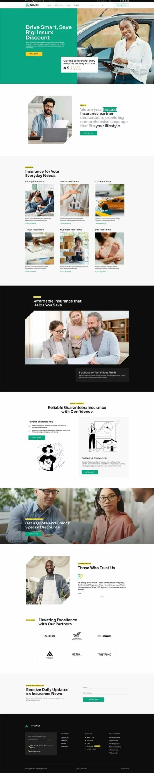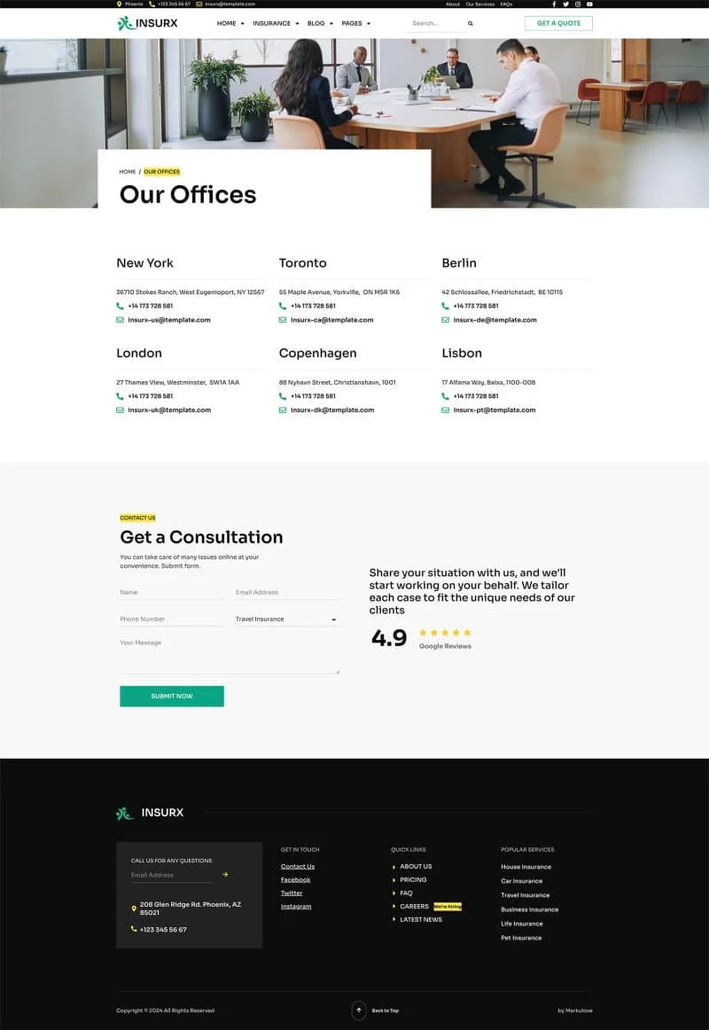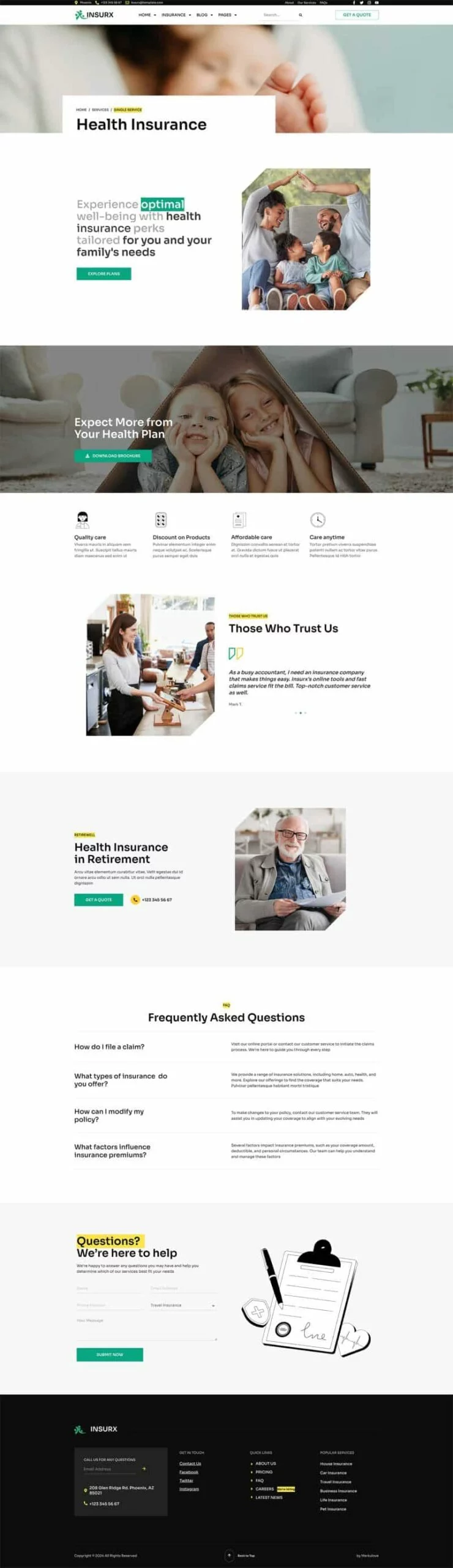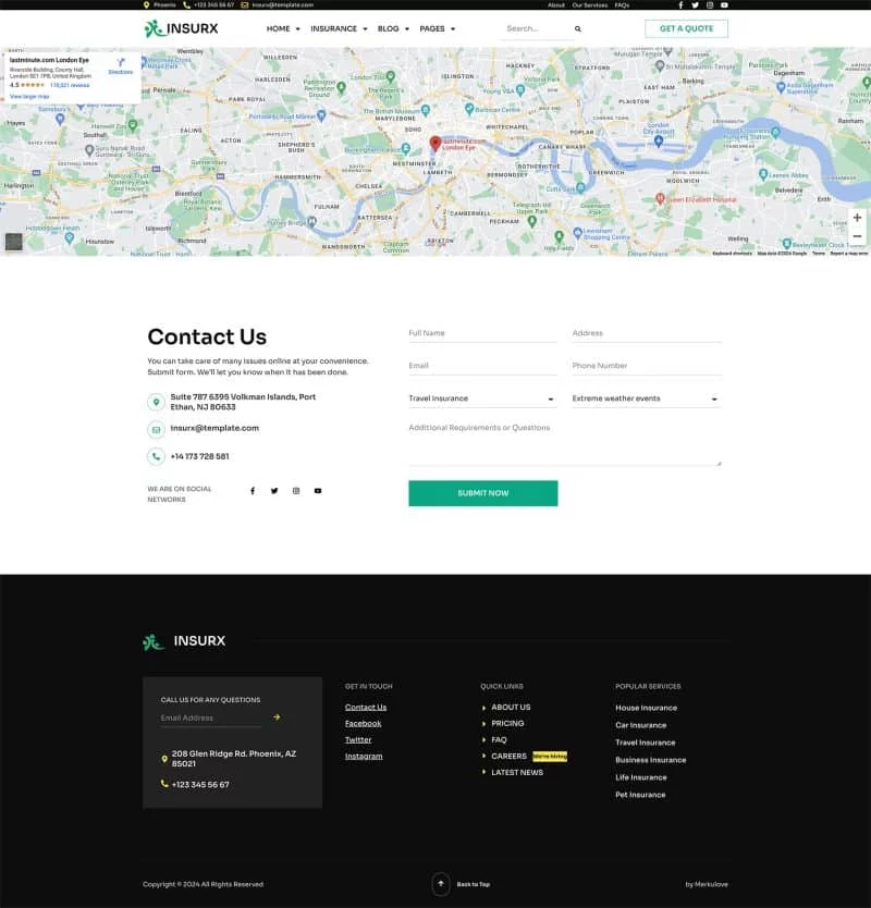 کیت قالب المنتور شرکت بیمه Insurx به طور خاص برای برآوردن نیازهای متمایز شرکتهای بیمه، آژانسها و کسبوکارهای کوچک طراحی شده است. این قالب جامع مجموعهای از خدمات بیمهای متنوع را پوشش میدهد، مانند بیمه سلامت، بیمه خودرو، بیمه اتومبیل، بیمه خانه، بیمه عمر، بیمه سفر و بیمه حیوانات خانگی.