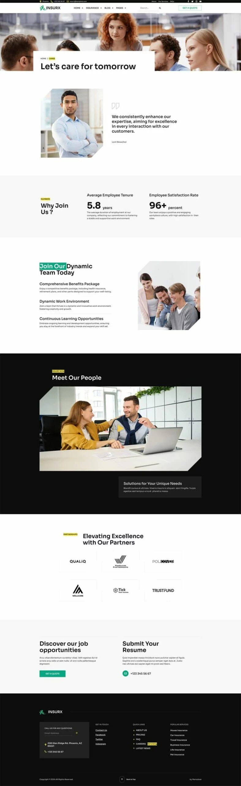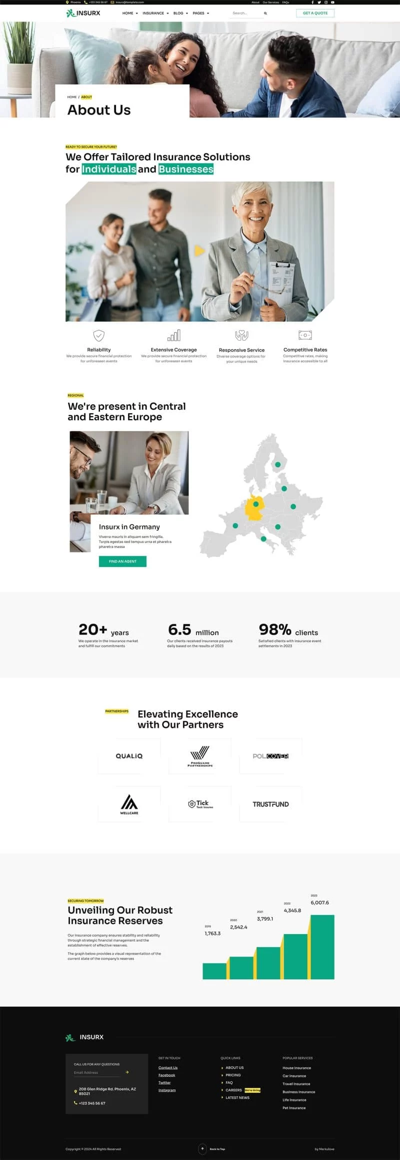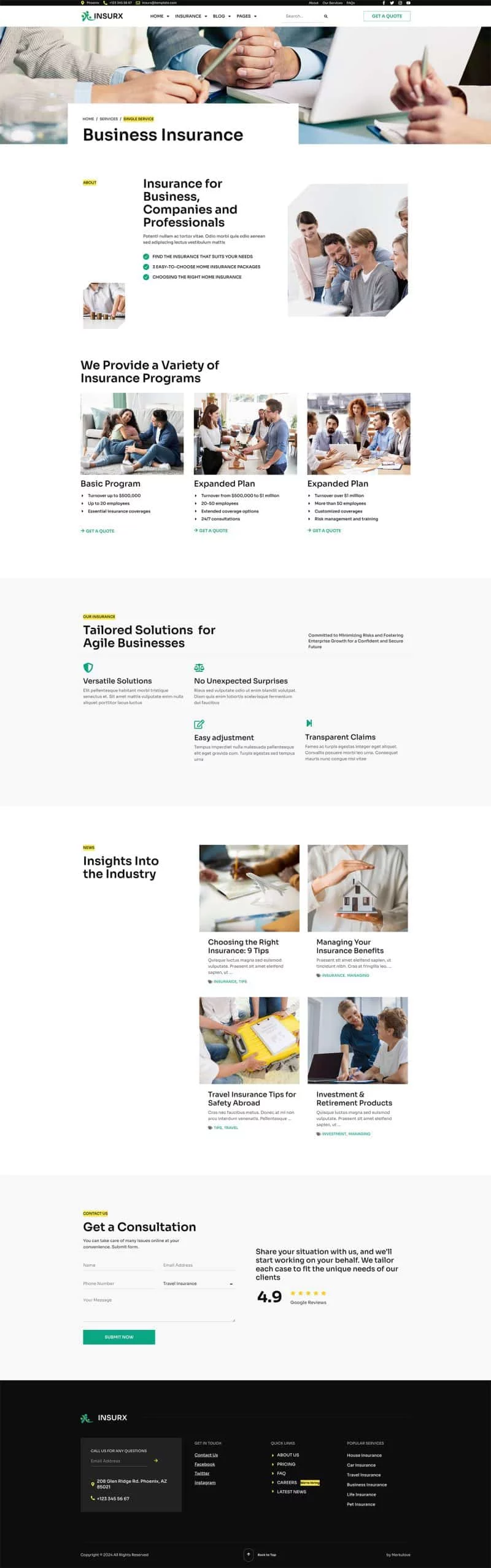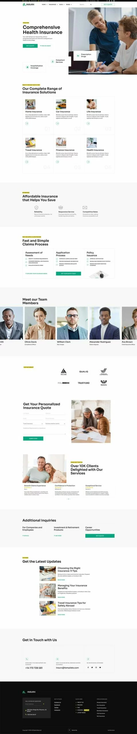 کیت قالب المنتور شرکت بیمه Insurx به طور خاص برای برآوردن نیازهای متمایز شرکتهای بیمه، آژانسها و کسبوکارهای کوچک طراحی شده است. این قالب جامع مجموعهای از خدمات بیمهای متنوع را پوشش میدهد، مانند بیمه سلامت، بیمه خودرو، بیمه اتومبیل، بیمه خانه، بیمه عمر، بیمه سفر و بیمه حیوانات خانگی.