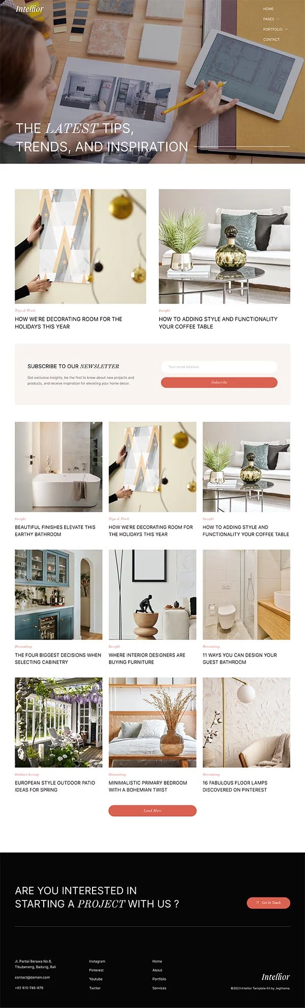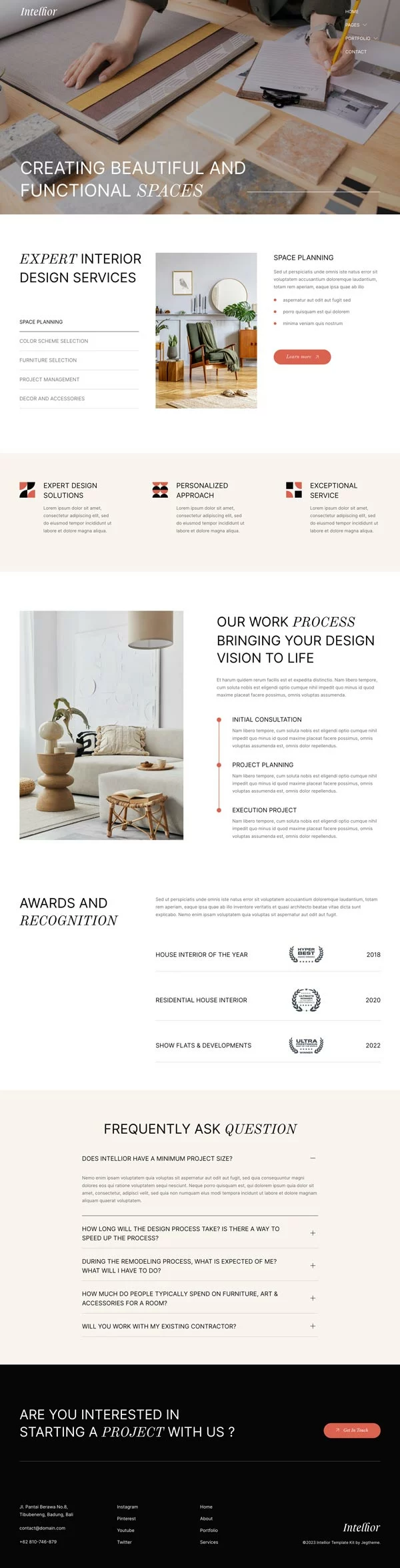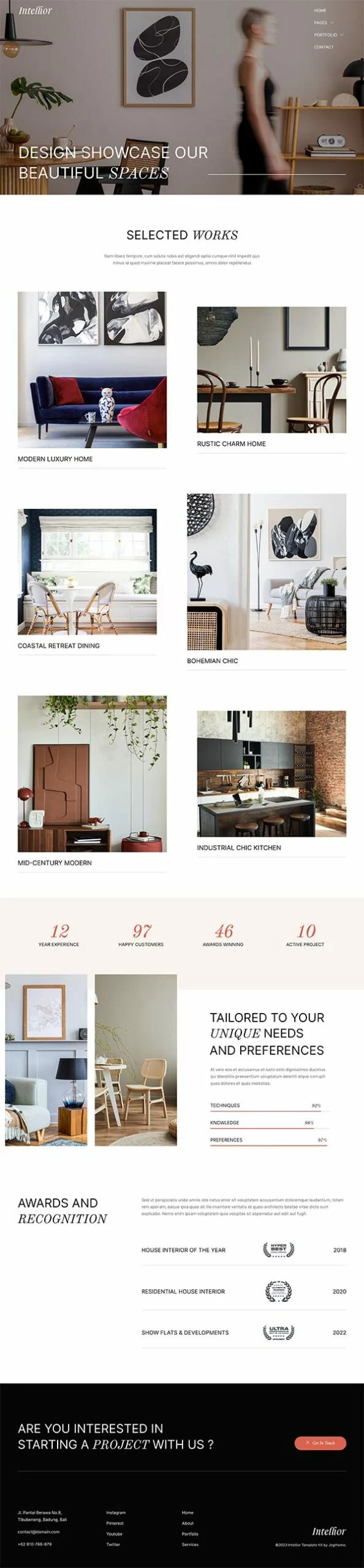 با کیت قالب المنتور طراح داخلی و معمار Intellior، شما میتوانید یک وبسایت منحصر به فرد و جذاب برای نمایش نمونهکارها و خدمات خود ایجاد کنید و رضایت بازدیدکنندگان و مشتریان خود را جلب کنید.