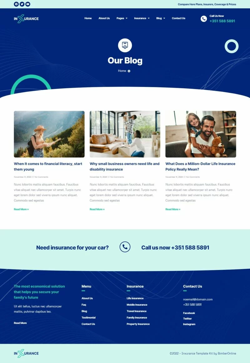 ویژگیهای کیت قالب المنتور برای آژانسهای بیمه Inxurance