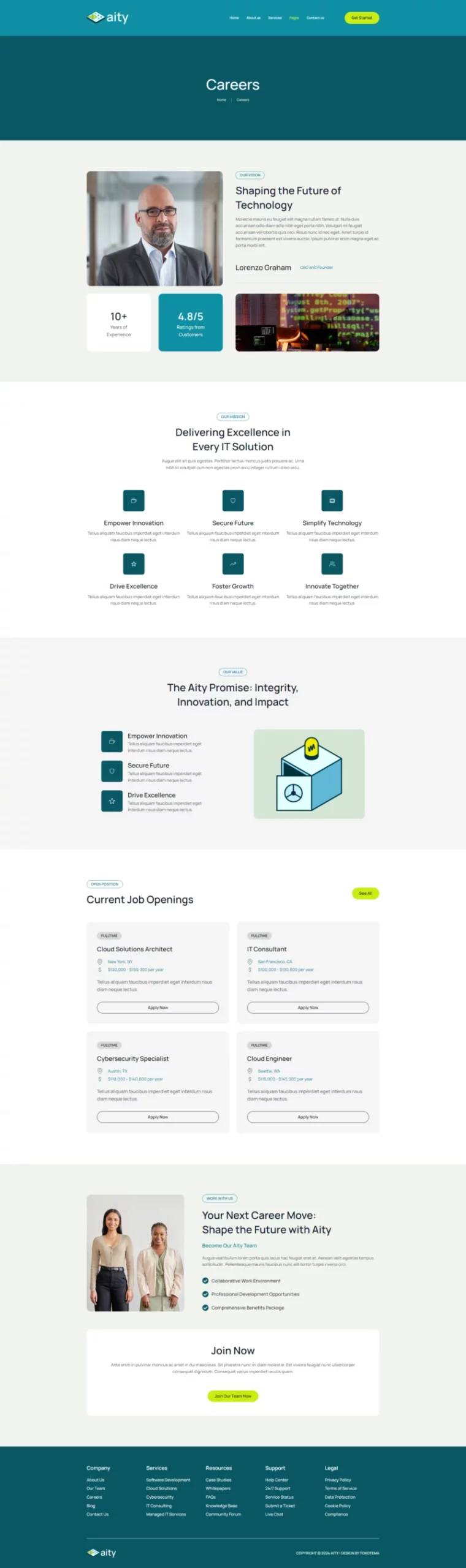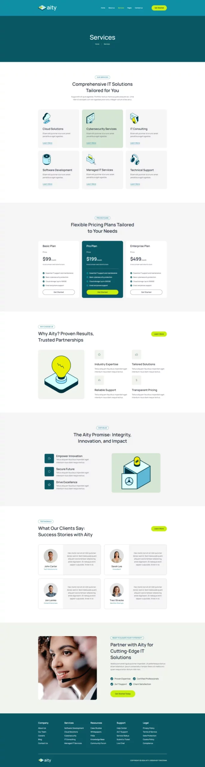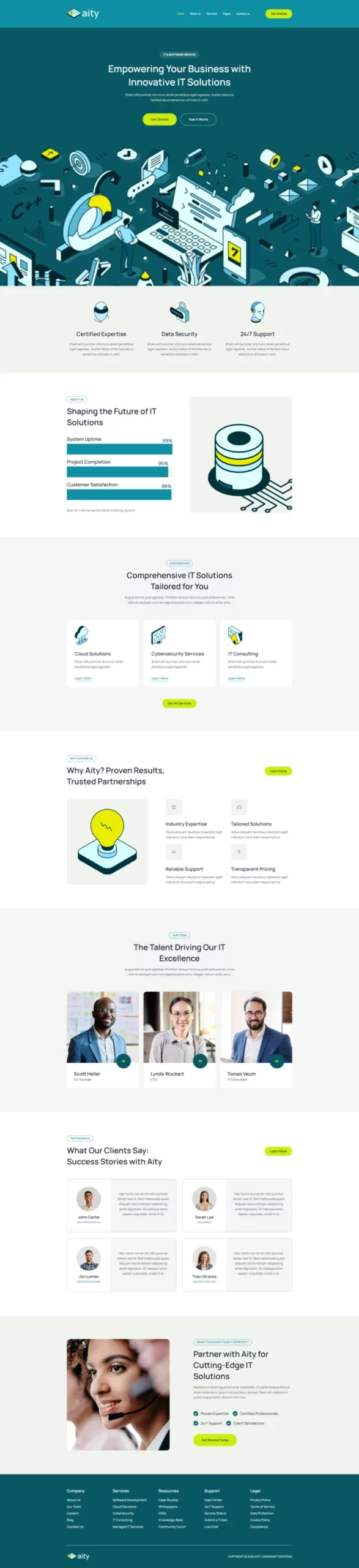 کیت قالب المنتور Aity برای وبسایتهای خدمات IT و نرمافزار بهطور ویژه طراحی شده است. این قالب با طراحی حرفهای و کاربرپسند، نیازهای کسبوکارهای فناوری اطلاعات و ارائهدهندگان خدمات نرمافزاری را برآورده میکند. Aity با داشتن چیدمان تمیز و مدرن، به شما کمک میکند تا تخصصها و تواناییهای خود را به بهترین شکل به نمایش بگذارید. همچنین، واکنشگرایی کامل این قالب، تضمین میکند که وبسایت شما در تمامی دستگاهها به درستی نمایش داده شود و تجربهای روان برای کاربران فراهم کند.