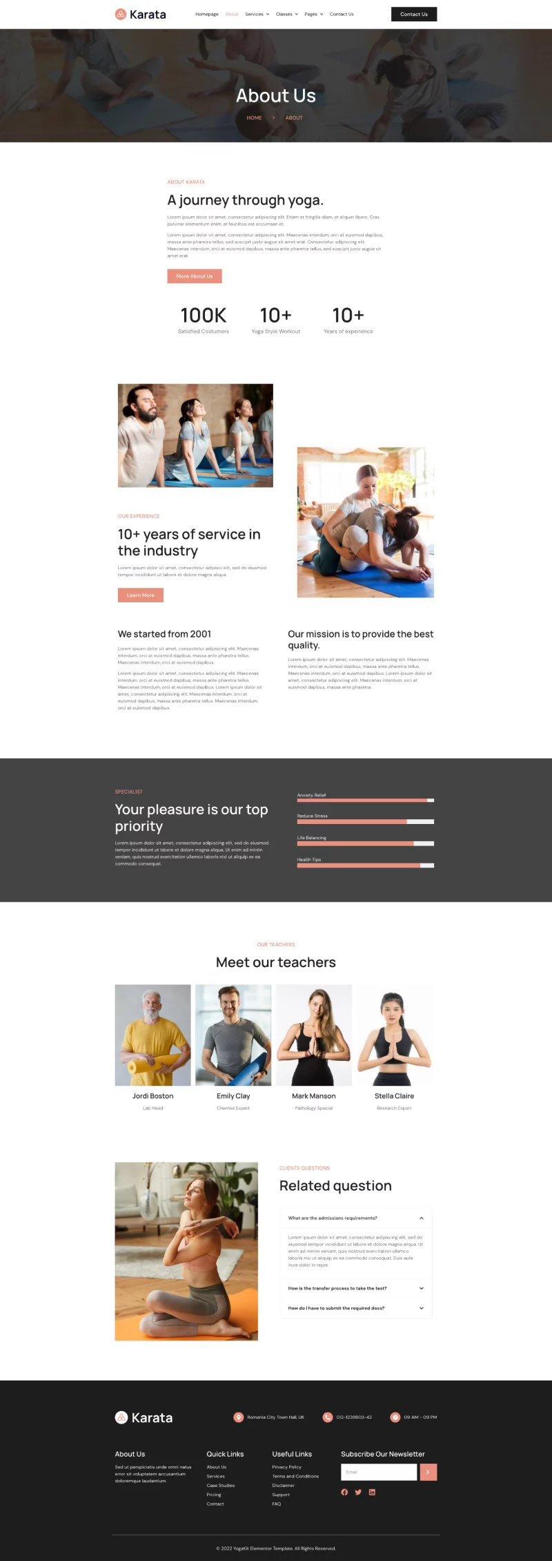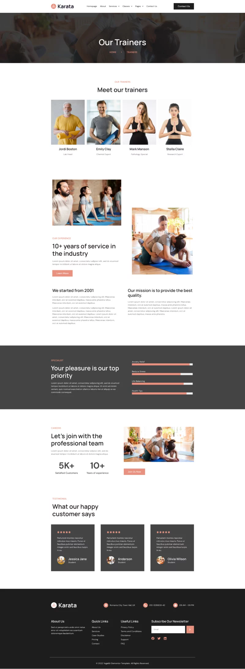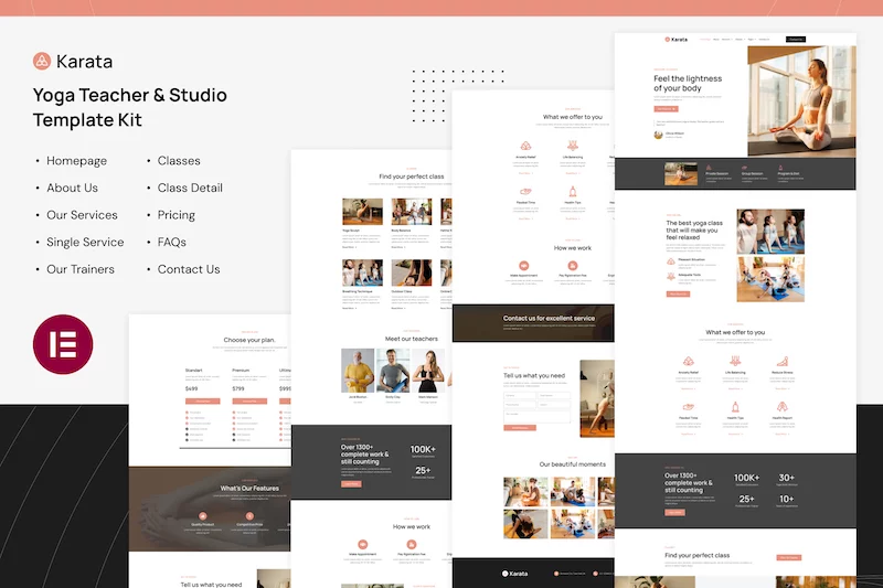 با کیت قالب المنتور مربی و استودیوی یوگا Karata، میتوانید وبسایت خود را با بودجهای کم و با تنها چند کلیک بسازید. این قالب شامل 10 قالب از پیش طراحی شده است که به شما کمک میکند تا به سرعت وبسایت حرفهای خود را راهاندازی کنید. برای استفاده از برخی از قالبها و ویژگیها، به ارتقاء المنتور پرو نیاز خواهید داشت.